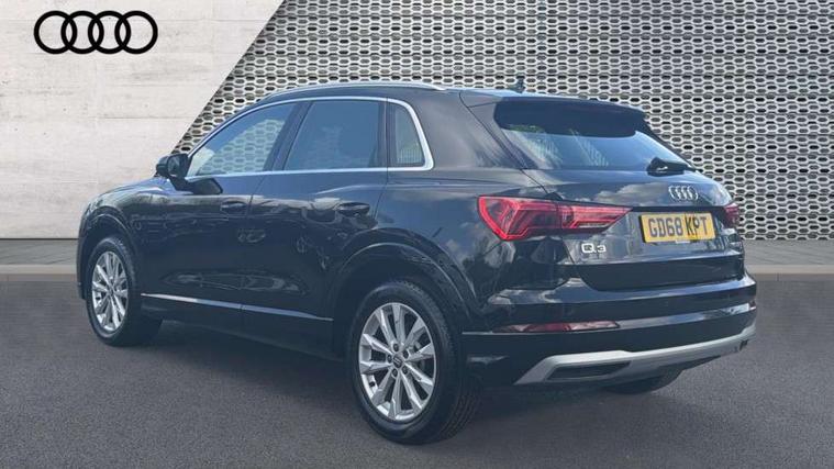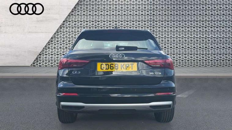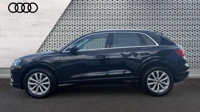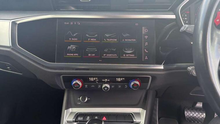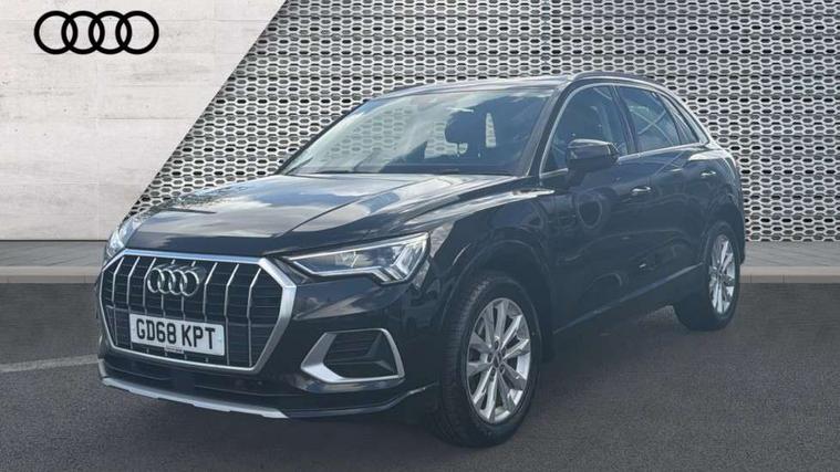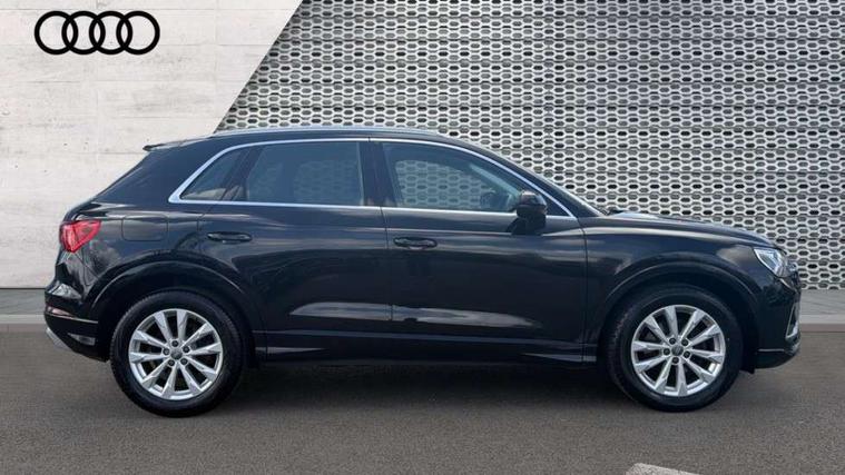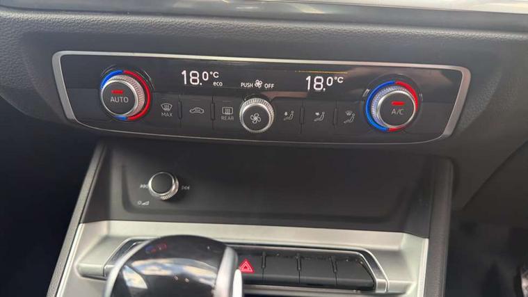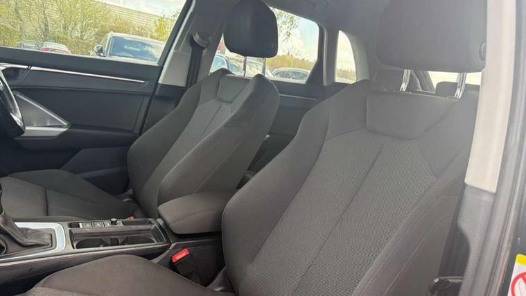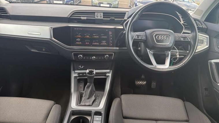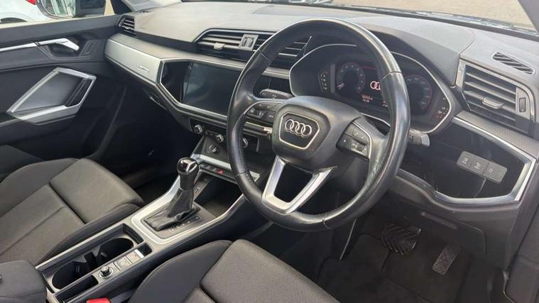 Audi connect, Audi drive select, Audi lane departure warning, Audi side assist, Audi smartphone interface, Audi Virtual Cockpit - 10.25" display, Bluetooth interface, MMI navigation plus with MMI touch, Power opening/closing tailgate, Progressive steering, Service interval indicator, Stop/start system, Voice control system, DAB digital radio module, Acoustic windscreen, Aluminium roof rails, Aluminium window trim, Auto dimming rear view mirror, Body colour door mirrors, Electrically adjustable and heated door mirrors with integrated LED side indicators, Front and rear electric windows, Front fog lights, Front side air inlets in matt selenite silver, Front spoiler in matt selenite silver, Grille vertical bars in aluminium silver/Matt, High gloss black finish B and C pillars, Rain and light sensors, Rear diffuser strip in selenite silver, Titanium black radiator grille, 12V socket in rear centre console, 40:20:40 split folding rear bench seat, Aluminium door sill trims, Dual zone climate control, Front and rear headrests, Front and rear velour floor mats, Front centre armrest with storage compartment and angle adjustment, ISOFIX child seat mounting and Top Tether with front passenger airbag deactivation, Lunar silver cloth headlining, Manual front seats with height adjustment, Stainless steel luggage compartment sill finisher, Non smoking pack - Q3, 3x3 point rear seatbelts, 6 airbags - Driver, front passenger, curtain and side windows, Electronic stabilisation control including ABS, ASR and EDL, Hill hold assist, Pre sense basic, Seatbelt monitoring, Tyre pressure warning, Warning triangle and first aid kit, Anti theft alarm, Anti theft wheel bolts, Audi pre-sense front with pedestrain and cyclist recognition, Remote central locking, MMI touch colour display in gloss black with aluminium surround,
