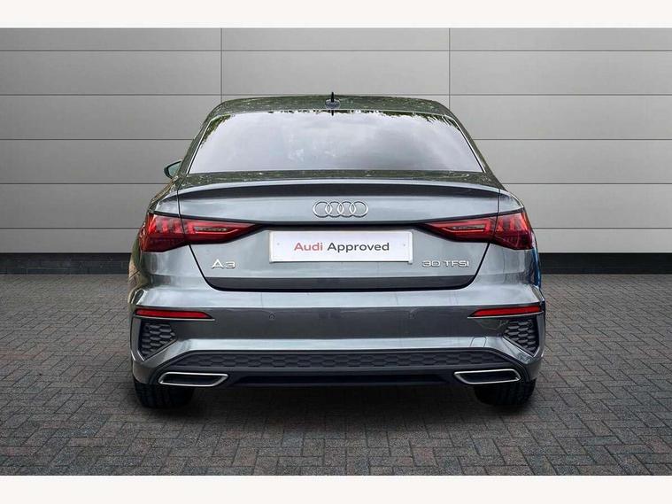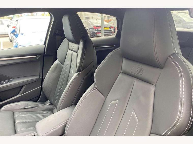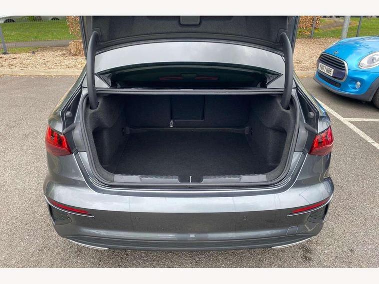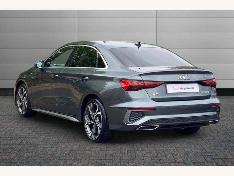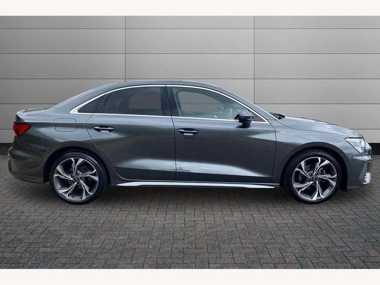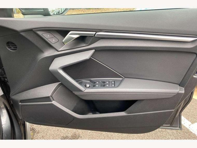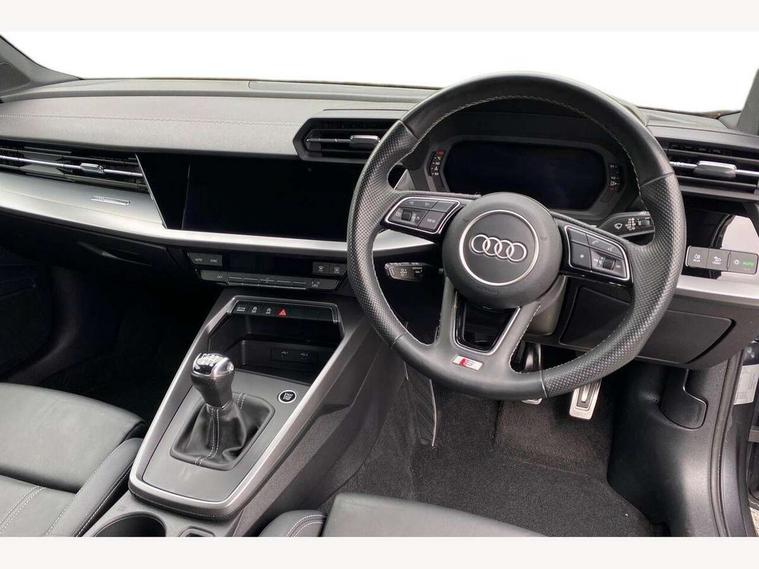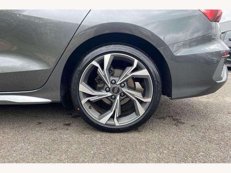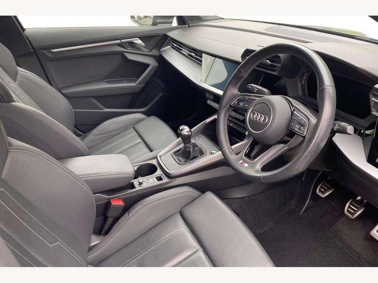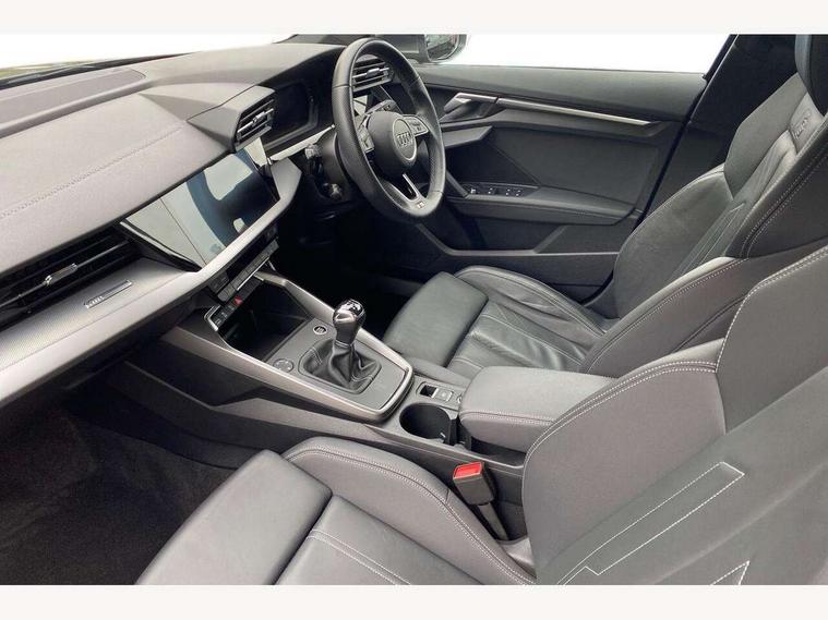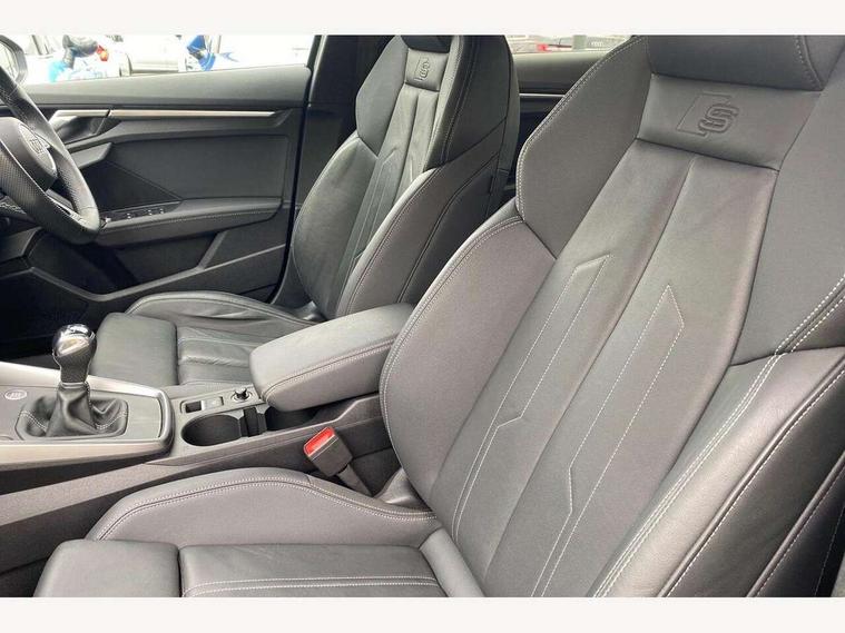Audi drive select (Auto, Comfort, Dynamic and Individual), Audi smartphone interface, Audi Virtual Cockpit - 10.25" digital and colour instrument cluster, Automatic start/stop system with recuperation, Bluetooth interface, Camera based traffic sign recognition, Collision avoidance assistant, Cruise control + speed limiter, e-Call (emergency call), Electromechanical power speed sensitive steering, Lane departure warning system, MMI Navigation Plus with high resolution 10.1" colour touch screen display, Rear parking sensors, Service indicator, Trip computer, Voice control system with natural language interaction, Sports suspension, 2xUSB-C connection with data and charging functions, 6 passive loudspeakers, CD player, DAB Digital radio, 3rd brake light, Acoustic glass windscreen, Aluminium window trim, Auto dimming frameless rear view mirror, Body colour exterior mirrors, Electrically adjustable/heated/folding/auto dimming door mirrors with integrated LED indications + kerb view function for passenger side, Front electric windows, Illuminated door sills with aluminium inserts at the front with S logo, LED daytime running lights, LED headlights with LED rear lights and dynamic rear indicators, Light and rain sensors, Model and engine designation badges at rear, Privacy glass - dark tinted rear window, rear door and side windows, Rear boot, Rear electric windows, Rear side wing doors, S line bumpers, S roof spoiler, 12V socket and storage compartment in front centre console, 3 seat bench in 2nd row, 3 spoke leather multifunction steering wheel, 4 way electrically adjustable lumbar support for driver and front passenger, 60/40 split folding rear seat bench, Black cloth headlining, Dual zone electronic climate control, Front and rear centre armrest in artificial leather, Front and rear headrests, Front/rear floor mats, Height and reach adjustable steering wheel, Interior lighting - glove compartment light and right hand side, Luggage compartment floor covering, Manual boot compartment lid, Manually adjustable front seats, Seat side bolsters, Single front passenger seat, Stainless steel pedals and front footrest in black, Twin leather upholstery with front sports seats S embossed logo, Aluminium interior elements pack - A3, LED interior lighting pack - A3 Saloon, S line styling pack - A3 Saloon, 3x3 point rear seat belts, Driver and front passenger airbag with passenger airbag deactivation, Electronic Stabilisation Control (ESC) including ABS, ASR and EDL, First aid kit with warning triangle and 2 safety vests, Front side airbags with head airbags and interaction airbag, Pre-sense front with pedestrian and cyclist detection, Seatbelt monitoring, Tyre pressure loss indicator, Anti theft alarm, Anti-theft wheel bolts, Electronically operated child locks, Immobiliser, Remote control central locking, Aluminium air vent surrounds, Dark spectrum aluminium inlays, accent surfaces in the dashboard and centre console in platinum grey silk effect paint finish,