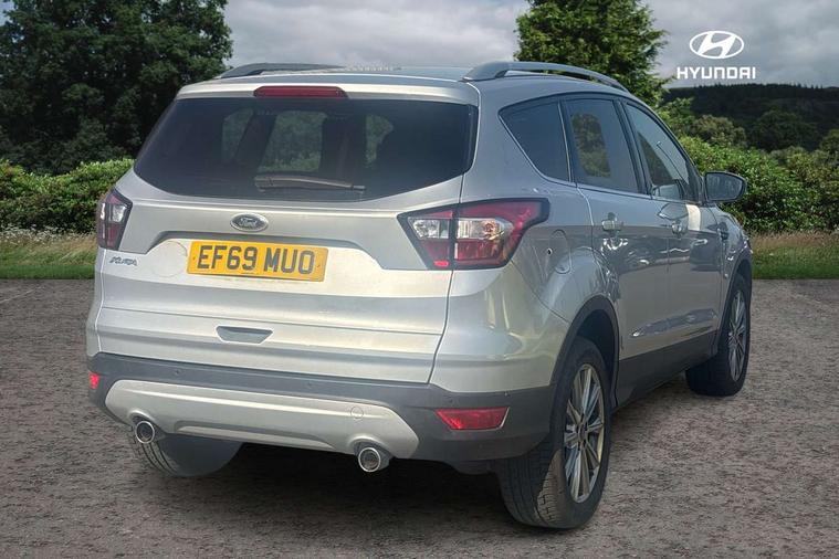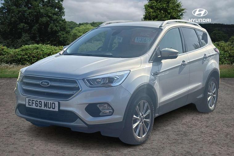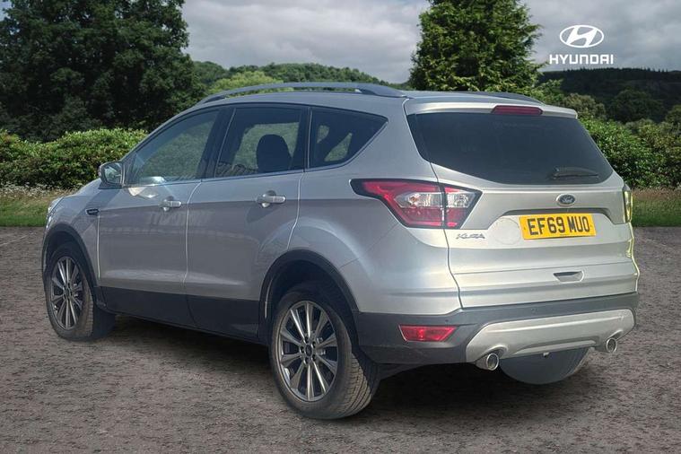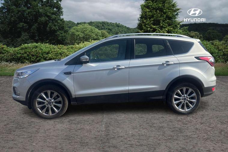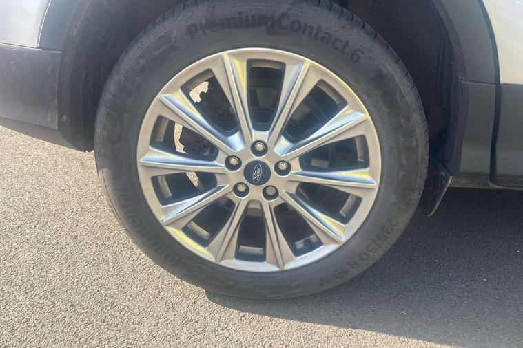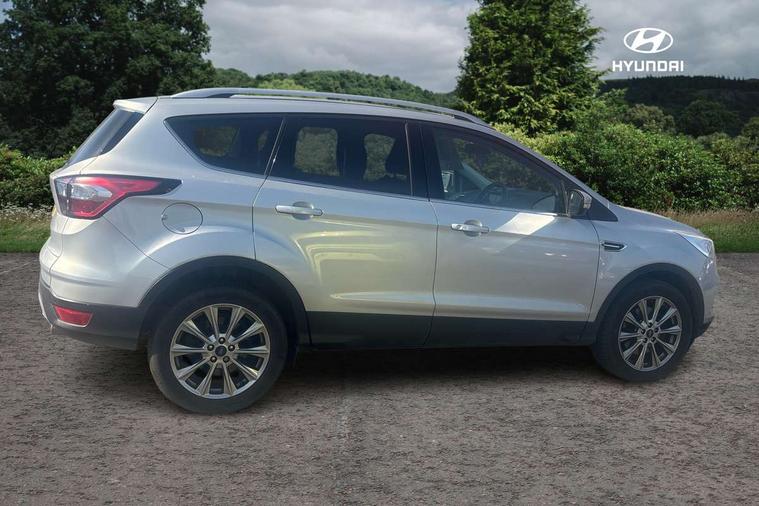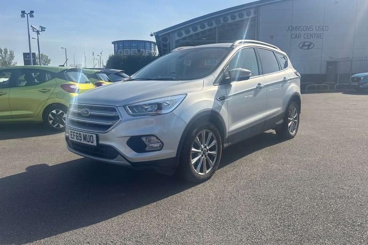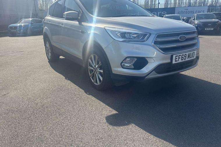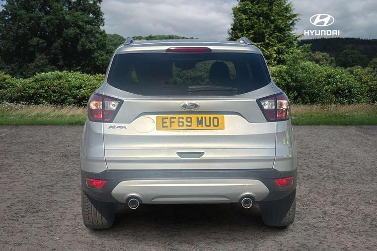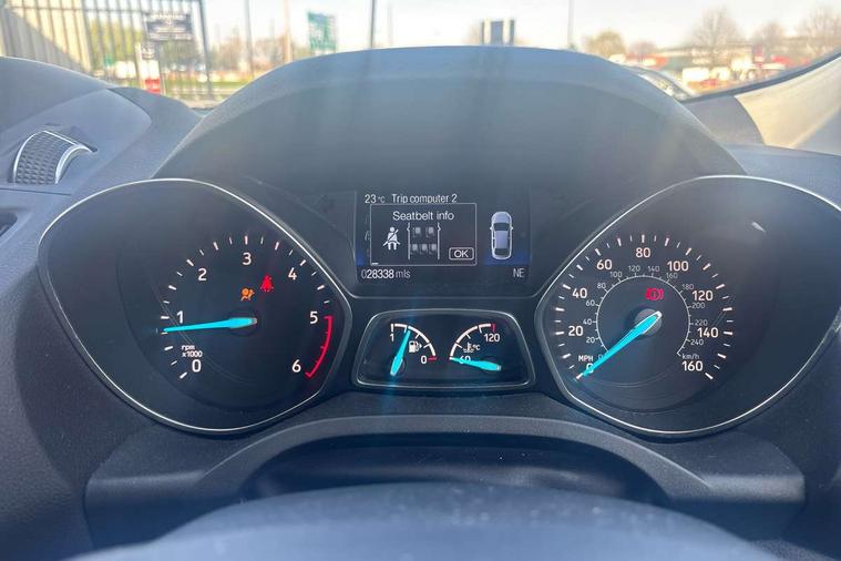 Apple car play/Android Auto, EPAS, Hands free telephone, Trip computer, 2 USB ports, Auxiliary socket for external device, Remote audio controls on steering wheel, Auto dimming rear view mirror, Body colour bumpers, Body colour rear spoiler, Electrically operated and heated door mirrors with side indicators, Electrically operated front and rear windows with global closing, Front fog lights, Front scuff plate, Power folding door mirrors, Quickclear heated windscreen, Rain sensing wipers, Tailgate wash/wipe, Twin exhausts and rear diffuser, 6 way manually adjustable passenger seat with lumbar support, 60/40 split/folding rear back and cushion, Auxiliary power socket in luggage area, Centre console with stowage tray/bottle holder/CD stowage/front and rear 12V power point, Driver/passenger front seatback pockets, Dual electronic automatic temperature control, Folding rear centre armrest, Footwell courtesy lights front and rear, Front floor mats, Front head restraints, Front overhead courtesy lights with theatre style dimming and delay, Front/rear reading lights, Isofix system on outer rear seats, Leather steering wheel and gear knob, Multi-colour ambient interior lighting, Part leather upholstery, Reach + rake adjustable steering column, Rear floor mats, Rear head restraints, Sports style front seats, Stowage unit in upper instrument panel, Tie down hooks, Tonneau cover, Variable intensity instrument illumination, Appearance pack - Kuga, 3 point seatbelts on all 3 rear seats, ABS/EBD, Airbags - front driver/passenger, front & rear side, curtain, drivers knee, EBA, Electric traction assist system, Electronic Stability Programme, Front passenger airbag deactivation switch, Hill start assist, Intelligent Protection System (IPS), Tyre pressure monitoring system, Engine immobiliser, Keyless entry, Keyless start with 'Ford Power' starter button, Locking wheel nuts, MyKey system, Remote powered central double locking doors, Thatcham category 1 alarm, Mini steel spare wheel,