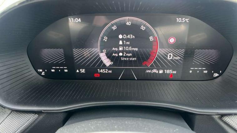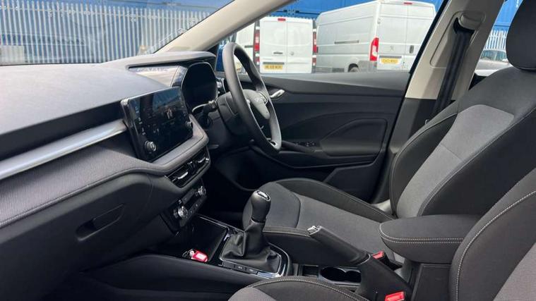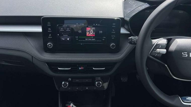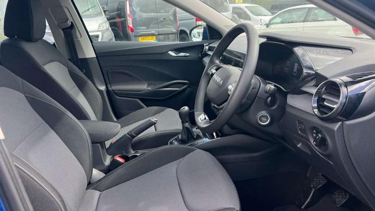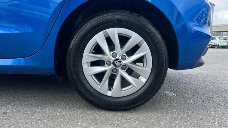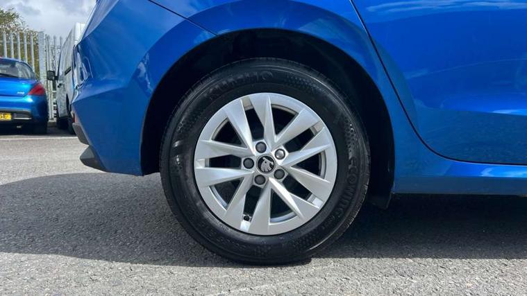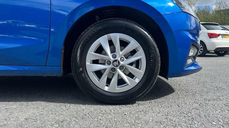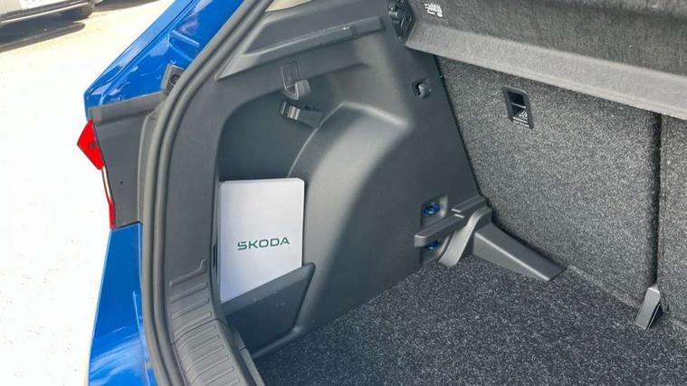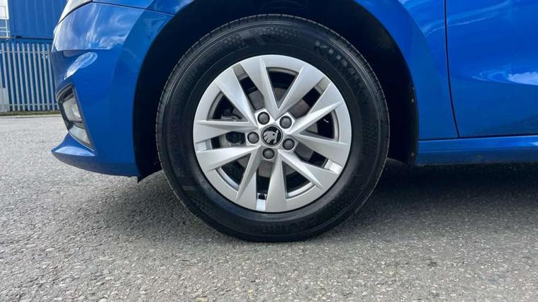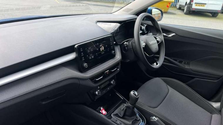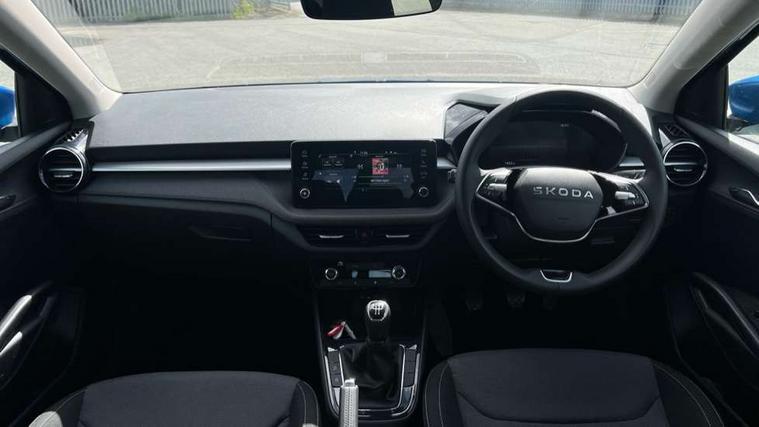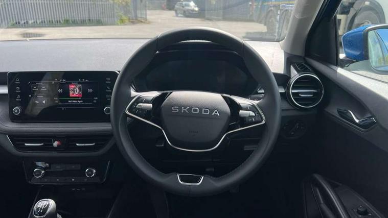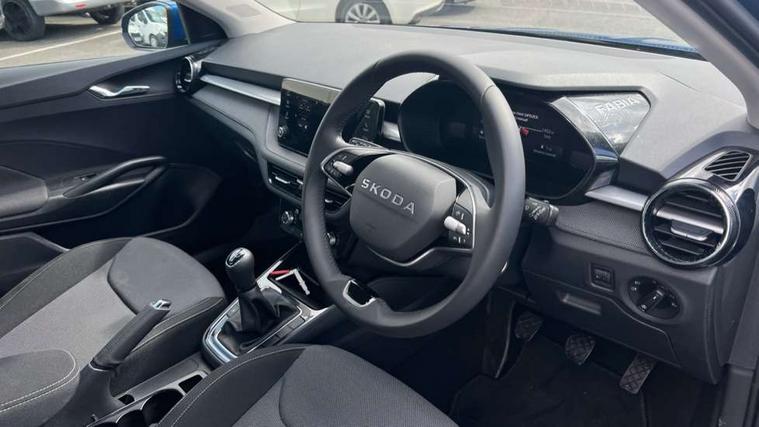 8" Digital instrument display, Advanced driver attention and drowsiness monitor, Bluetooth connection, Cruise control with speed limiter, Driver alert system, Electromechanical power steering, Exterior temperature gauge, Lane assist including road edge detection, Rear parking sensors, Service interval indicator, Traffic sign recognition, Wireless SmartLink for Apple CarPlay and Android Auto, 6 Speakers (4 in front and 2 in rear), 8.25" Skoda infotainment touchscreen display, Auxiliary socket for external MP3 player, DAB digital radio reception, Auto dimming rear view mirror, Body colour door mirrors, Body coloured bumpers, Door mirror integrated indicators, Front and rear electric windows, Front window wiper intermittent control, Headlight range control - Automatic, Ice scraper in fuel cap, LED 3rd brake light, LED daytime running lights with coming and leaving home feature, LED rear lights, Rear LED fog light, Rear side wing doors, Rear window wiper with washing nozzles, Roof mounted spoiler, SKODA tailgate lettering in chrome, Unique dark chrome design logo on alloy wheels, 2 reading lights in front and 2 reading lights in rear, 3 rear headrests, Backrest split and folding, Central console with removable cup holder and storage box, Chrome handbrake release button, Dual zone air conditioning with climatronic electronic control, Fabric upholstery, Front centre armrest, Gearshift knob/handle in leather, Grain satin black interior door handles, Hand brake lever handle in leather, Height adjustable front headrests, Height adjustable front seats, Height adjustable steering wheel, ISOFIX and TopTether anchorage points to the outer rear seats, ISOFIX and TopTether on the front passenger seat, Luggage compartment lighting, Manually adjustable lumbar support in front seats, Pollen filter, Rear seat bench unsplit, Single front passenger seat, Skoda lettering on steering wheel, Storm grey headlining, Sun visors with mirror and airbag label on passenger side, Textile floor mats, Ticket holder, Umbrella in drivers door, Ambient lighting pack - Fabia Hatchback, 3-point height adjustable front seats belts with pretensioner and force limiter, Automatic warning lights in case of crash, Driver and passengers airbag with switch off function, e-Call+, ESC including ABS, MSR, ASR, EDS, HBA and XDS, Front and rear seat belt warning, FRONT ASSIST (AEB City and AEB Inter Urban), Front side airbags, Head airbags, One tone horn, Pedestrian protection, Three rear 3-points safety seat belts with pretensioner and force limiter including stop function for outer rear seat belts, Tyre pressure monitoring system, Anti-theft alarm system including immobiliser, interior monitoring, backup horn, and towing protection, Central locking with radio remote control, interior controls, SAFE function and 2 foldable keys, KESSY - Keyless engine start/stop, Black painted air vents, Grain satin black central console cover, Metallic grey upper decorative trim, Satin black door and side trim panel in front, Textile Kota grey lower decorative inserts, Anti-theft wheel bolts protection, Super-low rolling resistance tyres,