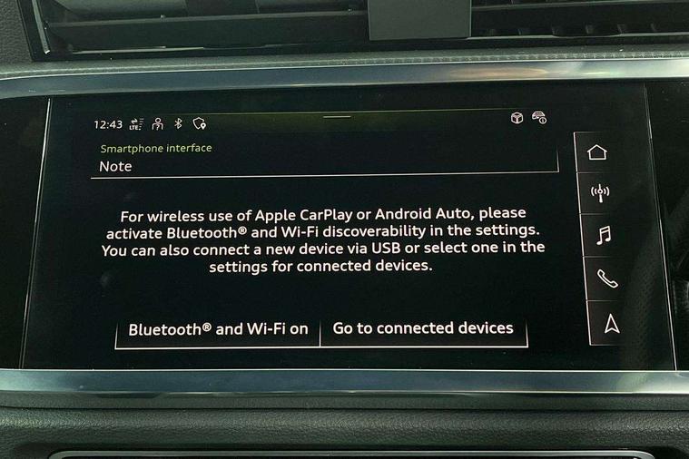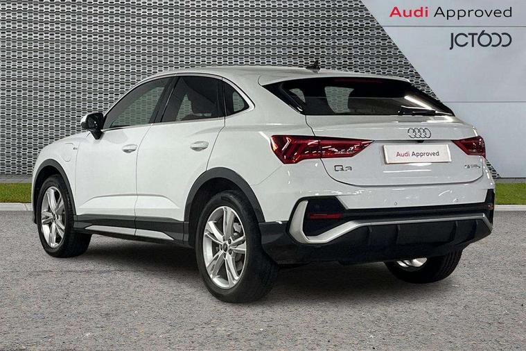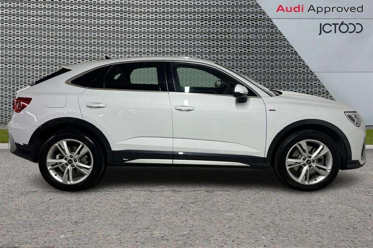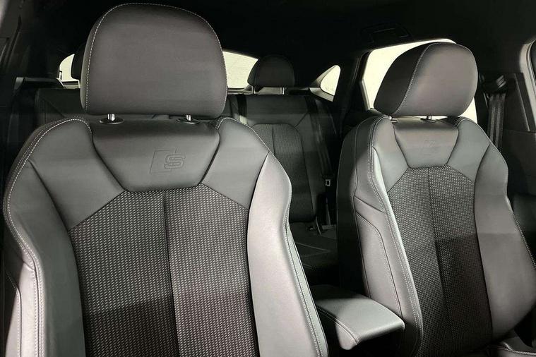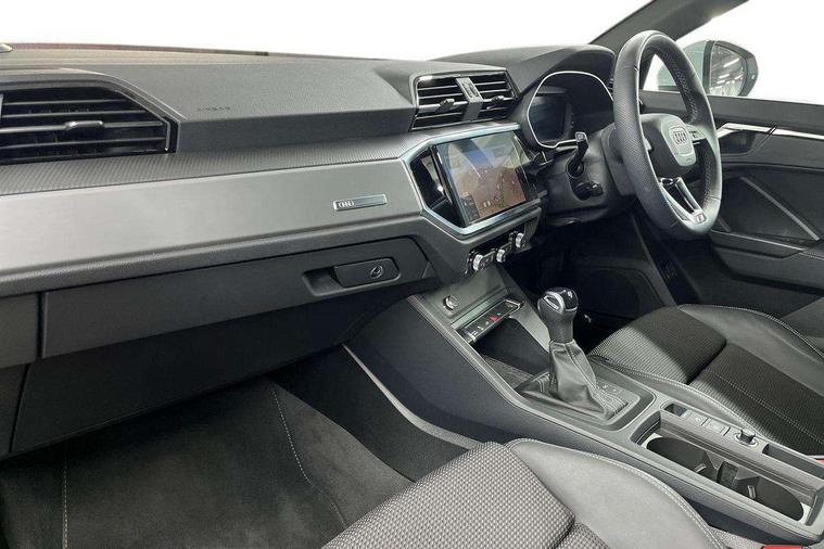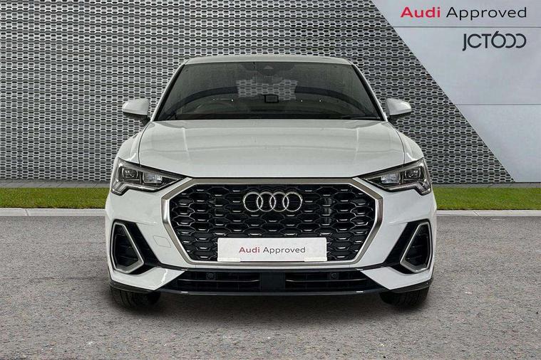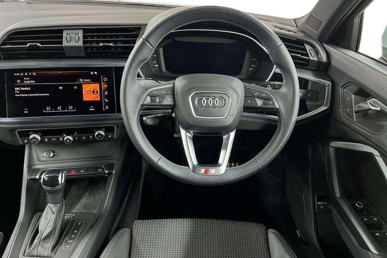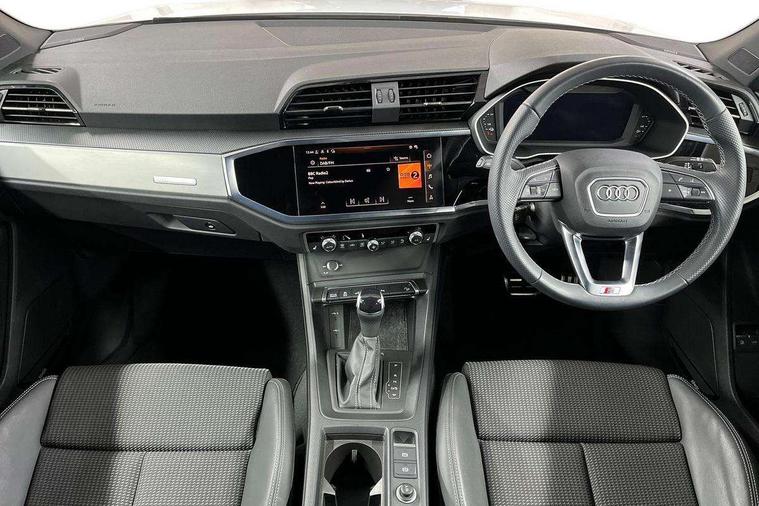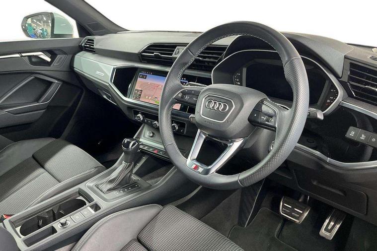 Audi drive select, Audi lane departure warning, Audi Virtual Cockpit - 10.25" display, Bluetooth interface, Camera based traffic sign recognition, Legal emergency call, MMI Navigation Plus with high resolution 10.1 inch touchscreen colour display, Power operated tailgate, Progressive steering, Service interval indicator, Smartphone interface includes wireless Apple carplay/Android Auto, Start stop system with recuperation, Voice control system with natural language interaction, 3 pin 10 amp domestic charging cable, 3.6 kw On-board charger, Standard suspension, Type 2 mode 3 32 amp charging cable, Type 2 socket for AC charging, 2 USB-C ports with charge and data functions, 6 passive loudspeakers, DAB digital radio module, Acoustic windscreen, Aluminium window trim, Auto dimming frameless rear view mirror, Diffuser grille in grained matt black, Diffuser trim in selenite silver, Electrically folding, adjustable and heated door mirrors with integrated LED side indicators and kerb view function for passenger side, Front and rear electric windows, Front fog lights, Front side air inlets in selenite silver, Front underbody protection in manhattan grey paint finish, Grille surround in aluminium silver matt, High gloss black finish B and C pillars, LED Dynamic rear indicators, LED headlights with LED daytime running lights, LED rear lights, LED third brake light, Privacy glass dark tinted rear and rear-side windows (from B-pillar backwards), Radiator grille in anthracite black with inlay in matt aluminium silver, Rain and light sensors, Rear side wing doors, Rear underbody protection in matt black, Rear wiper, S line badges on front wings, S line front and rear bumpers and side skirts in contrasting Manhattan grey paint finish, Side skirt insert in matt Platinium grey, Variable front intermittent wipers, 12V socket in rear centre console, 3 seat bench in 2nd row, 3 spoke leather multifunction steering wheel features S badging and grips in perforated leather with contrast stitching, 40:20:40 folding with manual adjustment for 60:40 forwards/backwards position and backrest angle, Adjustable rear seat bench/backrest with centre armrest and cupholder, Black cloth headlining, Dual zone electronic climate control, Front and rear black floor mats with contrast stitching, Front and rear headrests, Front and rear roof module including reading lights, Front centre armrest, Glove compartment lighting, Height and reach adjustable steering wheel, Illuminated door sill trims with S logo, ISOFIX child seat mounting for front passenger with airbag deactivation and outer rear seat including top tether attachment point for outer rear seats, Luggage compartment light right in white, Luggage compartment sill protection in stainless steel, Manual front seats with height adjustment, Perforated leather gearknob, Single front passenger seat, Stainless steel pedals, Ambient lighting pack - Q3, Non smoking pack - Q3, 3x3 point rear seatbelts, 6 airbags - Driver, front passenger, curtain and side windows, Audi pre-sense front with pedestrain and cyclist recognition, Electrically operated child locks on rear doors, Electromechanical parking brake, Electronic stabilisation control including ABS, ASR and EDL, Front seatbelt reminder, Hill descent control, Hill hold assist, Pre sense basic, Seatbelt monitoring, Tyre pressure warning, Warning triangle and first aid kit, Anti theft alarm, Anti theft wheel bolts, Immobiliser, Remote central locking, Aluminium look interior elements, Black dashboard, Dark matt brushed aluminium inlay, Detail dashboard around MMI touch colour display in glass look, black with surround in aluminium look, Leatherette door armrest, Tool kit, Tyre repair kit,