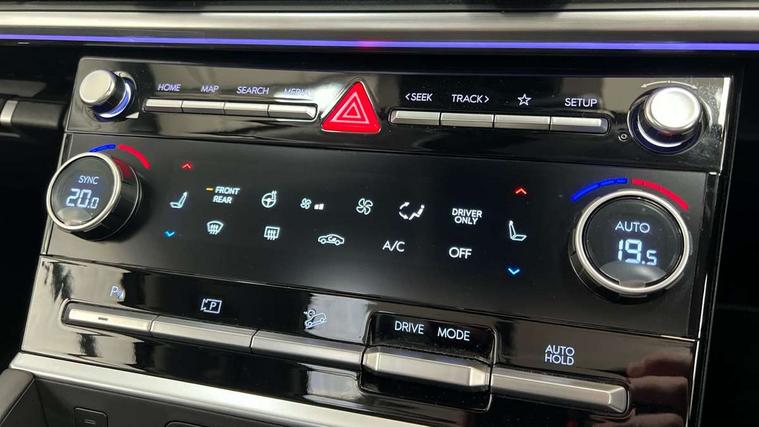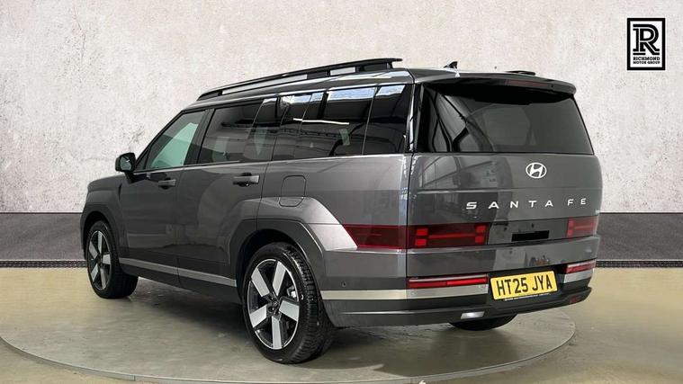 12.3" Drivers supervision instrument cluster with LCD display, 360 degree parking sensors, Blind spot collision avoidance assist (BCA), Blind spot view monitor (BVM), Bluelink and Wireless Apple Carplay/Android Auto, Bluetooth connectivity with voice recognition, Drive mode selector, Driver status monitor (DSM), Dual wireless phone charging pad, Emergency services call system, Forward collision avoidance assist (FCA 2.0), Head up Display, Highway drive assist 2 (HDA 2), Intelligent speed limit assist (ISLA), Lane departure warning system (LDW), Lane Follow Assist 2 (LFA 2), Lane keeping assist (LKA), Low washer fluid warning, Navigation based smart adaptive cruise control with stop and go, Over the air software updates (OTA), Parking Collision Avoidance Assist-Reverse (PCA-R), Power assisted steering, Remote smart parking assist, Safe exist assist (SEA), Smart electric tailgate with hand's free opening function, Surround view monitor, Self levelling suspension, Shift by Wire Gear Selector (SBW), 12.3" Touchscreen display with satellite navigation, 2nd Row USB C Ports x2 Charging, 3rd Row USB C Ports x2 Charging, Front USB C port 1 charging and 1 data/charging, Premium BOSE sound system with 12 speakers and subwoofer, Steering wheel audio, phone and cruise controls, Automatic headlights with dusk sensor, Automatic windscreen wipers with rain sensor, Body colour bumpers, Digital centre mirror, Dual glass electric tilt and slide sunroof, Dynamic welcome lights, Electric adjustable/heated/auto power folding door mirrors, Front and rear electric windows, Heated rear window, Hidden rear wiper, High beam assist, LED daytime running lights, LED Headlights, LED indicator lights, LED indicators in door mirrors, LED positioning lights, LED taillights, LED third brake light, Manual rear door blinds, Rear side wing doors, Rear windows and tailgate privacy glass, Roof rails, Solar glass windscreen and front windows, Windscreen acoustic film, Windscreen auto defog function, 2nd and 3rd row center armrest with cupholder, 3rd row head restraints, Centre rear head restraint, Dual zone climate control air conditioning, Electrically adjustable front seats with 2 way electric lumbar support, Front head restraints, Front seats with memory, Heated front seats, Heated rear seats, Height and reach electrically adjustable steering column, Leather upholstery, Leather wrapped heated steering wheel, Luggage cover, Luggage hooks, Luggage net, Multi colour LED ambient lighting, Rear head restraints, Single front passenger seat, Split folding (50/50) third row seats, Split folding (60/40), sliding and reclining second row seats, Sun Visors with driver and passenger illuminated vanity mirrors, Two front cup holders, Ventilated front seats, Trailer wiring pack - Santa Fe, 3 point seatbelts on all seats, Adjustable regenerative braking paddle shifters, Airbag - Front, front side, curtain and centre front airbags, Anti-lock brake system (ABS), Dynamic brake control, Electric parking brake with auto hold function, Electronic Stability Control (ESC), Hill start assist control (HAC), Manual child lock in rear doors, TSA (Trailer Stability Assist), Tyre pressure monitoring system, Immobiliser, Smart Key - Keyless entry with Power On/Off button, 20" Standard silver alloy wheels, Tyre mobility kit,
