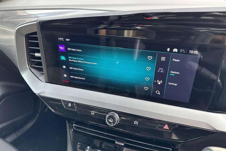 10" digital instrument cluster, Cruise control with intelligent speed limiter, Digital instrumentation with digital speedometer, rev counter, fuel and water temperature gauge, Driver attention alert, Driver drowsiness alert system, Driver information display with multi function trip computer, audio info, digital clock and outside air temperature with ice warning function, Lane keep assist system (LAS) with Lane departure warning system (LDWS), Lights on audible warning, Panoramic rear view camera, Power assisted speed sensitive steering, RDS with traffic programme, Rear parking distance sensors, Speech recognition, Start/stop system, Vauxhall connect with e-Call, WiFi connectivity, Wireless phone projection with Apple CarPlay and Android Auto, Sports chassis, 2 rear USB connection, 6 speakers, AM/FM stereo radio with 36 station presets, DAB Digital radio, Front USB connection, Mobile phone portal - bluetooth connect, vehicle microphone, handsfree calls, SMS read out and reply, phone book access, Multimedia pure panel system with 10" colour touchscreen, Steering wheel mounted controls, Adaptive brake lights, Automatic lighting control with tunnel detection, Black DLO, Black door mirror housings, Black Griffin logo and vizor frame, Black lettering and emblems, Black upper window moulding, Body colour door handles, Body colour front and rear bumpers, Body colour skid plates, Dark tinted rear side windows, Electrically adjustable and heated door mirrors, Electrically operated front and rear windows with safety auto reverse and one touch up/down facility, Hazard warning lights, Heated rear window+rear wash/wipe, High gloss black front and rear bumper inserts, High gloss black painted claddings, lower grille and front lateral inserts, High gloss black painted lateral moulding, Integrated black tailgate spoiler, Intelli LED headlights, LED 3rd brake light, LED daytime running lights, LED side repeat indicators, LED tail lights, Manual headlamp level control, Rain sensitive windscreen wipers, Rear side wing doors, Reversing light, Shark fin antenna, Solar heat absorbing windscreen and windows, Windscreen and side window demist vents, 12V Accessory socket, 3 seat bench in 2nd row, 4 speed fan with illuminated controls, 6 way adjustable front passenger seat including height adjustment, 60/40 split folding rear seat, Air recirculation system, Ambient lighting, Black headliner, Cabin particulate filter - removes dust, airborne particles and pollen, Centre armrest console, Chrome effect interior door handles, Door pockets with two litre capacity, Driver and passenger sun visors with vanity mirror, Electronic climate control (ECC), Focus cloth/leather upholstery, Four adjustable facia vents, Four load restraint lashing eyes, Front centre armrest with storage, Front driver and co-driver side articulated grab handles, Front head restraints, Front map reading lights, Front seat back storage pockets, Fully carpeted load area, Interior courtesy light, Interior tailgate handle, Luggage compartment cover, Luggage compartment lighting, Reach + rake adjustable steering column, Rear Reading Lamps, Single front passenger seat, Three height adjustable rear seat head restraints, Twin gas assisted tailgate struts, 2x Isofix child seat fitting on outer rear seats, 3x3 point rear seat belts, Anti-lock braking system (ABS), Child proof locks on rear doors, Cornering brake control, Deactivation switch for front passenger front and side impact airbags, Drag torque control, Driver and front passenger airbags, front seat side impact airbags, full size curtain airbags, Electronic brake force distribution, Electronic Stability Programme (ESP), Emergency brake assist, Enhanced automatic emergency braking with pedestrian detection, Forward collision alert at low speed, Hill start assist, Inertia reel lap and diagonal seatbelts for all seats, Manual parking brake, Seatbelt unfastened audible warning and warning light, Straight line stability control, Traction control, Tyre pressure monitoring system, Electronically protected audio equipment, Engine deadlock immobiliser, Freewheeling door locks, Key left in ignition audible warning, Locking wheel nuts, Remote control central locking, Remote control ultrasonic security alarm system, Visible vehicle identification number, Light grey trim inserts on front doors, Vegan door inserts, 18" Black diamond cut alloy wheels,