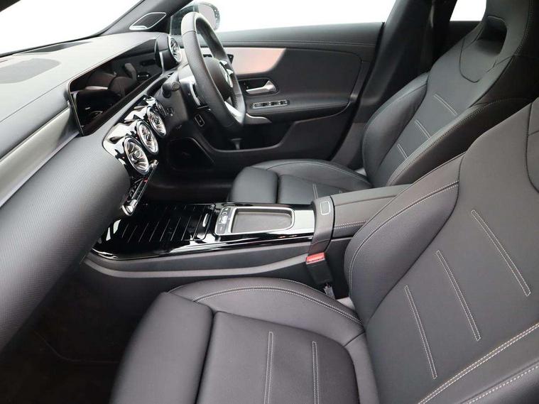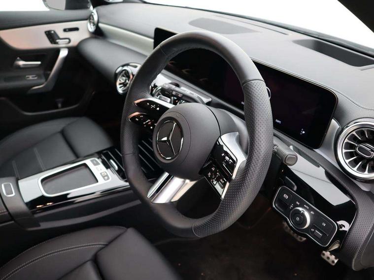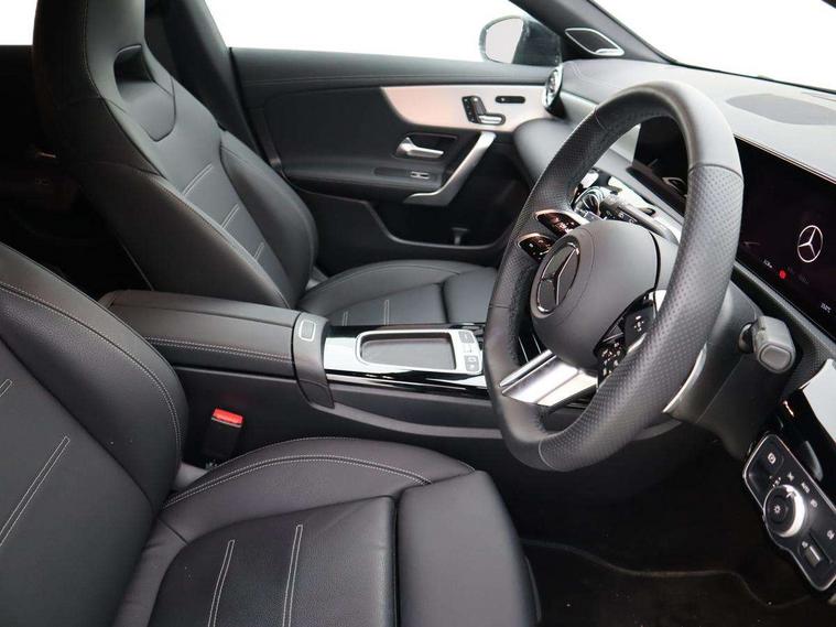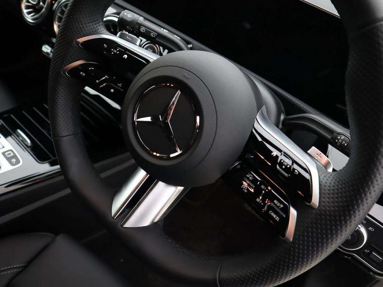 10.25 inch Instrument display with digital cockpit, 10.25 inch touchscreen central media display, Acoustic ambient protection, Active lane keeping assist, Attention assist - Monitors steering behaviour and long journey fatigue, Bluetooth connection, Car wash mode, Cruise control with limiter, Direct steer system, DYNAMIC SELECT with a choice of driving modes (ECO, Comfort, Sport and Individual), ECO start/stop function, Fluid level warning indicator for fuel, oil, coolant and washer fluid, Hard-disk navigation, Head up Display, Hey Mercedes Voice activation, Lamp failure indicator, Mercedes me connect including emergency call system, accident recovery, breakdown and maintenance management, Mercedes me remote and charging services plus, Outside temperature gauge, Owners manual in English, Pre-installation of private car share, Radio aerial integrated into front and rear windshields, Service indicator (ASSYST), Smartphone integration with Apple CarPlay and Android auto, Tailgate, Traffic sign assist, Trip computer in multifunction display with current consumption indicator, Wireless charging in the front centre console, Charging system - AC charging system rated at 11kW, Charging system - DC charging system rated at 22kW, Comfort suspension, Mode 3 charging cable for wallbox and public charging stations with 5m upto 11kW, Rear axle torsion beam, Burmester lettering on the speakers, Burmester surround sound system (710W) with dolby atmos, speakers - 1 central, 1 woofer, 1 tweeter, 1 subwoofer with 60W, 2 in C pillar, DAB digital radio tuner, MBUX multimedia system, Pre installation for Mercedes Benz Link, Adaptive brake lights, AMG body styling with AMG front apron and rear apron and visible exhaust tailpipe in chrome trim elements, Body colour door handles, Electric panoramic sunroof with automatic tilt and convenience closing fuinctions, rain sensor auto closing and electronic roller sunblind, Electric windows, Electrically adjustable and heated door mirrors with integrated LED indicators, Exhaust system with 2 Visible tailpipe trim elements and rear apron with trim in chrome, Hand free access, Headlamp assist automatic headlamp activation, Heated glass rear windscreen + timer control, High level LED third brake light, Integrated LED daytime running lights, Interior mirror with black reading lamps and frameless, LED tail lamp, Multibeam LED headlamps with adaptive highbeam assist plus, Privacy glass with dark tinting on rear side windows and rear window, Radiator grille with Mercedes-Benz pattern in chrome and central Mercedes star, single louvre in high-gloss black with chrome inserts, Rain sensing windscreen wipers with two sensitivity settings, Rear fog lamp, Rear side wing doors, Rear wiper, Variable front intermittent wipers, 3 seat bench in 2nd row, 3 twin spoke flattened multifunction steering wheel in nappa leather - horizontal twin spoke in high gloss black, vertical twin spoke in silver chrome, 40:20:40 split folding rear seat backrests, Air conditioning - Two zone thermotronic luxury automatic climate control with display, Air vents with surround in silver chrome, Artico man-made leather/Microcut microfibre upholstery, Automatic child seat recognition sensor, Black roof lining, Brushed stainless steel sports pedals with rubber studs, Charging socket, Electrically adjustable front memory seats including 4 way lumbar support, Floor mats with stitched AMG lettering, Fluorescent jacket, Front centre armrest with stowage, Galvanished gear shift paddles in silver chrome, Interior lighting - 64 colour Ambient lighting, Luggage net on driver/front passenger seat backrest, Manually height and reach adjustable steering column, Pre-entry climate control, Rear armrest with two integral cup holders for drinks, Rear head restraints, Single front passenger seat, Sport seats with fixed head restraints, Stowage compartment in centre console with retractable cover, Sunvisors with illuminated vanity mirrors, Twin front cupholders, Two outer rear seat isofix and top tether child seat fixing points, Drive parking assist pack with 360 degree camera - CLA, Keyless go comfort pack - CLA with easy pack tailgate, Light and sight pack - CLA, Mirror pack - CLA, Night package - CLA, Seat comfort pack - CLA, USB package plus - CLA, Winter pack - CLA, Active bonnet pedestrain safety measure which detects an impact and raises bonnet by 65mm, Adaptive brake assist with hold function and hill start assist, Anti lock braking system (ABS) with brake assist, Black seat belts, Bonnet with power domes, Brake calipers with Mercedes-Benz lettering, Brake pad wear warning indicator, Childproof locks manually operated for rear doors and electrically operated for rear power windows, Crash responsive emergency lighting, Driver and front passenger head and sidebags, Driver and front passenger windowbags, Drivers knee airbag, Dual stage driver and front passenger airbags, Electric parking brake, Electronic stability programme with acceleration skid control, ESP curve dynamic assist, Exit warning, Front and rear seatbelt reminder, Front passenger seat occupancy sensor, Perforated front brake discs, Radar-based recuperation, Sports braking system, Three point rear seat belts, Tyre pressure monitoring system, Warning triangle and first aid kit, Alarm system with immobiliser and interior protection -Thatcham category 1, Guard 360 deg vehicle protection - tow away protection with visual, acoustic warning, interior monitoring, preinstallation for parking damage, Remote central locking and crash sensor with emergency opening function, Light aluminium with longitudinal grain interior trim, 19" AMG multi-spoke black painted light alloy wheels with high sheen rim flange, Summer tyres, Tirefit tyre sealant kit,