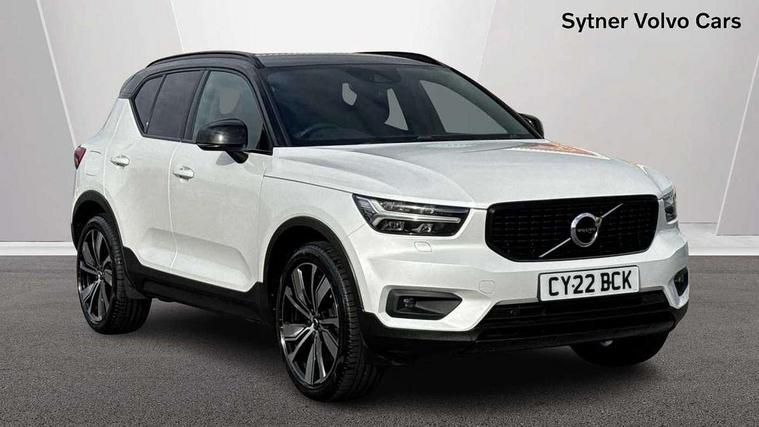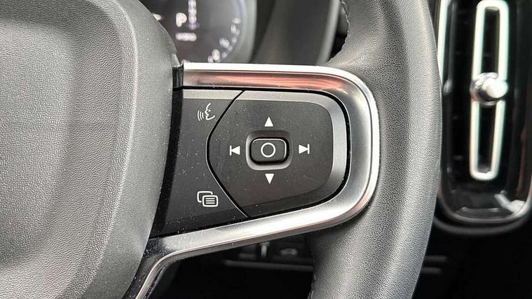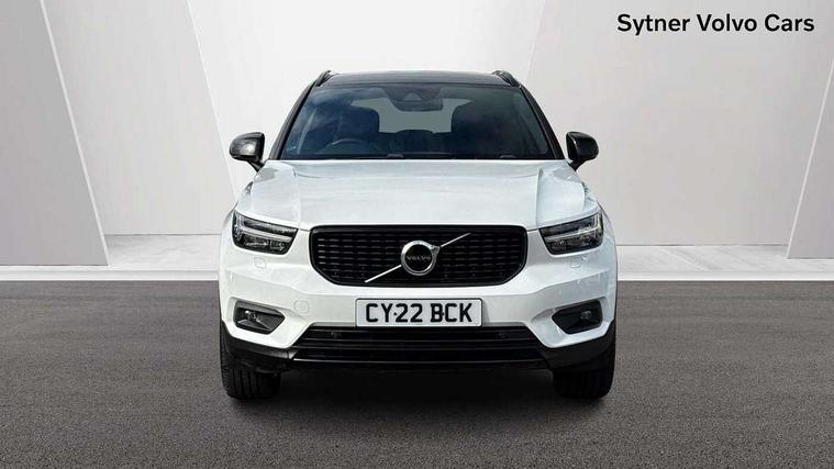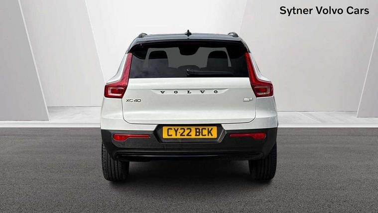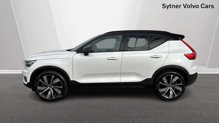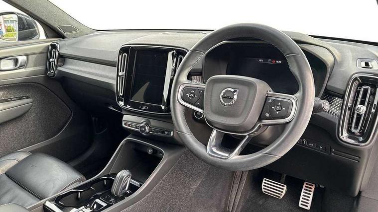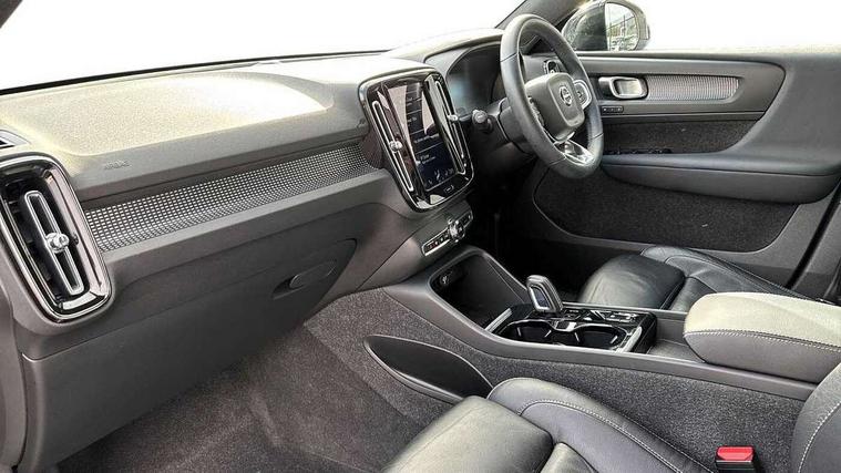 12.3" Active TFT crystal driver's instrument display, 9" centre console portrait touch screen, Adjustable steering wheel force, Bluetooth hands free telephone kit, Drive mode selector, E-call, Lane keep assist with driver alert control, Oncoming Lane Mitigation, Power operated tailgate, Sensus navigation with European mapping and traffic information, Speed limiter, Speed sensitive steering, Voice activated control for key functions, Volvo on call, 7m 10amp charge cable with 3 pin plug and 7m 1 phase 16amp type 2/mode 3 charge cable, Electric front axle drive, Recharging port located in nearside front wing, Sports chassis, DAB Digital radio, Low speed exterior sound speaker, Steering wheel mounted remote controls, Adaptive brake lights with high level LED brake lights, Auto dimming interior mirror, Automatic headlamp levelling, Automatic LED Headlights + Active high beam incorporating daytime running lights, Dark tinted windows for rear door side windows and cargo compartment, Electric adjustable/heated/auto folding door mirrors, Front aluminium tread plates, Front and rear electric windows, Heated front windscreen, High gloss black front and rear skid plate, High gloss black lower front bumper, High gloss black mesh front grille with high gloss black surround, High gloss black sensus surround deco, High gloss black window trim, Home safe and approach lighting, Integrated roof rails in high gloss black, Rain sensor with automatic windscreen wiper activation, Rear side wing doors, Rear wiper, Roof antenna, Roof spoiler, Visible VIN plate, 12V socket in front tunnel console and luggage compartment, 2 zone electronic climate control and rear air vent, 3 seat bench in 2nd row, 60/40 versatile split folding rear seat, A-pillar parking ticket holder, Bright metal luggage threshold, Centre console cupholders and storage, Charcoal headlining, Front footwell illumination, Front headrests, Front reading light and theatre lighting, Front seat cushion extensions, Glovebox bag hook, Heated front seats, Height/reach adjustable steering column, Height/tilt adjustable driver's seat, High gloss centre tunnel deco, Illuminated glovebox, Illuminated luggage compartment, Illuminated vanity mirrors, Isofix attachments on outer rear seats, Leather gearknob, Load protection net, Multi directional lumbar support, Power driver seat with memory + exterior mirrors memory, Rear armrest / integral cup holders / storage tray, Rear coat hook, Single front passenger seat, Sports floor mats, Sports pedals, Sports tailored steering wheel, Underfloor cargo storage, Vanity mirror with ticket holder, Lighting pack - XC40, 3x3 point rear seatbelts, City safety includes pedestrian, cyclist and large animal detection and front collision warning with full auto brake, Drivers knee airbag, Dual stage driver/passenger airbags, Electronic parking brake with auto hold, First aid kit, Front and outer rear seatbelt reminder and pretensioners, Front seats SIPS airbags, Hill descent control, Hill start assist, Inflatable curtain, Passenger airbag cut-off device, Road sign information display, Run off Road Mitigation, Run off Road Protection, SIPS (Side Impact Protection System), Slippery road and hazard light alert, Stability and Traction Control with Spin control, Engine Drag Control and Corner Traction Control, Tyre pressure monitoring system, Vehicle deceleration control with Anti-lock Brake System, Electronic Brake Distribution and Emergency Brake Assist, Warning triangle, WHIPS whiplash protection system - front, Anti-theft alarm including immobiliser/volume sensor + level sensor, Care key with user defined top speed, Key integrated remote control central locking + fuel flap with deadlocking system and auto open/close power windows, Locking wheel nuts, Private locking for tailgate, Cutting edge aluminium inlay, Lower dashboard, tunnel console and door panel in charcoal, 20'' 5 double spoke diamond cut/high gloss black alloy wheels,