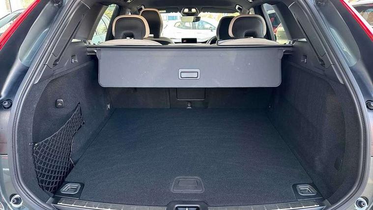 11.2" centre console touch screen, 12.3" Progressive Driver Display, 360 degree surround view parking camera with side proximity sensors, Adaptive cruise control, Adjustable steering wheel force, Android auto (Wired), Apple carplay (wired), Bluetooth handsfree system, Driver alert control with lane keeping aid, Emergency services call system, Front and rear park assist, Google Automotive Services, Intelligent speed assistance, Oncoming Lane Mitigation, PAS, Power operated tailgate with handsfree opening and closing, Service interval indicator, Speed limiter, Speed sensitive steering, Trip computer, Volvo cars services with app, Volvo on call with App, Wireless/Inductive Mobile Phone Charging, 8 speed automatic transmission with start/stop + manual change functions, DAB Digital radio, Premium Sound by Harman Kardon, dirac unison, dolby pro logic II surround sound, 13 speakers/600W output and fresh air subwoofer, Steering wheel remote infotainment controls, Adaptive brake lights with high level LED brake lights, Auto dimming interior + exterior mirrors, Automatic headlight levelling system, Automatic LED Headlights + Active high beam incorporating daytime running lights, Electric adjustable/heated/auto power folding door mirrors, Electric front+rear windows, Front aluminium tread plates, Heated front windscreen, High gloss black door mirrors and window surround, High gloss black front and rear bumper decoratives, High gloss black mesh front grille with high gloss black surround, Home safe and approach lighting, Integrated roof rails in high gloss black, Puddle lights, Rain sensor with automatic windscreen wiper activation, Rear side wing doors, Rear wiper, Roof antenna, Roof spoiler, Tinted windscreen, Visible VIN plate, 12V socket in front tunnel console and luggage compartment, 3 seat bench in 2nd row, 3 Spoke tailored steering wheel with chrome trim, 4 Zone electronic climate control, A-pillar parking ticket holder, Air purifier particulate matter (PM) 2.5 filter, B Pillar ventilation, Bright metal luggage scuff plate, Centre console cupholders and storage, Charcoal floor mats, Front and rear courtesy lights, Front and rear door pocket illumination, Front cupholder illumination, Front footwell illumination, Front reading lights, Front seat cushion extensions, Glovebox compartment with illumination, Head restraints for all seats, Heated front seats, Heated steering wheel, Height/reach adjustable steering column, Illuminated luggage compartment, Illuminated vanity mirrors + ticket holder, Inner door release handle illumination, ISOFIX attachment on outer rear seats, Load cover, Load protection net, Multi directional lumbar support, Power driver seat with memory + exterior mirrors memory, Power height adjustable passenger seat, Power passenger seat with memory, Quilted nordico leather upholstery, Rear armrest with cupholder, Rear footwell and front and rear side step illumination, Rear reading lights, Rear seat concealed storage, Single front passenger seat, Tailgate illumination and ambient door lighting, Underfloor stowage compartment, Versatile split folding rear seat - 60/40, Driver assist pack without Adaptive cruise control - XC60, 5 three point seatbelts, City safety with steering support with Pedestrian + cyclist + front collision warning with full auto brake and rear auto brake, Drivers knee airbag, Dual stage driver/passenger airbags, Electronic parking brake with auto hold, First aid kit, Front seats SIPS airbags, Hill descent control - Off-road drive mode, Hill start assist, IC (Inflatable Curtains) - Full Length, Passenger airbag cut-off device, Power child locks on rear doors, Road sign information display, Run off Road Mitigation, Run off Road Protection, Seatbelt reminder and pretensioners, SIPS (Side Impact Protection System), Slippery road and hazard light alert, Stability and Traction Control with Spin control, Engine Drag Control and Corner Traction Control, Tyre pressure monitoring system, Vehicle deceleration control with Anti-lock Brake System, Electronic Brake Distribution and Emergency Brake Assist, Warning triangle, WHIPS whiplash protection system - front, Anti-theft alarm including immobiliser/volume sensor + level sensor, Key integrated remote control central locking + fuel flap with deadlocking system and auto open/close power windows, Keyless Drive (includes Keyless Entry and Keyless Start), Locking wheel nuts, Private locking for tailgate, Summer tyres,