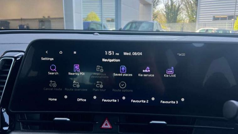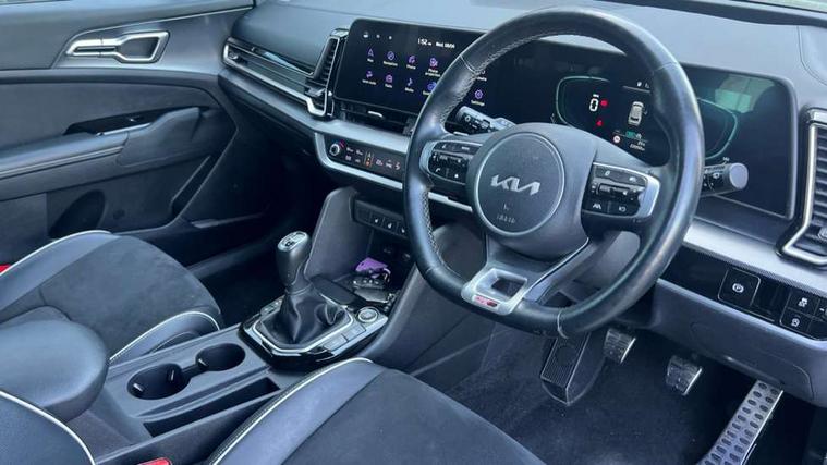 12.3" Display with navigation, 4.2" supervision colour cluster display, Apple car play/Android Auto with voice control, Cruise control + speed limiter, Drive mode selector, E-call, Forward collision avoidance assist (FCA) - city/pedestrian/cyclist/junction covering, Front and rear parking sensors, Intelligent speed limit assist, Kia Connect (UVO), Lane Following Assist (LFA), Lane keep assist, Low washer fluid warning, Rear view monitor, Reversing camera system integrated into centre fascia screen, Speed sensitive power steering, Trip computer, Windscreen washer level indicator, Intelligent Stop and Go, 6 speaker audio system, Bluetooth audio streaming, DAB Radio with MP3, Rear USB port, Steering wheel mounted audio controls, USB C type charging ports on centre console, USB C type charging ports on side of front seats, USB port for connection of a media device, All round electric windows with drivers and front passenger auto up/down function, Automatic headlight control system, Automatic window defogger, Backlite glass heated with timer, Black bumpers, Body colour and black bumper with silver accents, Body colour exterior door handles, Body colour radiator upper garnish and door garnish, Electrically adjustable/heated/folding door mirrors with LED indicators, Front and rear chrome skid plates, Gloss black door mirrors, Gloss black radiator grille, Gloss black side sill and wheel arch body mouldings, Glossy black roof rack, High beam assist, Interior electrochromic mirror, LED daytime running lights, LED front fog lamps, LED headlamps (low and high beam - MFR type), LED High mounted stop light, LED rear combination lamp, Rain sensing wipers with aero blades, Rear fog lamp, Rear privacy glass, Rear side wing doors, Rear spoiler, Rear wiper, Satin finished beltline, Silver coloured inserts to bumpers, Tinted rear glass, Trailer stability assist, 12V power socket in front centre fascia and luggage compartment, 2nd row personal lamps, 3 seat bench in 2nd row, 3 x passenger assist grips, 40/20/40 split folding rear seat, All-round height adjustable headrests, Black headlining, Centre console storage box, Cupholders in rear armrest, D-Shaped sports leather steering wheel and perforated inserts with GT-Line logo, Door courtesy lamps, Drink holder at centre armrest, Driver and front passenger side sunvisors with illuminated vanity mirrors, Driver's seat manual height adjust, Drivers seat power lumbar support, Front and rear door storage, Front seat and rear pockets, Front/rear centre armrests, Gear shift indicator, Glovebox illumination, Heated front seats, Heated steering wheel, Interior door lock/unlock function, ISOFIX Child seat top tethers and anchor fixings outer rear seats, Luggage area light, Luggage area load cover, Luggage net with hooks, Metal paint interior door handles, Overhead console lamp, Rear cabin light, Rear coat hooks, Single front passenger seat, Sports pedals, Suede leather upholstery, Three zone climate control, Tilt/telescopic adjustable steering wheel, Ventilation ducts to rear compartment, Active front headrests, All round 3-point seatbelts, Anti-lock braking system (ABS), Dual front side airbags, Dual horn, Electronic parking brake, Electronic stability control with downhill brake control, Front passenger airbag cut-off switch, Front seatbelt pretensioners + load limiters, Height adjustable front seatbelts, Hill start assist control (HAC), Impact sensing auto door unlocking, Multi collision brake assist, Rear door child safety locks, Rear seat alert system, Traction control, Twin curtain airbags, Twin front airbags, Tyre pressure monitoring system, Advanced anti-theft system including immobiliser and alarm, Door deadlocks, Engine Start/Stop Button with Smart Entry System, Locking wheel nuts, Speed sensitive auto door locking, Visible vehicle identification number, Aluminium pattern finish centre fascia and door garnish, 19" GT-Line alloy wheels, Tyre mobility kit,
