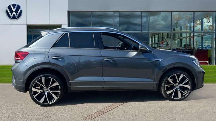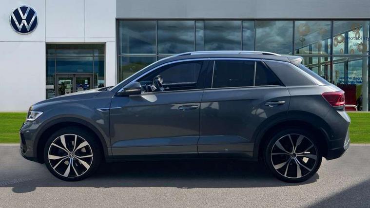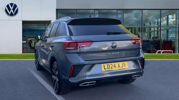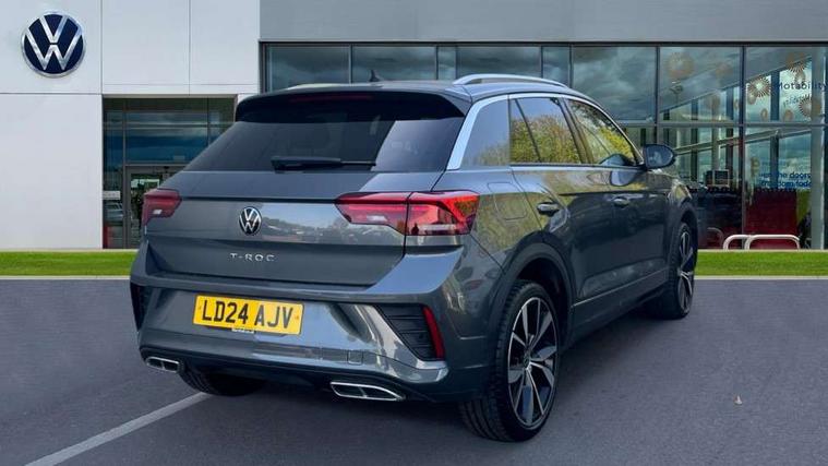 10.25" Digital cockpit pro, Advanced driver attention and drowsiness monitor, Bluetooth mobile phone interface, Emergency call service, Lane keeping system Lane Assist, Modified key software - reduce switch off time for key status change to Long no motion, Online services, Park assist including front and rear parking sensors, Service interval indicator, Tailgate/trunk lid release from outside, Think blue trainer driver tips and journey analysis, Warning sound and light for front seatbelts unfastened, Wireless app connect, Battery regeneration during braking, Start/stop function with battery regeneration, Diversity antenna for FM reception, Music playback - MP3, WMA and AAC files, Premium USB cable in choice of either Apple or Android smartphone compatibility, SD card slot, Simultaneous pairing of 2 compatible mobile devices, Title and cover art display, We Connect and We Connect Plus functionality, 3rd brake light, Auto dimming interior rear view mirror, Automatic hazard lights activation under emergency braking, Automatic headlight control with LED separate daytime running lights with coming/leaving home function, Electrically adjustable and heated door mirrors, Extended roof spoiler, Exterior mirrors aspherical on driver side, convex on front passenger side, External USB type C socket and charging sockets, Front windscreen wiper with intermittent wipe and 4 position delay, Heated rear window, LED rear combination lamps, LED rear number plate lights, Power windows with comfort operation and circuit breaker, R-Line design body coloured bumpers, Rain sensor, Rear exhaust tailpipe, Rear fog light on one side and reversing lights on both sides, Rear side wing doors, Rear wash/wipe with intermittent wipe setting, Remote electrically foldable door mirrors, puddle lights and reverse activated passenger's door mirror, 12V power socket in centre console, 3 rear head restraints, 3 seat bench in 2nd row, 4 load lashing points in luggage compartment, Air care climatronic air conditoning system with active combination filter and 2-zone temperature control, Black roof lining, Chrome plated radiator grille inserts, air vent surrounds and light switch surrounds, Door and side trim panel with leatherette insert, Front + rear carpet mats, Front centre armrest, Front cupholders x 2, Front footwell illumination, Front reading light, Front scuff plates with R Line logo, Front seat back storage pockets, Glove compartment door with light, Instrument lighting, white adjustable panel illumination, Interior ambient lighting and surround lighting, Interior light delay, Isofix child seat preparation, Leather gearshift handle, Load-through provision with cup holder when folded down ('Unsplit rear seat bench, split folding backrest, with centre armrest), Luggage compartment lighting, Single front passenger seat, Stainless steel pedals, Storage compartment in left and right luggage area, Storage compartment in rear doors, Storage compartments in driver and front passenger doors, Sunvisors with illuminated vanity mirrors, Variable boot floor, height adjustable and removable, Driver assistance pack without proactive passenger protection - T-Roc, 3 point height adj front seatbelts + pretensioners, 3 point seatbelts in outer rear with ECE label, ABS, Child locks on rear doors, City emergency braking and pedestrian monitoring, Driver and front passenger airbag with front passenger airbag deactivation, Driver and front passenger safety-optimised head restraints, Drivers seatbelt reminder, Electronic parking brake, Electronic Stability Control (ESC) inc EDL (Electronic Differential Lock) and ASR (Traction Control), Front and rear passengers curtain airbag system including front side airbags, Hill start assist, Predictive pedestrian protection, Rear disc brakes, Two tone horn, Tyre pressure loss indicator, Volkswagen roadside assistance, Anti-theft alarm system with interior monitoring, backup horn, and towing protection, Remote central locking with SAFELOCK, radio remote control with 2 remote control folding keys, Trims for alloy wheels,