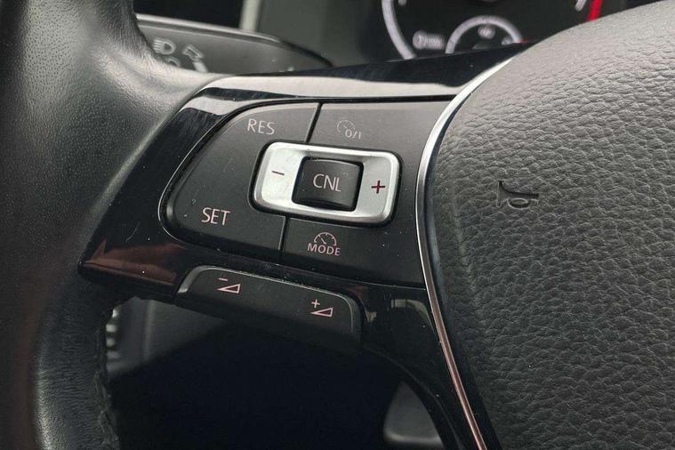 Digital clock, Driver alert system, Emergency call service, Multifunction computer plus, Power assisted speed sensitive steering, Speedo and rev counter, electronic odometer, trip, service interval display and fuel gauge, Start/stop system, Volkswagen connect, Warning buzzer and light for front seatbelts unfastened, Wireless app connect, Battery regeneration during braking, Galvanished body, Diversity antenna for FM reception, Front and rear 6 speakers, Black grille with chrome surround, Black radiator grille with chrome louvres, Body colour bumpers, Body colour door handles, Body colour rear spoiler, Body coloured side sills, Electric front windows, Electrically adjustable and heated door mirrors with reverse activated kerb view adjustment on passenger's side, Front windscreen washers and wipers with 4 speed intermittent delay, Heated rear window with auto timer, High level 3rd brake light, LED daytime running lights, LED rear number plate lights, Rear electric windows, Rear windscreen washer and wiper with interval delay, reverse activated, 2 bag hooks in luggage compartment, 2 front and 2 rear reading lights, 2 front cupholders and 12 V socket with cover, 3 rear head restraints, 4 grab handles, 60/40 split folding rear seat, Centre console storage with open storage compartment, Chrome interior door handles, Driver and front passenger seat height adjustment, Driver and front passenger sunvisors with illuminated vanity mirrors, Dust/pollen filter, Folding rear seat backrest, Front head restraints, Front seat backrest storage pockets, Gear lever gaiter in black trim surround, Glovebox, Handbrake grip button in chrome effect, Height/reach adjustable steering column, Instrument lighting, adjustable panel illumination, Interior light with delay, Isofix Preparation 2 Rear child seats, Leather gear knob and handbrake grip, Leather multifunction steering wheel, Luggage compartment cover, removable, Luggage compartment lighting, Luggage compartment with variable load floor, Storage compartment in front doors, Storage compartment in rear doors, Storage compartment under front seats, Sunglasses holder, 3 point height adj front seatbelts + pretensioners, 3x3 point rear seatbelts, ABS, Automatic post collision braking, Driver/front passenger airbag, Drivers and front passengers safety optimised head restraints, ESP with EDL + ASR, Front and rear passenger curtain airbags, Front disc brakes and rear drum brakes, Front passenger airbag deactivation, Front seat side impact airbags, HBA (Hydraulic Brake Assist), Hill hold control, Single tone horn, Tyre pressure monitoring system, Alarm with interior protection and deactivation via infotainment system, Electronic engine immobiliser, Remote central locking with 2 remote folding keys, Air vents in High gloss black, Limestone grey decorative inserts,
