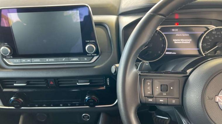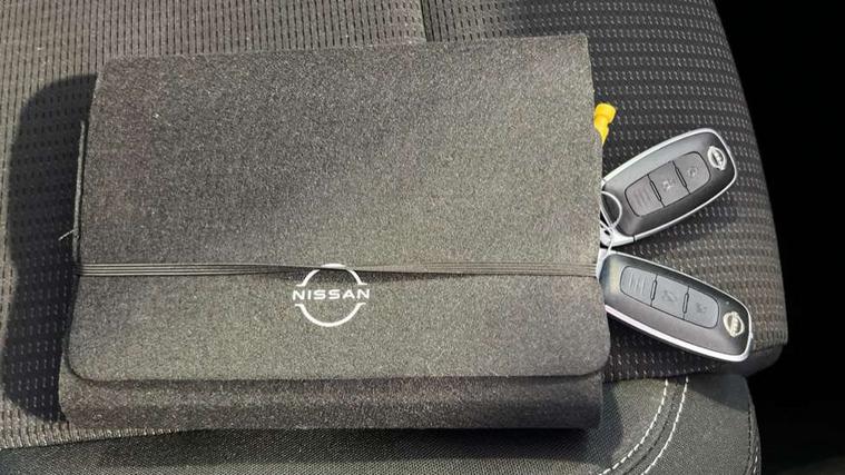 7" High definition full colour TFT screen combimeter, Android auto/Apple CarPlay (Wired), Blind spot warning, Drive modes (sport, normal, eco), Electric speed sensitive power steering, Emergency and breakdown call, Idle stop/start system, Intelligent Cruise control (ICC), Intelligent driver alert system, Intelligent forward collision warning, Intelligent lane intervention, Lane departure prevention, Lane departure warning system, Maximum speed limiter, Nissan connect 8" touchscreen infotainment system, Push button starter, Rear cross traffic alert, Rear parking sensors, Rear view camera, Traffic sign recognition with legal speed adjustment, Trip computer, 6 speakers, AM/FM audio system with DAB, Bluetooth audio streaming, Front USB connections (Type-A and Type-C), Auto dimming rear view mirror, Auto rear wiper when reversing, Automatic hazard signal with emergency stop signal, Body colour mirror caps, Body coloured door handles, Bodyside mouldings, Chrome side window finisher, Door handle with button, Electric auto folding door mirrors, Electrically adjustable and heated door mirrors with LED turn indicator, Follow me home headlights, High beam assist, Intelligent auto headlights, LED 3rd brake light, LED daytime running lights, LED Headlights, LED rear lights, One touch front and rear electric windows with remote opening and closing, Partially body coloured bumpers, Rear reversing light (bulb lighting), Rear roof spoiler, Rear side wing doors, Shark fin antenna, Splash free rain sensing wipers, Three blink turn signal, 12v power socket in dashboard and luggage, 2x Rear coat hooks, 3 bench rear seats in 2nd row, 3 rear headrests, 4 folding assist grip, 6-way manually adjustable driver's seat, 60/40 split folding rear seat bench, Centre console storage tray, Chrome interior door handles, Cloth monoform upholstery, Driver and front passenger sunvisors with illuminated vanity mirrors, Dual zone automatic climate control with pollen filter, Electrically adjustable lumbar support for driver, Front and rear door storage, Front centre console and armrest, Front cupholders x 2, Front door with bottle holders, Glovebox with light, Hard trunk cover, Height adjustable driver's seat, Height adjustable front headrests, Height adjustable passenger seat, Luggage space lighting, Manually adjustable passenger (slide recline + lifter), Multifunction steering wheel, Passenger seat back pocket, Rear armrest with 2 cupholders, Rear door bottle holders, Single front passenger seat, Steering wheel gearshift paddles, Steering wheel switches, Sunglasses holder, Tilt/telescopic adjustable steering wheel, Two rear isofix child seat anchorage points with top tether, 3x3 point rear seatbelt pretensioners + load limiters, ABS with EBD and brake assist, Active brake limited slip, Auto hold function, Child locks on rear doors, Curtain and front side, far side airbags, Driver and passenger airbags, Driver, passenger and 2nd row rear seat belt reminder, Electronic parking brake, Front seatbelt pretensioners + load limiters, Height adjustable front seatbelts, Hill start assist, Intelligent blind spot intervention, Intelligent front emergency braking with pedestrian, cyclist recognition and junction assist, Intelligent rear automatic braking, Tyre pressure monitoring system, Vehicle dynamic control, Capless fuel filler, Engine immobiliser, Intelligent Key, Remote central door locking with deadlocking, Thatcham Cat.1 alarm, Interior instrumental panel A finisher, 17" Alloy wheels, Tyre puncture repair kit,
