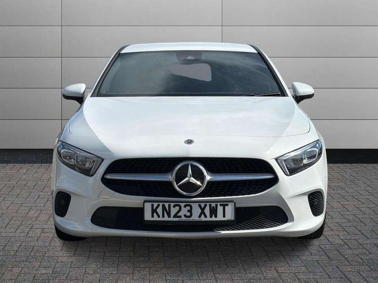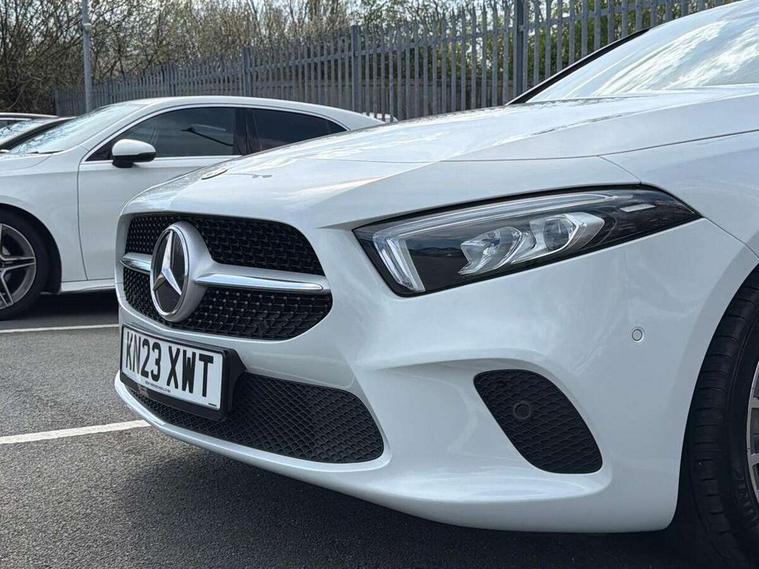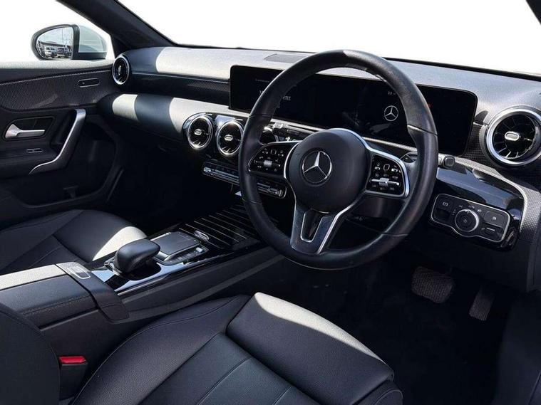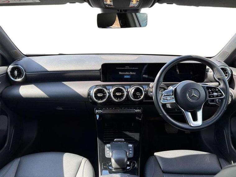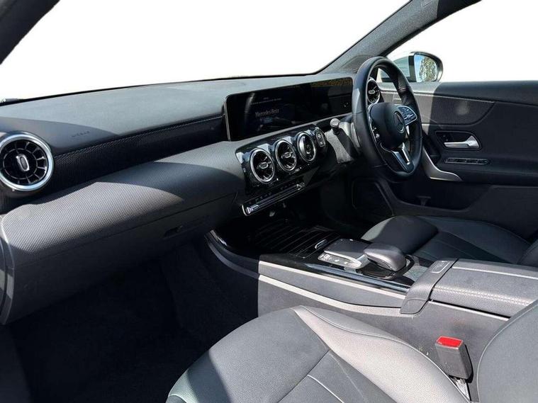 10.25" media display, 180 degree rear view camera with parking guidelines, 7" colour screen in instrument panel, Active parking assist with visual and audible warning of detected obstacles, Attention assist, Brake pad wear indicator warning light, Car wash mode, Cruise control + speed limiter, Direct steering, Dual bluetooth interfaces, DYNAMIC SELECT with a choice of driving modes (ECO, Comfort, Sport and Individual), ECO start/stop function, Fluid level warning indicator for fuel, oil, coolant and washer fluid, Hard-disk navigation, Hey Mercedes Voice activation, Lamp failure indicator, Lane keeping system, Mercedes me connect including emergency call system, accident recovery, breakdown and maintenance management, Mercedes me remote services, Outside temperature gauge, Owners manual in English, Pre-installation for private car sharing, Preinstallation for Mercedes Benz link, Service indicator (ASSYST), Smartphone integration with Apple CarPlay and Android auto, Speed limit assist, Speed sensitive power steering, Trip computer, Ultrasonic sensors positioned in the front and rear bumpers, Lowered comfort suspension, Rear axle torsion beam, 2 USB ports (type C) in rear stowage compartment and one in front of center console, 6 speakers, DAB Digital radio, MBUX multimedia system with DAB digital radio and touchpad including satellite navigation, Mercedes-Benz sound system - 100W, 4 Electric Front and Rear windows, Adaptive brake lights, Automatic headlights, Black weather strip, Body colour bumpers, Body colour door handles with chrome inserts, Body colour side skirt, Body coloured door mirrors, Chrome beltline trim, Diamond radiator grille with black pins with one louvre in silver + chrome insert, Electric adjustable and heated door mirrors with integrated LED side indicators, Exhaust system - Twin visible tailpipes in polished stainless steel, Headlamp assist automatic headlamp activation, Heated glass rear windscreen + timer control, LED High level third brake light, LED high performance headlamps with integrated LED daytime running lights, LED tail lamp, Privacy glass, Radio aerial, Rain sensing windscreen wipers with two sensitivity settings, Rear fog lights, Rear side wing doors, Rear wiper, Window line trim strip in chrome, 3 seat bench in 2nd row, 3 Spoke leather multi function steering wheel, 40:20:40 split folding rear seats, Artico man-made leather upholstery, Auto Mercedes-Benz child seat recognition sensor, Black air vents with surround in silver chrome, Black roof lining, Controller on centre console with chrome surround, Front centre armrest with storage compartment, Front comfort seats with adjustable head restraints, Front door sills with Mercedes Benz lettering, Front seat backs luggage nets, Gearshift paddles on steering wheel, Heated front seats, Height/reach adjustable steering column, Interior mirror with reading lamps in black and frameless, Manual height adjustable front seats, Rear head restraints, Seat occupancy sensor for front passenger seat, Single front passenger seat, Stowage compartment in centre console with retractable cover, Sunvisors with illuminated vanity mirrors, Touchpad on center console, Twin front cupholders, Two zone thermotronic luxury automatic climate control, Velour floor mats, Light and sight pack - A Class, Mirror package - A Class, Seat comfort pack - A Class, 3 rear 3 point seatbelts, ABS with Brake Assist, Active bonnet, Active brake assist includes forward collision warning system with autonomous braking, Adaptive brake assist with hold function and hill start assist, Childproof locks manually operated for rear doors and electrically operated for rear power windows, Crash responsive emergency lighting, Driver and passenger head and side airbags, Drivers knee airbag, Dual stage driver/passenger airbags, Electronic parking brake, ESP curve dynamic assist, ESP with ASR, Front and rear seatbelt reminder, ISOFIX and top tether child seat fixing points in two outer rear seats, Tyre pressure monitoring system, Warning triangle and first aid kit, Window airbags, Alarm system/interior protection/immobiliser, Keyless Go, Remote central locking and crash sensor with emergency opening function, Urban guard vehicle protection system with immobiliser and interior protection, Black seatbelts, Dark carbon fibre interior trim, 18" Multi spoke light alloy wheels painted in himalayas grey with high sheen finish, Summer tyres, Tirefit sealant kit,
