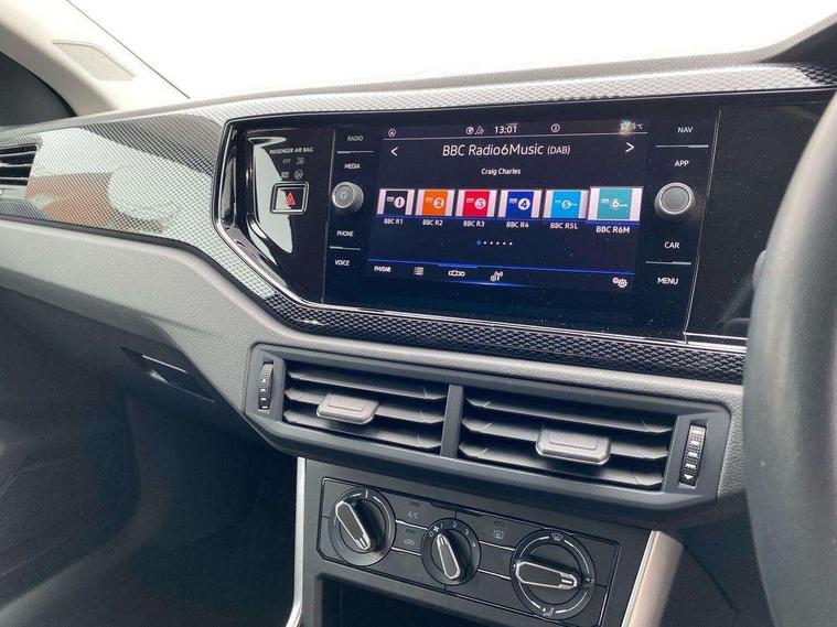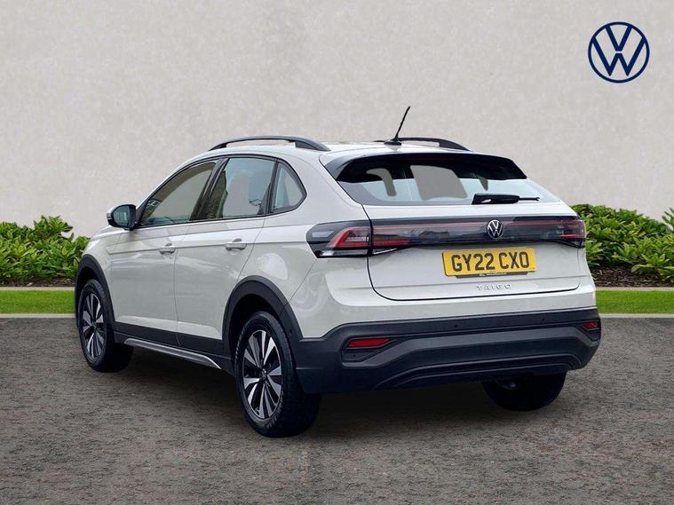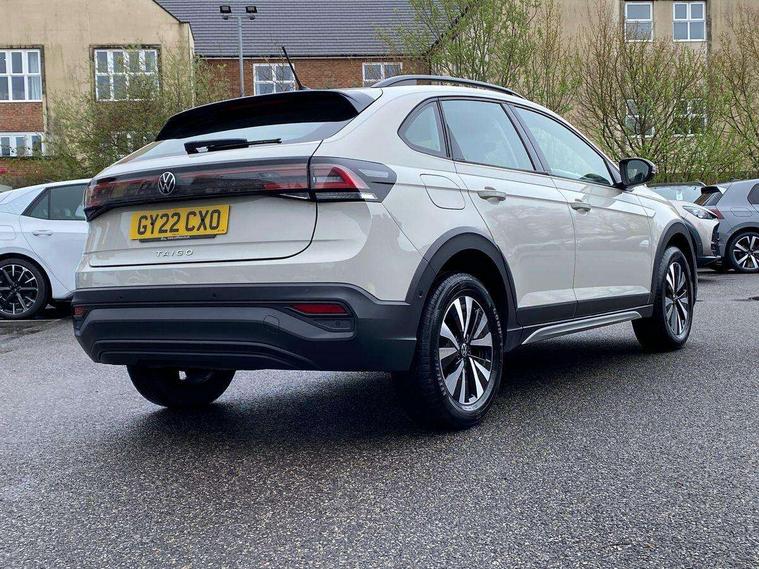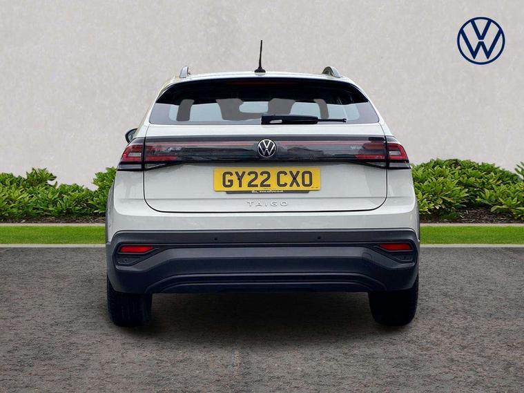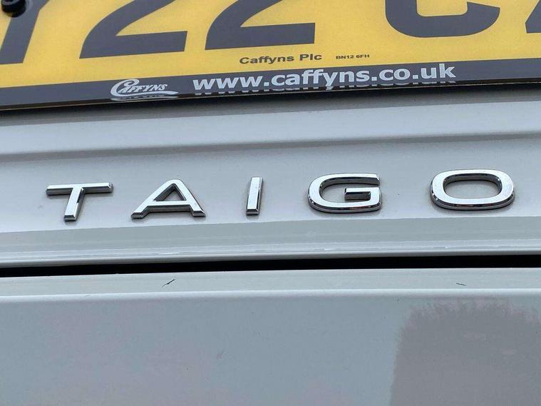 App-Connect including App-Connect Wireless, Driver alert system, e-Call (emergency call), Power Steering, Travel assist including emergency assist, Washer fluid level indicator, Wireless Charging including Bluetooth, Start-stop system with battery regeneration (recuperation - energy recovery during braking), Digital radio reception (DAB+), Diversity antenna for FM reception, WeConnect plus, Ambient lighting with logo projection, Aspherical driver's exterior mirror, Auto headlights, Body coloured bumpers, Body coloured exterior mirror housings and door handles, Electric windows, External USB type C socket and charging sockets, Front fog lamps with cornering function, Headlight range control, Heat insulating glass windscreen, LED headlamps, LED rear combination lamp, LED third brake light, Left convex exterior mirror, Power folding adjustable/heated exterior mirrors and front passenger exterior mirror lowering function, Rear fog light on one side, reversing light on both sides, Rear side wing doors, Rear wash/wipe with intermittent wipe setting, 'Slash/ Austin' Cloth upholstery, 12V socket in centre console, 2 front reading lights, 3 rear head restraints, 3 seat bench in 2nd row, Black carpets, Child seat anchor for child seat system i-Size, 2x top tether and child seat anchor in front on front passenger side, Door and side trim panels in titan black, Driver and front passenger seat height adjustment, Front centre armrest, Handbrake lever handle in leather, Height and reach adjustable steering wheel, Leather trimmed gear knob, Leather wrapped multifunction steering wheel, Luggage compartment floor, Luggage compartment light, Lumbar support for driver's and front passengers seat, Seat covers in titanium black, Single front passenger seat, Split folding backrest with centre armrest and unsplit rear seat bench, Storage compartment under front seats, Sun visors with illuminated vanity mirrors, Chrome Package - Taigo, Drivers assistance pack - Taigo, Light and Sight pack including High beam assist - Taigo, 2 x 3-point seatbelts/outer rear seats with ECE label, 3-point seat belts in front with pretensioner and height adjustment, 3-point seatbelt for centre rear seat, Driver and front passenger airbags with front passenger airbag de-activation, front side and curtain airbags, Driver and front passenger safety-optimised head restraints, Electronic stability control, Extended and predictive pedestrian/ cyclist protection, Front and rear disc brakes, Front curtain and side airbags with center airbag, Hill start assist, Manual rear child locks, Single tone horn, Tyre pressure loss indicator, Anti-theft alarm system with interior monitoring, backup horn, and towing protection, Anti-theft wheel bolts, Lava stone black gloss/matt decorative inserts in dash and front door panels, Low rolling resistance tyres,