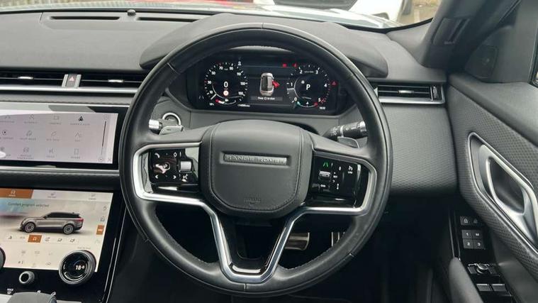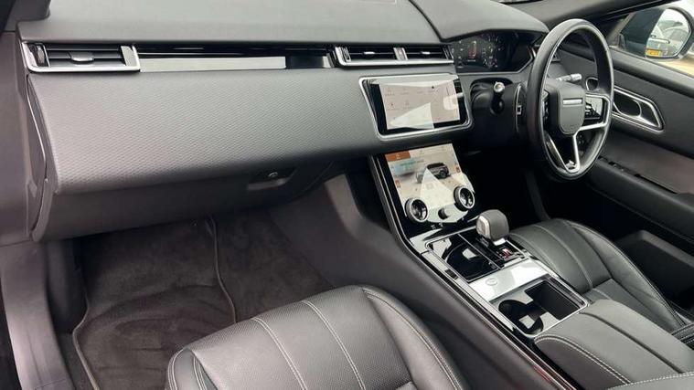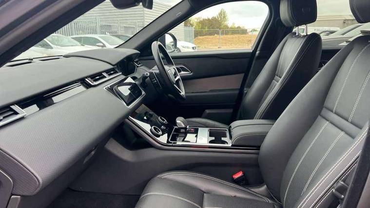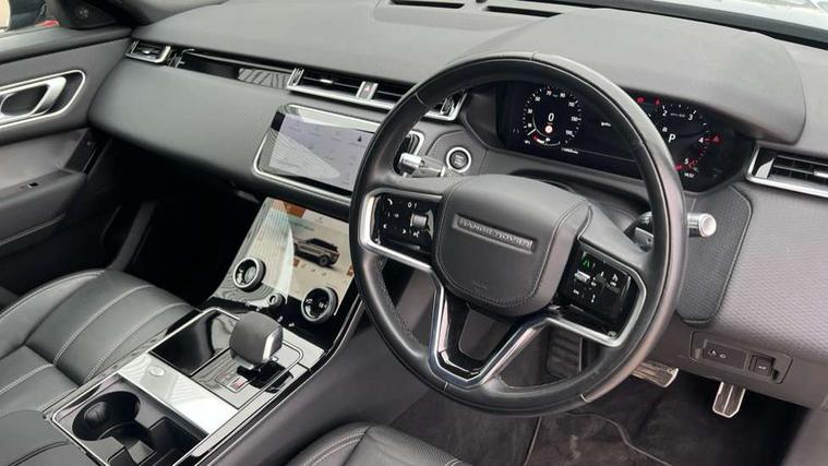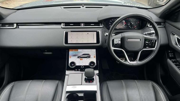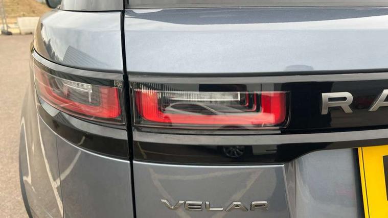 10" deployable touchscreen, Android Auto, Apple car play, Blind spot assist, Bluetooth connectivity, Brake pad wear indicator warning light, Driver condition monitor, eCall emergency call system, InControl remote, Land Rover InControl apps, Lane keep assist, Pivi pro with connected navigation, Push button start, Rear traffic monitor, Service indicator, Speed proportional electronic power assisted steering (EPAS), Traffic sign recognition with adaptive speed limiter, Trip computer, Voice control system, 8 speed automatic transmission, All terrain progress control, Open differential with torque vectoring by braking, Single speed transfer box, Digital Audio Broadcast radio-DAB, Steering wheel mounted controls, Acoustic laminated windscreen, Adaptive front lighting system, Auto dimming interior rear view mirror, Automatic headlamp levelling, Automatic headlights, Body coloured bumpers, Boot protection plate, Electric heated/power fold door mirrors with approach lights and auto dimming driver side, Electric windows with one touch open/close and anti trap, Flush deployable exterior door handles, Follow me home headlights, Heated rear window with timer, Heated washer jets, Heated windscreen, LED 3rd brake light, Metal load space scuff plates, No badge - Removes engine badge, Rain sensor windscreen wipers, Rear animated directional indicators, Rear fog lights, Rear side wing doors, Rear wash/wipe, Tailgate/boot lid spoiler, Trailer stability assist, Velar and R-dynamic badge, 3 seat bench in 2nd row, Ambient lighting, Bright metal pedals, Driver/passenger sunvisors with illuminated vanity mirrors, Isofix system on outer rear seats, Loadspace cover, Overhead lighting console, Overhead stowage for sunglasses, Passive front headrests, Rear air vents, Rear centre headrest, Satin chrome gearshift paddles, Single front passenger seat, Standard interior, Twin front cupholders, Twin sliding front centre armrest, Online pack with data plan - Velar, 355mm front brakes and 325mm rear brakes, 3x3 point rear seatbelts, Anti-lock braking system (ABS), Cornering brake control, Curtain airbags, Customer configurable autolock, Door side intrusion beams, Driver airbag, DSC - Dynamic Stability Control, Electronic brake force distribution, Electronic parking brake, Electronic traction control, Emergency brake assist, Emergency braking, Front and rear seatbelt reminder, Hill descent control, Hill launch assist, Low traction launch, Passenger airbag, Power operated child locks, Rear airbags, Roll stability control, Side airbags, Tyre pressure monitoring system, Unpainted brake calipers, Global lock and unlock switch on driver door, Immobiliser, Intrusion sensor, Keyless entry, Lock only switch on front passenger door, Locking wheel nuts, Perimetric alarm, Remote central locking,
