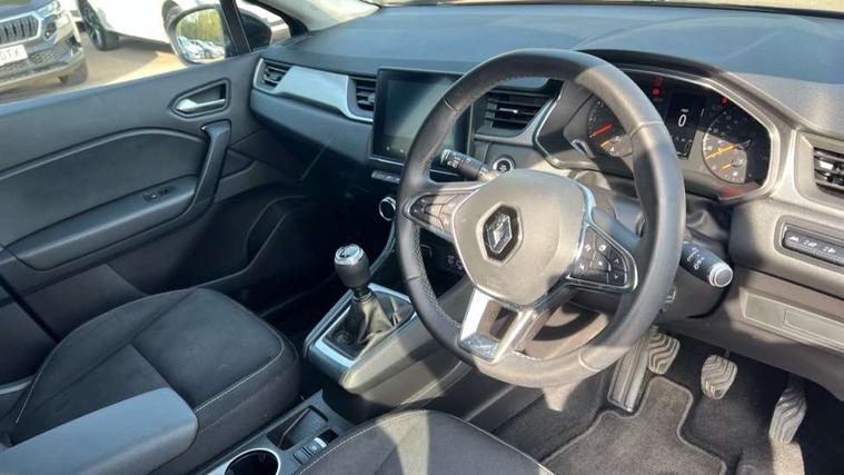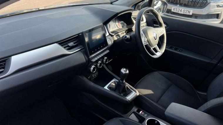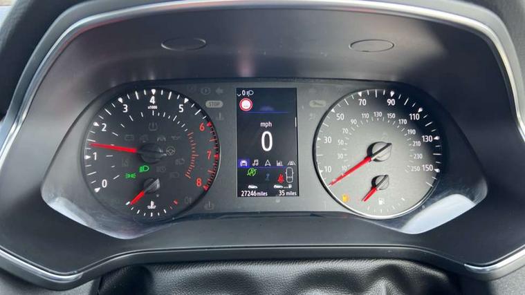 4.2" TFT Driver information display, Cruise control + speed limiter, eCall emergency call system, Eco mode, Gear change indicator, Lane departure warning system, Lane keep assist, Renault automatic emergency assist, Traffic sign recognition, Trip computer, Variable assistance power steering, EasyLink Nav 7" touchscreen, 4x20W amp, FM DAB, sound auditorium, 2xUSB, 1xJack, Bluetooth, smartphone integration plus, Apple carplay/Android auto, Automatic front wipers with rain sensors, Automatic headlights, Body colour door handles, Body coloured bumpers, Body coloured door mirrors, Electric adjustable/heated/folding door mirrors, Electric front windows + one touch + anti-pinch, Electric rear windows, Extra tinted glass in rear windows and tailgate, Full LED front and rear headlamps integrating daytime running lights at the front and rear, Gloss black side door protection with chrome effect, LED front fog lights, Rear fog lights, Rear wiper, Roof bars, Variable speed on front windscreen wipers, 12V Accessory socket, 3 rear headrests, 5.2L front glovebox, 60/40 split folding rear seat bench, Automatic climate control with one touch demist function, Centre console storage tray, Cloth upholstery, Front head restraints, Heating system with pollen filter, Height adjustable driver's seat, Height/reach adjust steering wheel, ISOFIX child seat fixing points on rear outermost seats, Middle console with armrest and storage, Rear air vents, Synthetic leather steering wheel, 3 rear seatbelts, ABS+EBA, AEBS, Distance warning alert, Driver and front passenger, side, head and curtain airbags, Driver height adjustable seat belt, Electric parking brake, Electronic stability control, Front and rear no seatbelt warning sound, Front dash warning indicator in case of heavy braking, Front driver and passenger side airbag deactivation, Hill start assist, Rear door and window child locking function for rear door, Tyre pressure warning light, Anti drill door locks and locking fuel cap, Deadlocking system, Hands free keycard with push button and start/stop function, RAID (Renault Anti-Intruder Device) automatic door locking, Remote central locking with thatcham approved immobiliser, Black soft touch dashboard with black gloss air vent surrounds,