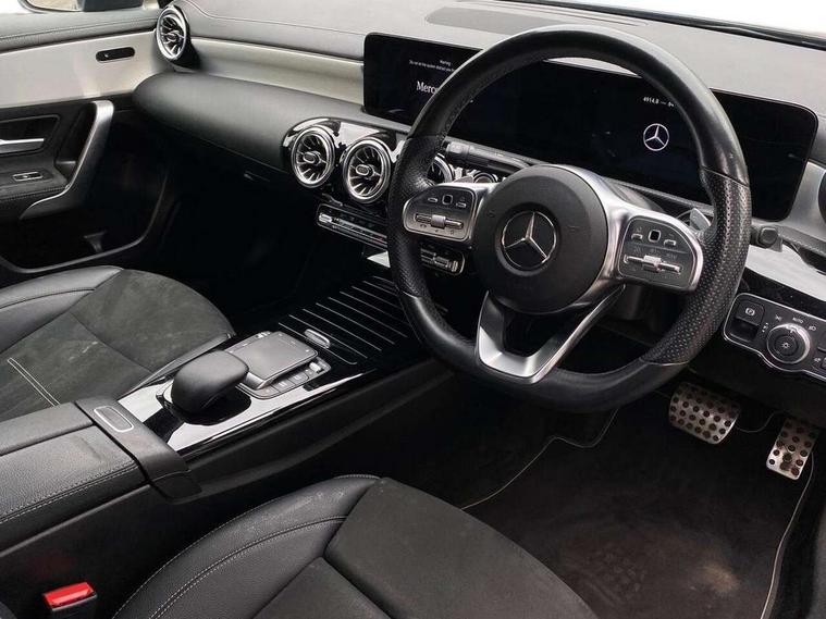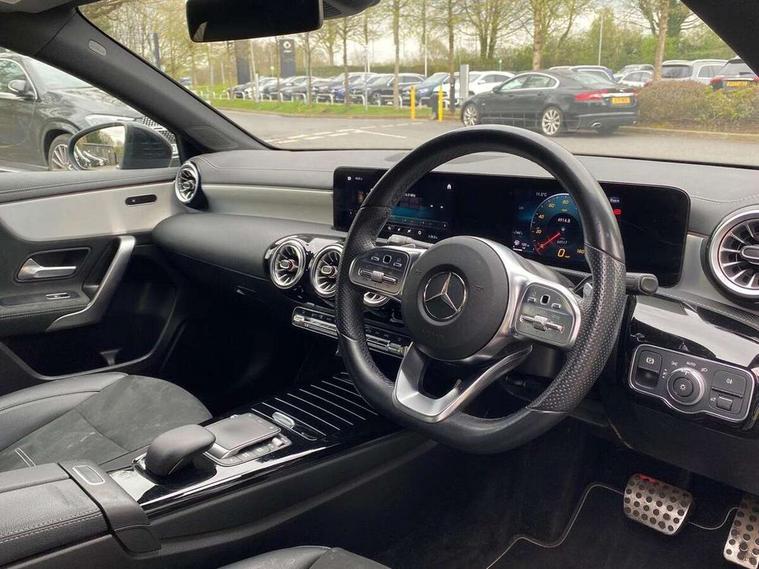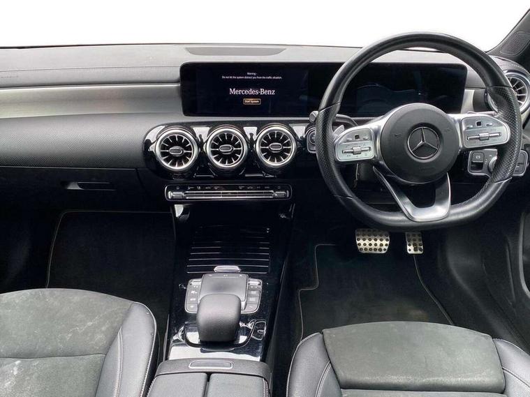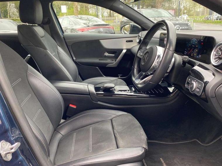 10.25" media display, 180 degree rear view camera with parking guidelines, 7" colour screen in instrument panel, Active parking assist with visual and audible warning of detected obstacles, Attention assist, Brake pad wear indicator warning light, Car wash mode, Cruise control + speed limiter, Direct steering, Dual bluetooth interfaces, DYNAMIC SELECT with a choice of driving modes (ECO, Comfort, Sport and Individual), ECO start/stop function, Fluid level warning indicator for fuel, oil, coolant and washer fluid, Hard-disk navigation, Hey Mercedes Voice activation, Lamp failure indicator, Lane keeping system, Mercedes me connect including emergency call system, accident recovery, breakdown and maintenance management, Mercedes me remote services, Outside temperature gauge, Owners manual in English, Pre-installation for private car sharing, Preinstallation for Mercedes Benz link, Service indicator (ASSYST), Smartphone integration with Apple CarPlay and Android auto, Speed sensitive power steering, Trip computer, Ultrasonic sensors positioned in the front and rear bumpers, Lowered comfort suspension, Rear axle torsion beam, 2 USB ports (type C) in rear stowage compartment and one in front of center console, 6 speakers, DAB Digital radio, MBUX multimedia system with DAB digital radio and touchpad including satellite navigation, Mercedes-Benz sound system - 100W, 4 Electric Front and Rear windows, Adaptive brake lights, AMG bodystyling - Front apron with splitter in chrome, rear apron with chrome trim and chrome visible trim elements in tailpipe, Automatic headlights, Black weather strip, Body colour bumpers, Body colour door handles, Body colour side skirt, Body coloured door mirrors, Electric adjustable and heated door mirrors with integrated LED side indicators, Exclusive diamond radiator grille, Exhaust system - Twin visible tailpipes in polished stainless steel, Headlamp assist automatic headlamp activation, Heated glass rear windscreen + timer control, High gloss black beltline, LED high performance headlamps with integrated LED daytime running lights, LED tail lamp, Privacy glass, Radio aerial, Rain sensing windscreen wipers with two sensitivity settings, Rear boot, Rear fog lights, Rear side wing doors, Third brake light featuring LED technology, Window line trim strip in high gloss black, 3 seat bench in 2nd row, 3 Spoke flat bottom leather multi function steering wheel with perforated leather in grip area, 40:20:40 split folding rear seats, Artico man-made leather/Microfibre Dinamica upholstery with contrast stitching in light grey, Auto Mercedes-Benz child seat recognition sensor, Black air vents with surround in silver chrome, Black roof lining, Brushed stainless steel sports pedals with rubber studs, Controller on centre console with chrome surround, Floor mats with black top stitching and embroidered edition logo and piping in light grey, Front centre armrest with storage compartment, Front door sills with Mercedes Benz lettering, Front seat backs luggage nets, Front seat cushion length adjustment, Front sports seats with adjustable head restraints, Galvanished gear shift paddles on steering wheel, Heated front seats, Height/reach adjustable steering column, Interior lighting - 64 colour Ambient lighting, Interior mirror with reading lamps in black and frameless, Manual height adjustable front seats, Rear head restraints, Seat occupancy sensor for front passenger seat, Single front passenger seat, Stowage compartment in centre console with retractable cover, Sunvisors with illuminated vanity mirrors, Touchpad on center console, Twin front cupholders, Two zone thermotronic luxury automatic climate control, Light and sight pack - A Class, Mirror package - A Class, Night pack - A Class Saloon/Hatchback, Seat comfort pack - A Class, 3 rear 3 point seatbelts, ABS with Brake Assist, Active bonnet, Active brake assist includes forward collision warning system with autonomous braking, Adaptive brake assist with hold function and hill start assist, Childproof locks manually operated for rear doors and electrically operated for rear power windows, Crash responsive emergency lighting, Driver and passenger head and side airbags, Drivers knee airbag, Dual stage driver/passenger airbags, Electronic parking brake, ESP curve dynamic assist, ESP with ASR, Front and rear seatbelt reminder, Front brake callipers with Mercedes Benz lettering, ISOFIX and top tether child seat fixing points in two outer rear seats, Tyre pressure monitoring system, Warning triangle and first aid kit, Window airbags, Alarm system/interior protection/immobiliser, Keyless Go, Remote central locking and crash sensor with emergency opening function, Urban guard vehicle protection system with immobiliser and interior protection, Black seatbelts, Matrix look light longitudinal grain aluminium trim element, 18" AMG 5 twin spoke light alloy wheels aerodynamically optimised painted in black with highsheen finish, Summer tyres, Tirefit sealant kit,