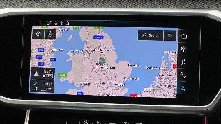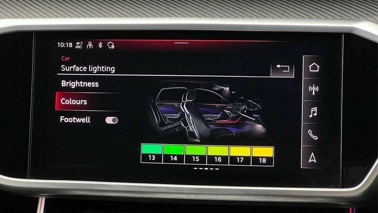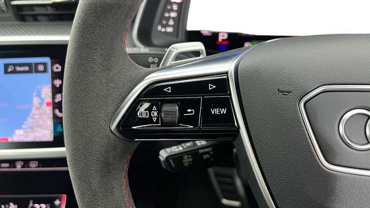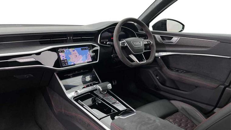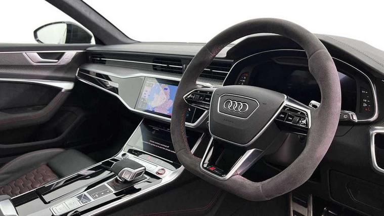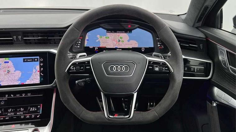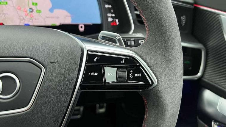Audi connect safety and service (e-call), Audi connect with Amazon Alexa Integration, Audi drive select with 2 configurable RS modes, Audi smartphone interface includes wireless Apple carplay/Android Auto, Audi virtual cockpit plus with RS specific design and 12.3" display with additional graphic display options, Automatic start/stop system, Bluetooth interface, Dynamic all wheel steering, Head up Display, Lane departure warning system, MMI navigation with MMI touch + twin touch screens 10.1" and 8.6" with haptic and acoustic feedback, Night vision assistant, Operating buttons in black, glass look with haptic feedback including extended aluminium look, Power door closure, Power operated tailgate, Service interval indicator, Surround view camera system, Voice control system, 48V Mild hybrid technology, 73 litre fuel tank, Quattro sports differential, RS Sports suspension plus with dynamic ride control, 2 USB-C ports with charging functionality in the rear, Audi music interface, Bang & Olufsen 3D Premium Sound System, DAB Digital radio, 3rd brake light, Adaptive windscreen wipers with integrated washer jets, Black window trims, Electric front/rear windows, Electrically adjustable, heated and folding door mirrors with integrated LED indicators and kerb view function for passenger side, Frameless auto dimming interior rear view mirror, HD Matrix LED headlights with Audi laser light with dynamic light design and dynamic turn signal, Headlight washers, Heat insulating darkened glass in side and rear windows, LED daytime running lights, LED rear combination lamps with dynamic light design and dynamic turn signal, Panoramic glass sunroof, Privacy glass with rear/side windows and acoustic glazing side windows, Radiator grille in honeycomb structure, large front air inlets and rear diffuser in gloss black, Rain and light sensors, Rear side wing doors, Rear wiper, RS front bumper with air inlets on both side, RS rear spoiler in body colour, RS sports exhaust system with high gloss black oval tailpipe trims, 3 seat bench in 2nd row, 4 way electric lumbar support for driver and front passenger, 4 zone deluxe automatic climate control, Electric steering wheel adjustment, Electrically adjustable front seats with driver memory, Entry LED with RS Performance projection (Audi Beam) in front and rear, Front and rear headrests, Front centre armrest, Front seat ventilation, Heated front and rear seats, Illuminated front and rear door sill trims with aluminium inlays and RS6 logo, ISOFIX and Top Tether child seat mounting for the outer rear seats, ISOFIX child seat mounting and Top Tether with front passenger airbag deactivation, RS sports seat plus, Single passenger seat, Stainless steel pedals and foot rest, Valcona leather upholstery with perforated honeycomb and coloured RS logo, Air quality pack - RS6, Ambient lighting pack plus - RS6, City assist pack - RS6 Performance/carbon/vorsprung, Park assist pack with park assist plus - RS6, Storage pack - RS6, Tour pack - RS6 Performance/carbon/vorsprung, 3 point rear seatbelts, Airbags - Front side, front and rear including head, Direct tyre pressure monitoring system, EBD - Electronic brakeforce distribution, Electromechanical parking brake, Electronic Stability Control (ESC) including ABS, ASR and EDL, Extended pedestrian protection measures, Manual child lock in rear doors, Rear side airbags, Warning triangle and first aid kit, Anti theft alarm with tow away protection, Immobiliser, Keyless Go, Remote central locking, Tyre repair kit,