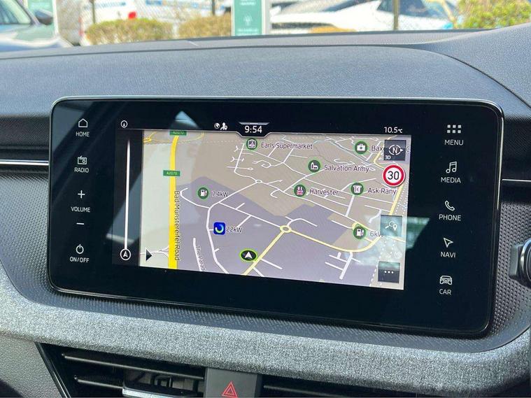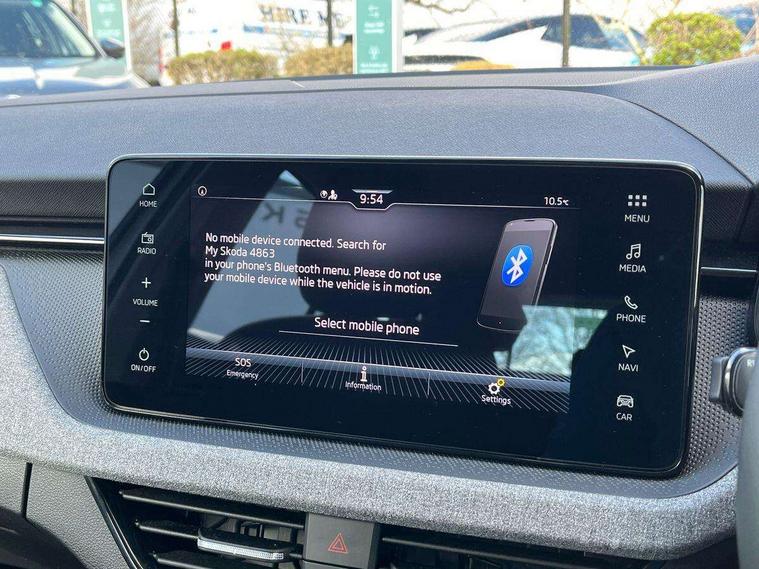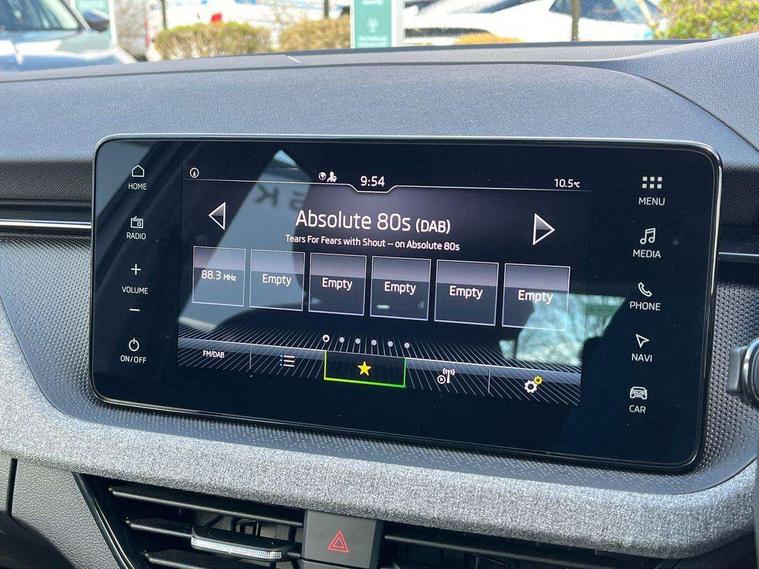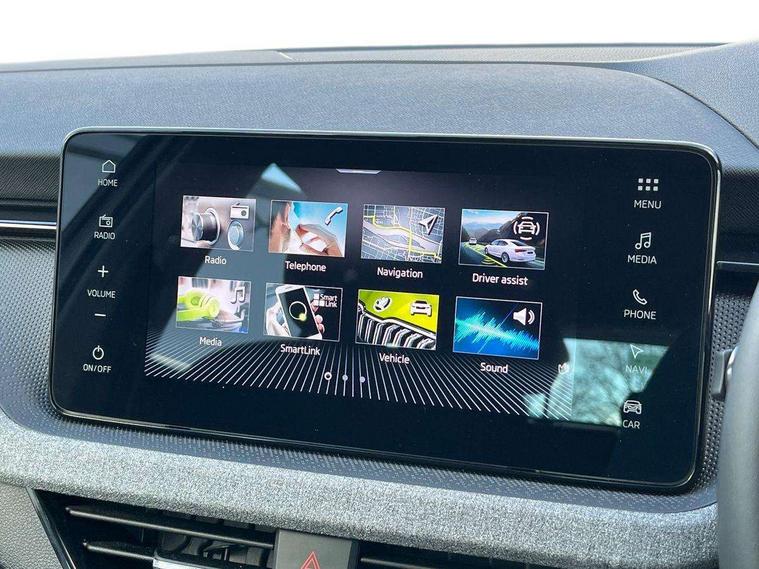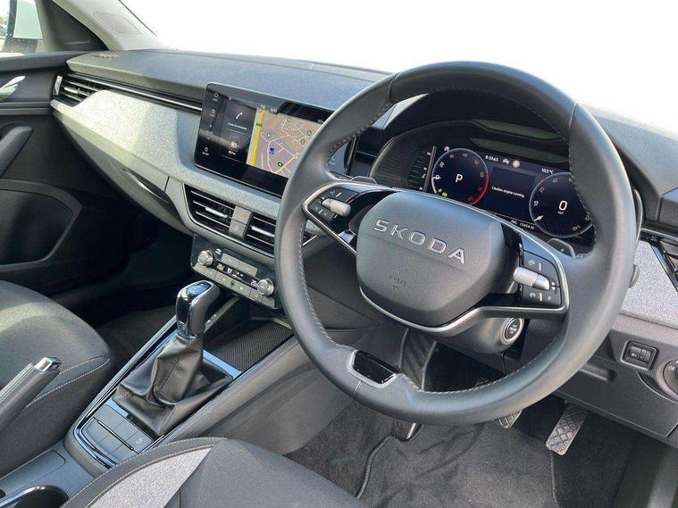 Advanced driver attention and drowsiness monitor, Bluetooth, e-Call (emergency call), Front assist system, PAS, Rear parking sensors, Rear view camera, Speed limiter, Tailgate, Traffic sign recognition, Virtual Cockpit - 10.25" digital display, Voice control system, Wireless smartlink, 4 USB C ports, 8 Speakers, 9.2" Skoda navigation display, DAB radio, Auto dimming rear view mirror, Automatic headlamp activation with Coming home and Leaving home feature, Automatic high/low beam, Body colour bumpers, Body colour door mirrors and handles, Chrome moulding around grille, Front and rear electric windows, Full LED headlights, Heated rear window, LED 3rd brake light, LED brake lights, LED daytime running lights, LED front turning lights, LED high beam, LED low beam, LED taillights, Rear LED fog light, Rear side wing doors, Rear wiper, Tinted windows, Unique dark chrome design logo on alloy wheels, 12V socket in luggage compartment, 3 seat bench in 2nd row, Black / Grey armrest stitching, Black hotstamping, Cargo elements, Chrome inner door handles, Door inserts in satin black, Driver and passenger sun visors with vanity mirror, Dual zone climate control, Front and rear roof lights, Front centre armrest, Front head restraints, Glasses storage in roof liner, Height adjustable driver seat, Height adjustable passenger seat, Ice scraper, Illuminated glove compartment, Inner circulation control with pollen filter, ISOFIX for front passenger seat, Isofix preparation for back seats, Leather gearknob and handbrake lever, Loft cloth upholstery, Luggage net under rear parcel shelf, Manual lumbar support for front seats, Net package and top tether hooks in boot space, Pearl grey ceiling, Pocket on the back of both front seats, incl. mobile phone pockets, Single front passenger seat, Skoda lettering on steering wheel, Textile floor mats, Third rear headrest, Ticket holder, Top tether for front passenger seat, Umbrella in driver's door, 3x3 point rear seatbelts, ABS, Child locks, Curtain airbags and front side airbags, Disc brakes, Driver and front passenger airbags, ESP, Hill hold control, Manual leather parking brake, One tone horn, Passenger airbag switch off function, Seatbelt reminder for driver and front passenger, Tyre pressure monitoring system, Anti theft alarm system with interior monitoring, backup horn and towing protection, Anti-theft wheel bolts, Remote central locking with 2 remote folding keys, SAFE function for remote central locking, Decord pad, door inserts Kota uni,