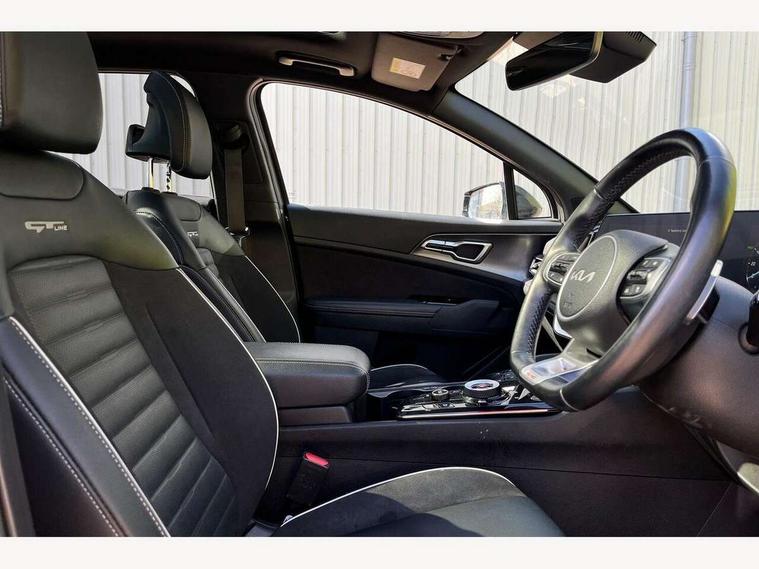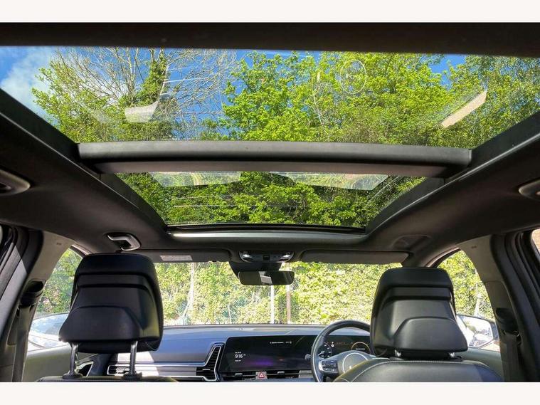 12.3" Display with navigation, 12.3" supervision colour cluster display, 360 degree around view monitor, Apple car play/Android Auto with voice control, Blind spot collision avoidance assist, Blind spot view monitor, Drive mode selector, E-call, Forward collision avoidance assist (FCA) - city/pedestrian/cyclist/junction covering, Front and rear parking sensors, Highway Driving Assist (HDA), Intelligent speed limit assist, Kia Connect (UVO), Lane Following Assist (LFA), Lane keep assist, Low washer fluid warning, Parking collision avoidance assist (PCA), Remote smart parking assist, Reversing camera system integrated into centre fascia screen, Smart cruise control with stop and go functionality, Smart power tailgate, Speed sensitive power steering, Trip computer, Windscreen washer level indicator, Wireless Smartphone charger, Intelligent Stop and Go, Bluetooth audio streaming, DAB Radio with MP3, Harman Kardon premium sound system, Rear USB port, Steering wheel mounted audio controls, USB C type charging ports on centre console, USB C type charging ports on side of front seats, USB port for connection of a media device, All round electric windows with drivers and front passenger auto up/down function, Automatic headlight control system, Automatic window defogger, Backlite glass heated with timer, Body colour and black bumper with silver accents, Body colour exterior door handles, Body colour radiator upper garnish and door garnish, Dual LED adaptive headlamps, Electric panoramic glass sunroof (Electric one touch with safety function), Electrically adjustable/heated/folding door mirrors with LED indicators, Front and rear chrome skid plates, Gloss black door mirrors, Gloss black radiator grille, Gloss black side sill and wheel arch body mouldings, Glossy black roof rack, High beam assist, Interior electrochromic mirror, LED daytime running lights, LED front fog lamps, LED High mounted stop light, LED rear combination lamp, Rain sensing wipers with aero blades, Rear fog lamp, Rear privacy glass, Rear side wing doors, Rear spoiler, Rear wiper, Satin finished beltline, Silver coloured inserts to bumpers, Tinted rear glass, Trailer stability assist, 10 way driver/8 way passenger electrically power adjustable seats, 12V power socket in front centre fascia and luggage compartment, 3 seat bench in 2nd row, 3 x passenger assist grips, 40/20/40 split folding rear seat, All-round height adjustable headrests, Ambient lighting, Black headlining, Centre console storage box, Cupholders in rear armrest, D-Shaped sports leather steering wheel and perforated inserts with GT-Line logo, Door courtesy lamps, Drink holder at centre armrest, Driver and front passenger side sunvisors with illuminated vanity mirrors, Driver seat memory function, Drivers seat power lumbar support, Front and rear door storage, Front seat and rear pockets, Front/rear centre armrests, Gear shift indicator, Glovebox illumination, Heated front and outer rear seats, Heated steering wheel, Interior door lock/unlock function, ISOFIX Child seat top tethers and anchor fixings outer rear seats, LED interior personal lamp, LED lighting in overhead console, Luggage area LED light, Luggage area load cover, Luggage net with hooks, Metal paint interior door handles, Paddle shift controls, Rear cabin light, Rear coat hooks, Single front passenger seat, Sports pedals, Suede leather upholstery, Three zone climate control, Tilt/telescopic adjustable steering wheel, Ventilated front seats, Ventilation ducts to rear compartment, Active front headrests, All round 3-point seatbelts, Anti-lock braking system (ABS), Dual front side airbags, Dual horn, Electronic parking brake, Electronic stability control with downhill brake control, Front passenger airbag cut-off switch, Front seatbelt pretensioners + load limiters, Height adjustable front seatbelts, Hill start assist control (HAC), Impact sensing auto door unlocking, Multi collision brake assist, Rear door child safety locks, Rear seat alert system, Traction control, Twin curtain airbags, Twin front airbags, Tyre pressure monitoring system, Advanced anti-theft system including immobiliser and alarm, Door deadlocks, Engine Start/Stop Button with Smart Entry System, Locking wheel nuts, Speed sensitive auto door locking, Visible vehicle identification number, Aluminium pattern finish centre fascia and door garnish, 18" GT-Line alloy wheels, Michelin tyres, Tyre mobility kit,