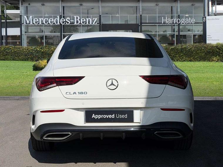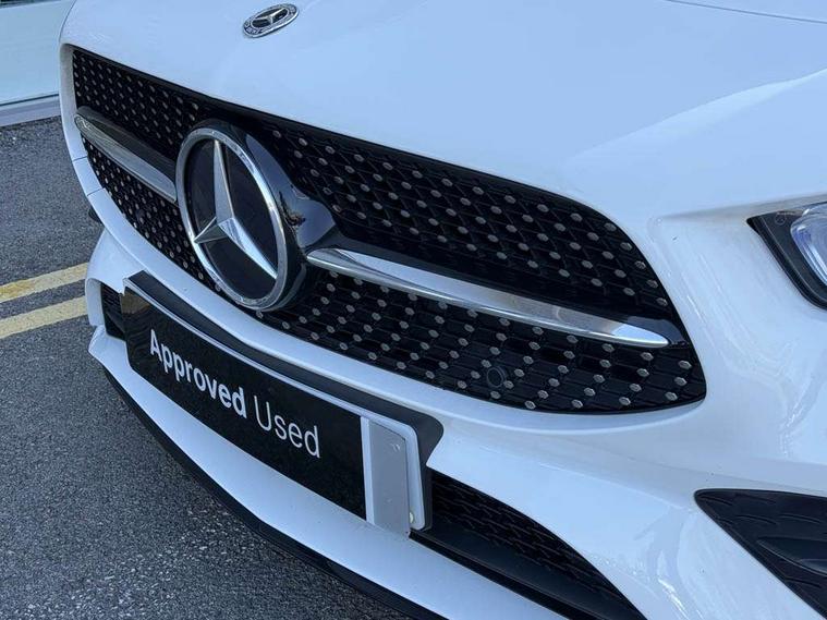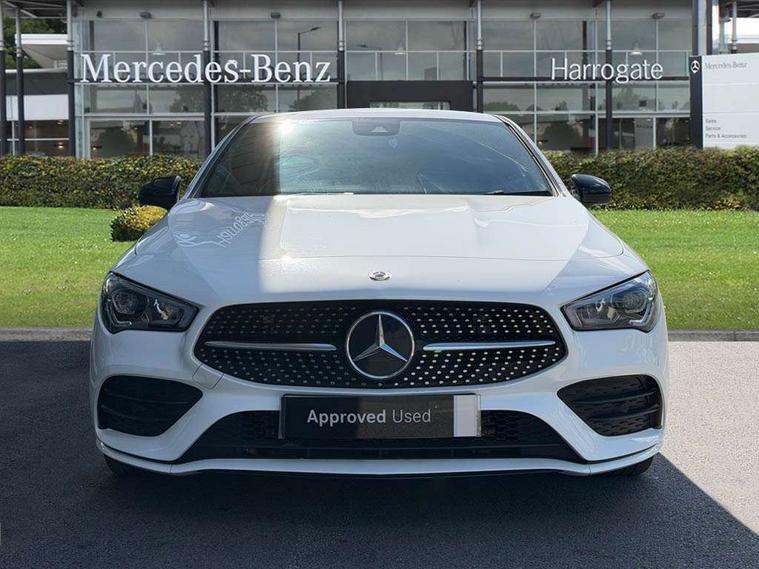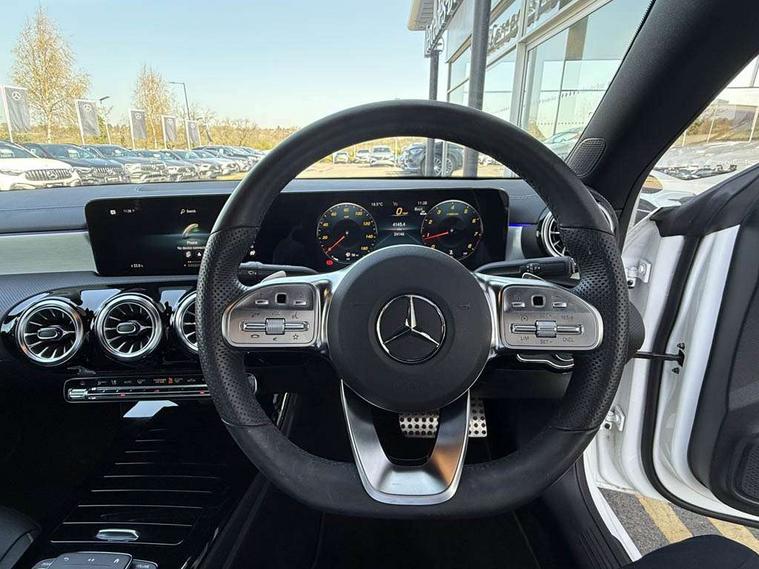 10.25 inch Instrument display with digital cockpit, 10.25 inch touchscreen central media display, Active lane keeping assist, Attention assist - Monitors steering behaviour and long journey fatigue, Bluetooth connection, Car wash mode, Cruise control with limiter, Direct steer system with speed sensitive power steering, DYNAMIC SELECT with a choice of driving modes (ECO, Comfort, Sport and Individual), ECO start/stop function, Fluid level warning indicator for fuel, oil, coolant and washer fluid, Hard-disk navigation, Hey Mercedes Voice activation, Lamp failure indicator, Mercedes me connect including emergency call system, accident recovery, breakdown and maintenance management, Mercedes me remote services, Outside temperature gauge, Owners manual and service booklet in English, Pre-installation of private car share, Preinstallation for Mercedes Benz link, Radio aerial integrated into front and rear windshields, Service indicator (ASSYST), Smartphone integration with Apple CarPlay and Android auto, Speed limit assist, Trip computer in multifunction display with current consumption indicator, Lowered comfort suspension, Rear axle multi-link, DAB digital radio tuner, MBUX multimedia system, Mercedes Benz sound system (100 W) with 6 speakers, USB (type C) ports (2) in stowage compartment and 1 in front of centre console, Adaptive brake lights, AMG body styling with AMG front apron and rear apron and visible exhaust tailpipe in chrome trim elements, AMG bodystyling side skirts, Body colour bumpers, Body colour door handles, Chrome beltline strips, Diamond radiator grille pins in chrome, Electric windows, Electrically adjustable and heated door mirrors with integrated LED indicators, Exhaust system with 2 Visible tailpipe trim elements and rear apron with trim in chrome, Headlamp assist automatic headlamp activation, Heated glass rear windscreen + timer control, High level LED third brake light, Interior mirror with black reading lamps and frameless, LED high performance headlamps with integrated LED daytime running lights, LED tail lamp, Privacy glass with dark tinting on rear side windows and rear window, Rain sensing windscreen wipers with two sensitivity settings, Rear boot, Rear fog lamp, Rear side wing doors, Variable front intermittent wipers, Window line trim strip in chrome, 3 seat bench in 2nd row, 3 spoke flattened bottom nappa leather multifunction steering wheel with perforated leather in grip area, 40:20:40 split folding rear seat backrests, Air conditioning - Two zone thermotronic luxury automatic climate control with display, Air vents with surround in silver chrome, Artico man-made leather upholstery, Automatic child seat recognition sensor, Black roof lining, Brushed stainless steel sports pedals with rubber studs, Floor mats with stitched AMG lettering, Front centre armrest with stowage, Front door sills with Mercedes Benz lettering, Galvanished gear shift paddles on steering wheel, Heated front seats, Illuminated glove compartment stowage, Interior lighting - 64 colour Ambient lighting, Luggage net on driver/front passenger seat backrest, Manually adjustable front seats, Manually height and reach adjustable steering column, Rear head restraints, Single front passenger seat, Sport seats with fixed head restraints, Stowage compartment in centre console with retractable cover, Sunvisors with illuminated vanity mirrors, Touchpad on center console, Twin front cupholders, Two outer rear seat isofix and top tether child seat fixing points, Light and sight pack - CLA, Mirror pack - CLA, Night package - CLA, Parking package - CLA, Seat comfort pack - CLA, Active bonnet pedestrain safety measure which detects an impact and raises bonnet by 65mm, Active brake assist includes forward collision warning system with autonomous braking, Adaptive brake assist with hold function and hill start assist, Anti lock braking system (ABS) with brake assist, Black seat belts, Bonnet with power domes, Brake pad wear warning indicator, Childproof locks manually operated for rear doors and electrically operated for rear power windows, Crash responsive emergency lighting, Driver and front passenger head and sidebags, Driver and front passenger windowbags, Drivers knee airbag, Dual stage driver and front passenger airbags, Electric parking brake, Electronic stability programme with acceleration skid control, ESP curve dynamic assist, Front and rear seatbelt reminder, Front passenger seat occupancy sensor, Three point rear seat belts, Tyre pressure monitoring system, Warning triangle and first aid kit, Guard 360 degree guard vehicle protection system with immobiliser and interior protection, Keyless Go starting function, Remote central locking and crash sensor with emergency opening function, Light aluminium with longitudinal grain interior trim, 18" AMG 5 twin spoke light alloy wheels painted in black with high sheen finish, Summer tyres, Tirefit tyre sealant kit,
