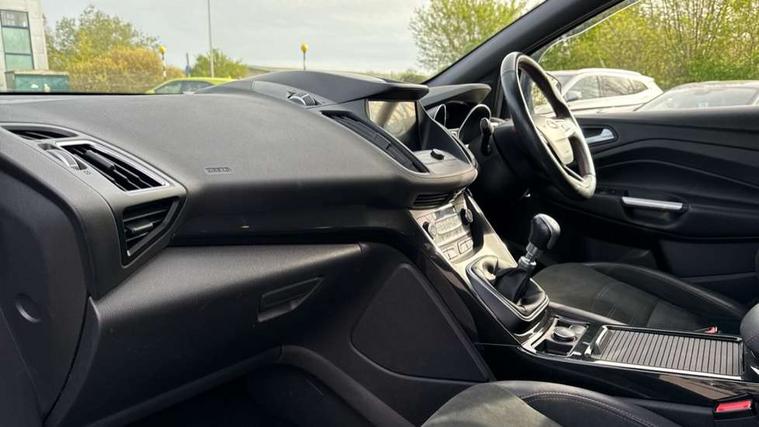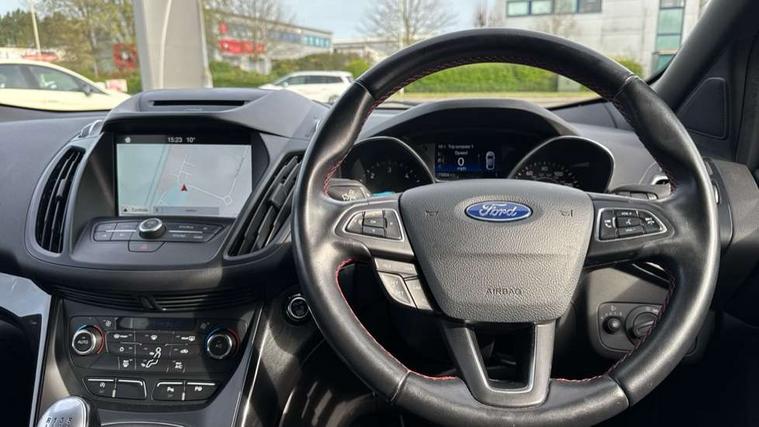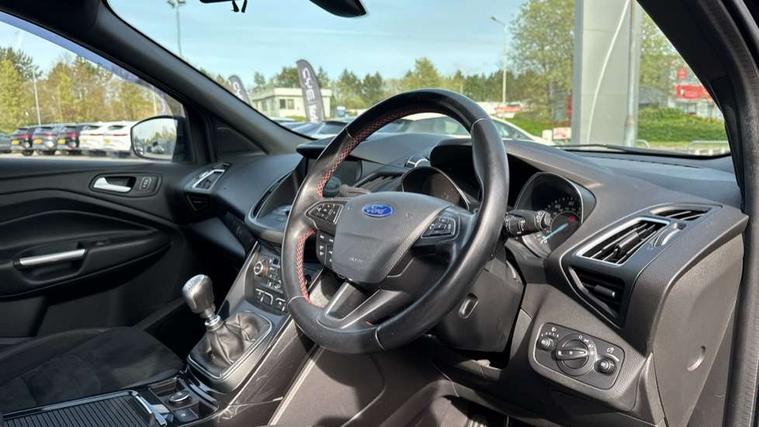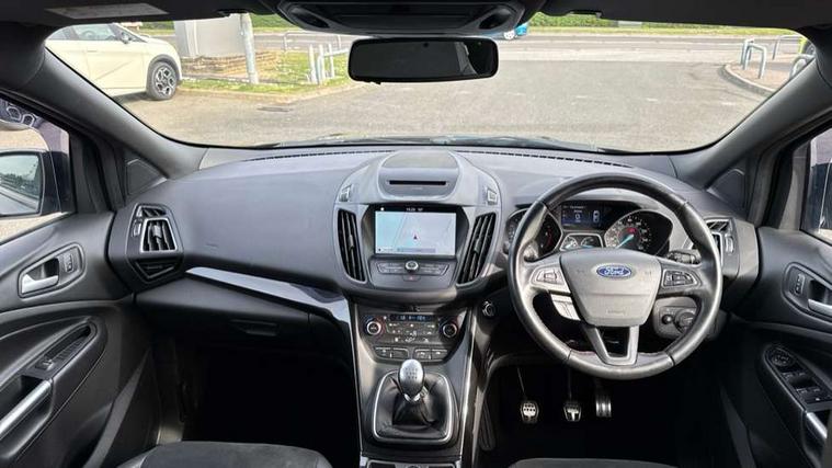 Enhanced active park assist including perpendicular parking pull out assist and flank guard, EPAS, Front parking sensor, Rear parking sensor, SYNC Emergency Assistance, Trip computer, Sports suspension, Auxiliary socket for external device, Remote audio controls on steering wheel, USB connection, Auto dimming rear view mirror, Automatic headlights, Black roof rails, Body colour bumpers, Body styling kit, Electric folding mirrors, Electrically heated door mirrors, Front scuff plate, LED daytime running lights, Power front and rear windows, Quickclear heated windscreen, Rain sensor windscreen wipers, Rear diffuser, Tailgate wash/wipe, Twin exhaust pipes, 60/40 split/folding rear back and cushion, Alloy Foot Pedals, Auxiliary power socket in luggage area, Centre console with stowage tray/bottle holder/CD stowage/front and rear 12V power point, Dark headlining, Dinamica/Leather Upholstery, Driver seat lumbar adjustment, Driver/passenger front seatback pockets, Driver/passenger seats fore/aft adjustment, Dual electronic automatic temperature control, Floor mats with red stitching, Folding rear centre armrest, Footwell courtesy lights front and rear, Front head restraints, Front overhead courtesy lights with theatre style dimming and delay, Front/rear reading lights, Isofix system on outer rear seats, Leather gearknob, Leather steering wheel with red stitching, Memory for drivers seat/door mirrors, Passenger lumbar support, Reach + rake adjustable steering column, Rear floor mats, Rear head restraints, Sports style front seats, Stowage unit in upper instrument panel, Tie down hooks, Tonneau cover, Variable intensity instrument illumination, 3 point seatbelts on all 3 rear seats, ABS/EBD, Driver and passenger airbags, Driver and passenger side airbags, Electric traction assist system, Electronic parking brake, ESP+EBA, Front and rear curtain airbags, Hill start assist, Intelligent Protection System (IPS), Tyre pressure monitoring system, Immobiliser, Keyless start, Locking wheel nuts, Remote central locking, Thatcham Cat.1 alarm, Mini steel spare wheel,