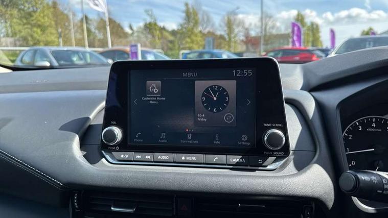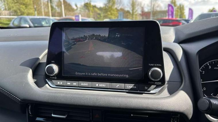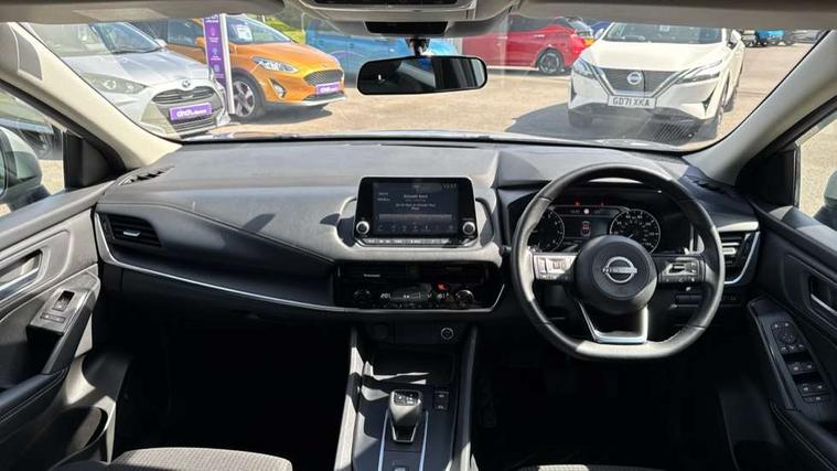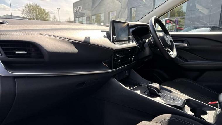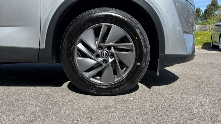 7" High definition full colour TFT screen combimeter, Android auto/Apple CarPlay (Wired), Blind spot warning, Drive modes (sport, normal, eco), Electric speed sensitive power steering, Emergency and breakdown call, Idle stop/start system, Intelligent Cruise control (ICC), Intelligent driver alert system, Intelligent forward collision warning, Intelligent lane intervention, Lane departure prevention, Lane departure warning system, Maximum speed limiter, Nissan connect 8" touchscreen infotainment system, Push button starter, Rear cross traffic alert, Rear parking sensors, Rear view camera, Traffic sign recognition with legal speed adjustment, Trip computer, 6 speakers, AM/FM audio system with DAB, Bluetooth audio streaming, Front USB connections (Type-A and Type-C), Auto dimming rear view mirror, Auto rear wiper when reversing, Automatic hazard signal with emergency stop signal, Body colour mirror caps, Body coloured door handles, Bodyside mouldings, Chrome side window finisher, Door handle with button, Electric auto folding door mirrors, Electrically adjustable and heated door mirrors with LED turn indicator, Follow me home headlights, High beam assist, Intelligent auto headlights, LED 3rd brake light, LED daytime running lights, LED Headlights, LED rear lights, One touch front and rear electric windows with remote opening and closing, Partially body coloured bumpers, Rear reversing light (bulb lighting), Rear roof spoiler, Rear side wing doors, Shark fin antenna, Splash free rain sensing wipers, Three blink turn signal, 12v power socket in dashboard and luggage, 2x Rear coat hooks, 3 bench rear seats in 2nd row, 3 rear headrests, 4 folding assist grip, 6-way manually adjustable driver's seat, 60/40 split folding rear seat bench, Centre console storage tray, Chrome interior door handles, Cloth monoform upholstery, Driver and front passenger sunvisors with illuminated vanity mirrors, Dual zone automatic climate control with pollen filter, Electrically adjustable lumbar support for driver, Front and rear door storage, Front centre console and armrest, Front cupholders x 2, Front door with bottle holders, Glovebox with light, Hard trunk cover, Height adjustable driver's seat, Height adjustable front headrests, Height adjustable passenger seat, Luggage space lighting, Manually adjustable passenger (slide recline + lifter), Multifunction steering wheel, Passenger seat back pocket, Rear armrest with 2 cupholders, Rear door bottle holders, Single front passenger seat, Steering wheel gearshift paddles, Steering wheel switches, Sunglasses holder, Tilt/telescopic adjustable steering wheel, Two rear isofix child seat anchorage points with top tether, 3x3 point rear seatbelt pretensioners + load limiters, ABS with EBD and brake assist, Active brake limited slip, Auto hold function, Child locks on rear doors, Curtain and front side, far side airbags, Driver and passenger airbags, Driver, passenger and 2nd row rear seat belt reminder, Electronic parking brake, Front seatbelt pretensioners + load limiters, Height adjustable front seatbelts, Hill start assist, Intelligent blind spot intervention, Intelligent front emergency braking with pedestrian, cyclist recognition and junction assist, Intelligent rear automatic braking, Tyre pressure monitoring system, Vehicle dynamic control, Capless fuel filler, Engine immobiliser, Intelligent Key, Remote central door locking with deadlocking, Thatcham Cat.1 alarm, Interior instrumental panel A finisher, 17" Alloy wheels, Tyre puncture repair kit,