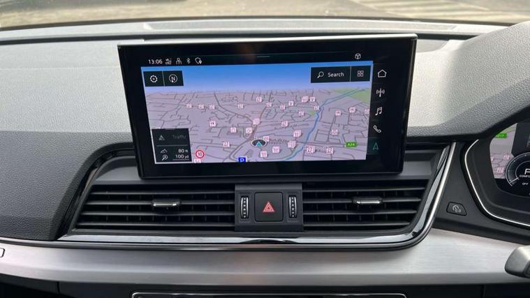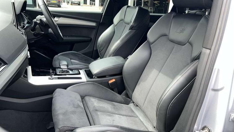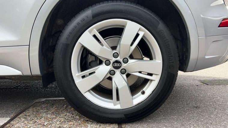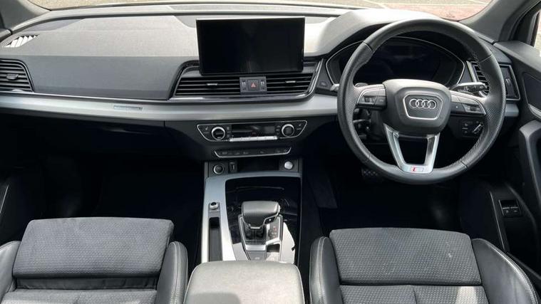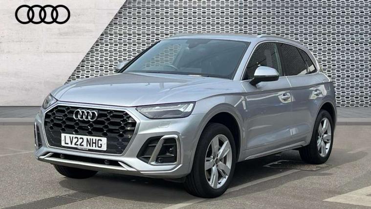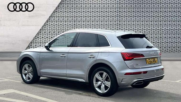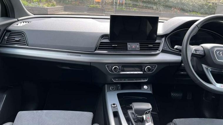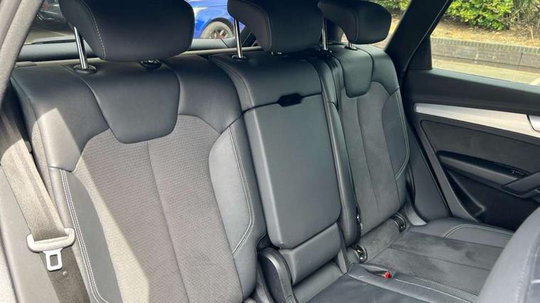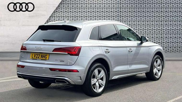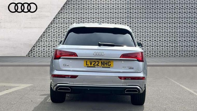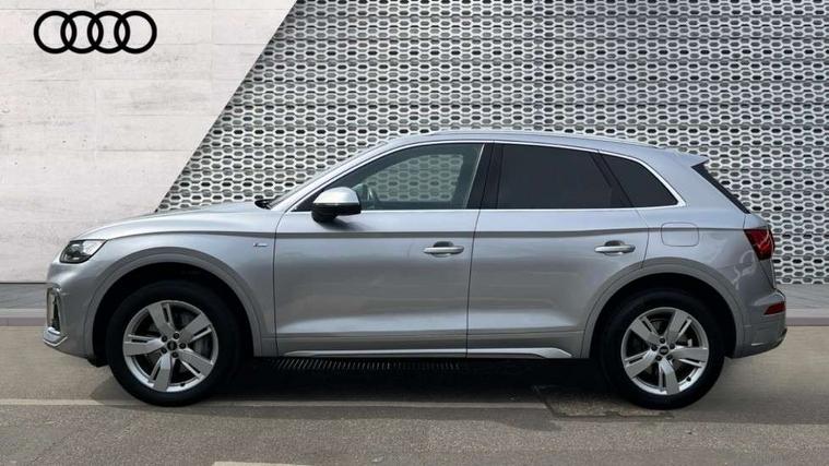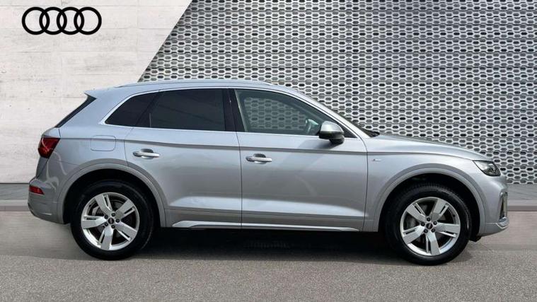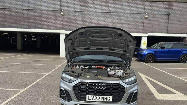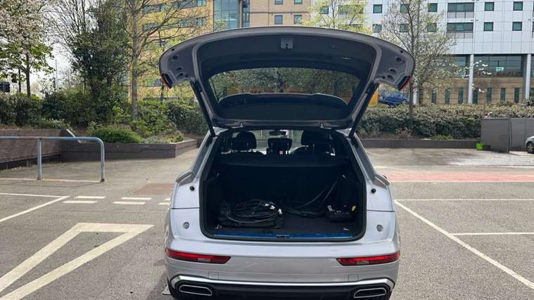 Audi connect safety and service (e-call), Audi connect with Amazon Alexa Integration, Audi drive select, Audi virtual cockpit plus with 12.3" screen and three different layout designs, Audi wireless smartphone interface, Automatic start-stop system with coasting functionality and efficiency programme, Bluetooth interface, Electro - mechanical power assisted steering, MMI navigation plus with 10.1" touch screen, Power tailgate, Reversing camera, Service interval indicator, Voice control system with Audi hotword activation "Hey Audi", 3 pin 10 amp domestic charging cable, 7.4 kW onboard charger, Dynamic suspension, Quattro on demand, Type 2 mode 3 22kW 32 amp charging cable, Type 2 socket for AC charging, 2 x USB charging port with aux input socket, DAB Digital radio, 3rd brake light, Acoustic windscreen, Aluminium roof rails, Audi matrix LED headlights with dynamic front and rear indicators, Auto dimming door mirrors, Auto dimming rear view mirror, Automatic headlights and windscreen wipers, Body colour bumpers, Body colour door mirrors, Body colour rear diffuser with matt aluminium silver surrounds, Body colour underbody protection, Chrome plated exhaust trims, Daytime running lights, Door sills in Selenite silver, Electric adjustable/heated/folding door mirrors, Front air inlet surrounds in aluminium, Front and rear electric windows, Front radiator grille in honeycomb design, Headlight washers, Lower bumpers painted in contrast Manhattan grey, Rear chrome trim strip below lights, Rear privacy glass and rear side windows, Rear side wing doors, Rear wiper, Roof bars, S Line badges on the front wings, S Line front and rear bumpers, S Line rear spoiler, S Line side skirts, 3 rear headrests, 40:20:40 split folding 3 rear bench seat in 2nd row with rear centre armrest, Black cloth headlining, Comfort front centre armrest, Contrast stitching on seats, steering wheel and gear lever gaiter, Deluxe 3 zone electronic climate control, Front/rear floor mats, Gear lever in black leather, Heated front seats, Height adjustable front head restraints, Height/reach adjustable steering column, Illuminated door sill trims with S logo, ISOFIX child seat mounting and top tether, Manual seat adjustment with 4-way electric lumbar support, Rear seat bench plus, Single front passenger seat, Sunvisors with vanity mirrors, Trunk roller cover, High gloss pack - Q5, LED interior light pack - Q5, 3 point seatbelts on all seats, 6 airbags - Driver, front passenger, curtain and side airbags, Electrically operated child locks on rear doors, Electromechanical parking brake, Electronic stabilisation control including ABS, ASR and EDL, Front passenger airbag deactivation, Hill descent control, Hill hold assist, Multi collision brake assist, Pop-up bonnet for pedestrian protection, Pre sense city, Seat belt force limiter, Seatbelt monitoring, Tyre pressure warning, Warning triangle and first aid kit, Anti theft alarm, Anti-theft wheel bolts, Keyless Go access/ignition system, Remote central locking, Matt brushed aluminium inlays, Tool kit, Tyre repair kit,