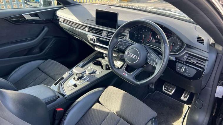 7" Colour driver information system, Audi connect, Audi drive select, Audi parking system plus with front and rear sensors, Audi smartphone interface, Automatic start-stop system with coasting functionality and efficiency programme, Bluetooth interface, Electric boot release, Electro-mechanical power steering, MMI Navigation, Service interval indicator, Voice control system, CD player, DAB Digital radio, Two SDXC card slots, Air inlets in titanium black with matt aluminium inlay, Auto dimming rear view mirror, Body colour bumpers, Chrome plated exhaust pipe, Electric adjustable heated door mirrors, Electric front windows, Front fog lights, High beam assistant, High gloss black door mirrors, Rain and light sensors, Rear diffuser in Twilight grey matt with honeycomb grille, S Line body styling, S line sill plates, S style high gloss black rear spoiler, Side and rear windows privacy glass, Titanium black frame and radiator grille, Titanium black front and rear air intakes, Titanium black window surround, Windscreen with acoustic glazing, 2 x USB charging port with aux input socket, 3 spoke flat bottom high multi-function leather steering wheel, 40/20/40 split folding 2 seater rear seat bench with rear centre armrest, Adjustable steering column, Black headlining, Black perforated leather gearknob, Centre console with cupholders, Contrast stitching on seats, steering wheel and gear lever gaiter, Deluxe 3 zone electronic climate control, Front centre armrest, Front head restraints, Front/rear floor mats, Gearshift paddles, Illuminated door sills, ISOFIX child seat mounting and top tether, Jack and tool kit, Luggage compartment mat, Rear headrests, S embossed logo on front sport seats, Stainless steel pedals and foot rest, Non Smokers pack, 6 airbags - Driver, front passenger, curtain and side airbags, Electromechanical parking brake, Electronic Stabilisation Control (ESC) including ABS, ASR and EDL, Front passenger airbag deactivation, Height adjustable front seatbelts, Hill hold function, Multi-Collision braking, Pop-up bonnet for pedestrian protection, Pre sense city, Seatbelt monitoring, Tyre pressure warning, Variable restraint system, Warning triangle and first aid kit, Anti theft alarm system, Anti theft wheel bolts, Immobiliser, Keyless Go, Remote central locking, Piano black finish inlay, 20" 5 arm rotor alloy design wheels with matt titanium finish, Tyre repair kit,