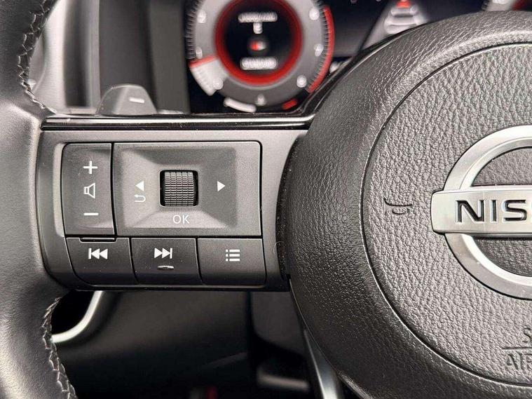 Android auto/Apple CarPlay (Wired), Blind spot warning, Drive modes (sport, normal, eco), Electric speed sensitive power steering, Emergency and breakdown call, Full Digital 12.3" TFT Digital Combimeter, Google maps services - search, weather, 3D maps and Google street view, Idle stop/start system, Intelligent around view monitor, Intelligent Cruise control (ICC), Intelligent driver alert system, Intelligent forward collision warning, Intelligent lane intervention, Lane departure prevention, Lane departure warning system, Maximum speed limiter, Moving object detection, Nissan connect 12.3 inch touchscreen infotainment system, Nissan connect navigation, Push button starter, Rear cross traffic alert, Rear parking sensors, Rear view camera, Remote control services - door locks, lights, horn and car locator, Telematics - notifications and connectivity services, TomTom live traffic services, Traffic sign recognition with legal speed adjustment, Trip computer, Virtual personal assistant and firmware over the air capability, Wireless apple carplay, 6 speakers, AM/FM audio system with DAB, Bluetooth audio streaming, Front USB connections (Type-A and Type-C), Rear USB charging only ports (Type-A and Type-C), Auto dimming rear view mirror, Auto rear wiper when reversing, Automatic hazard signal with emergency stop signal, Body colour mirror caps, Body coloured door handles, Bodyside mouldings, Chrome side window finisher, Door handle with button, Dusk sensor, Electric auto folding door mirrors, Electrically adjustable and heated door mirrors with LED turn indicator, Follow me home headlights, High beam assist, Intelligent auto headlights, LED daytime running lights, LED Headlights, LED rear lights, One touch front and rear electric windows with remote opening and closing, Partially body coloured bumpers, Privacy glass, Rear bumper with graphite insert, Rear reversing light (bulb lighting), Rear roof spoiler, Rear side wing doors, Rear styling plate, Shark fin antenna, Splash free rain sensing wipers, Super UV and infrared cut glass, Three blink turn signal, 12v power socket in dashboard and luggage, 2 way electrical driver lumbar adjustment, 2x Rear coat hooks, 3 bench rear seats in 2nd row, 3 rear headrests, 4 folding assist grip, 6 Luggage hooks - 4 on floor, 2 on side, 6-way manually adjustable driver's seat, 60/40 split folding rear seat bench, Ambient lighting around centre console, Centre console storage tray, Chrome interior door handles, Cloth monoform upholstery, Driver and front passenger sunvisors with illuminated vanity mirrors, Driver seat back pocket, Dual zone automatic climate control with pollen filter, Front and rear door storage, Front centre console and armrest, Front cupholders x 2, Front door with bottle holders, Glovebox with light, Hard trunk cover, Height adjustable front headrests, Height adjustable passenger seat, Leather steering wheel, Luggage board system, Luggage space lighting, Manually adjustable passenger (slide recline + lifter), Multifunction steering wheel, Passenger seat back pocket, Rear armrest with 2 cupholders, Rear door bottle holders, Single front passenger seat, Soft PVC kneepad, Steering wheel gearshift paddles, Steering wheel switches, Sunglasses holder, Tilt/telescopic adjustable steering wheel, Two rear isofix child seat anchorage points with top tether, Welcome light and console tray ambient lighting, 3x3 point rear seatbelt pretensioners + load limiters, ABS with EBD and brake assist, Active brake limited slip, Auto hold function, Child locks on rear doors, Curtain and front side, far side airbags, Driver and passenger airbags, Driver, passenger and 2nd row rear seat belt reminder, Electronic parking brake, Front seatbelt pretensioners + load limiters, Height adjustable front seatbelts, Hill start assist, Intelligent blind spot intervention, Intelligent front emergency braking with pedestrian, cyclist recognition and junction assist, Intelligent rear automatic braking, Tyre pressure monitoring system, Vehicle dynamic control, Capless fuel filler, Engine immobiliser, Nissan i-key, Remote central door locking with deadlocking, Thatcham Cat.1 alarm, Interior instrumental panel B finisher, 18" Diamond cut alloy wheels, Tyre puncture repair kit,