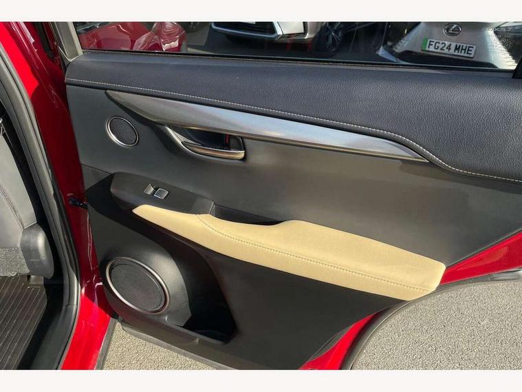 4 driving modes EV/Eco/Normal/Sport, 4 front and 4 rear park assist sensors, 8" display screen with remote touch interface, Analogue clock, Apple car play/Android Auto, Bluetooth telephone connectivity, Electric speed sensitive power steering, Lane change flasher function, Lexus link connected services with available optional wifi, Lexus navigation system, Push button starter, Reversing camera, All wheel drive system, Vehicle Dynamics Integrated Management (VDIM), Vehicle Stability Control (VSC), 2 USB ports, 8 Speakers, AUX socket with VTR compatibility, CD player, DAB Digital radio, Auto dimming interior rear view mirror, Bi LED headlight with Auto high beam, Body adhesive, laser screw welding and laser brazed roof structure, Front and rear one touch power windows, with anti-jam protection, Heated and auto folding door mirrors with turn indicators, Hidden exhaust pipe, LED brake lights and rear lights with emergency brake signal, LED daytime running lights, LED front and rear sequential indicators, Rain sensor windscreen wipers, Roof rails, 12V accessory port centre console and luggage compartment, 2 cupholders in front centre console, 2 map pockets in the rear, 2 x fixed shopping bag hooks in boot, 2 x sun visors with vanity mirror and lamp, 6 tie down hooks in boot, 60/40 split folding rear seat, 8 way driver/passenger electrically adjustable front seats, Adjustable rear seat backrest, Card holder installed in driver and passengers sun visors, Centre armrest with storage box, Dual climate control air conditioning system, Front and rear head restraints, Front and rear textile carpet mats, Heated front seats, Leather gear lever, Leather steering wheel with paddle shifts, LED interior illumination, Rear air vents, Rear centre armrest with 2 cupholders, Self charging hybrid, Tahara leather upholstery, Whiplash Injury Lessening (WIL) feature (active headrest) for seats, 2 x Isofix child rear seat restraints, 3 point ELR front seatbelts with pretensioners, 3x3 point rear seat belts, ABS, Adjustable seat belt anchor points, Driver and front passenger 2 stage airbag, Driver/front passenger side airbags, Drivers knee airbag, EBD + Brake Assist, ECB (Electronically Controlled Brake System), Electronic parking brake, Front and rear curtain shield airbags, Front passenger seat cushion airbag, Hill start assist, Hybrid automatic with 6 stage sequential shift and kick down switch, Lexus safety system - dynamic radar cruise control, pre collision system day and night, lane tracing assist, road sign, automatic high beam, OTA, Passenger airbag cut-off device, Traction control, Tyre pressure warning, 2 x remote key fobs, Anti-theft system with siren, alarm, intrusion sensor, glass breakage sensor, tilt sensor and engine immobiliser, Locking wheel nuts, Speed sensitive auto door locking, Two motion door lock with double lock, VIN Window etching, Silver inlays, Space saver spare wheel,