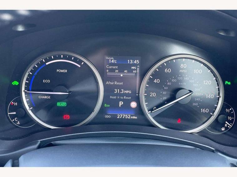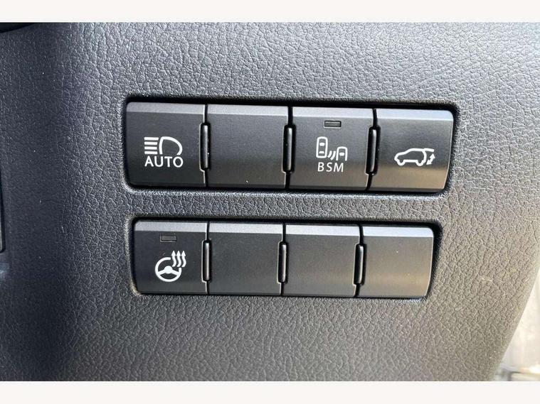 4 driving modes EV/Eco/Normal/Sport, 8" display screen with remote touch interface, Analogue clock, Apple car play/Android Auto, Bluetooth telephone connectivity, Electric speed sensitive power steering, Intelligent parking sensors - 4 front and 4 rear, Lane change flasher function, Lexus link connected services with available optional wifi, Lexus navigation system, Push button starter, Reversing camera, All wheel drive system, Vehicle Dynamics Integrated Management (VDIM), Vehicle Stability Control (VSC), 2 USB ports, 8 Speakers, AUX socket with VTR compatibility, CD player, DAB Digital radio, Auto dimming interior rear view mirror, Bi LED headlight with Auto high beam, Body adhesive, laser screw welding and laser brazed roof structure, Front and rear one touch power windows, with anti-jam protection, Heated and auto folding door mirrors with turn indicators, Hidden exhaust pipe, LED brake lights and rear lights with emergency brake signal, LED daytime running lights, LED front and rear sequential indicators, Rain sensor windscreen wipers, Roof rails, 12V accessory port centre console and luggage compartment, 2 cupholders in front centre console, 2 map pockets in the rear, 2 x fixed shopping bag hooks in boot, 2 x sun visors with vanity mirror and lamp, 6 tie down hooks in boot, 60/40 split folding rear seat, 8 way driver/passenger electrically adjustable front seats, Adjustable rear seat backrest, Card holder installed in driver and passengers sun visors, Centre armrest with storage box, Dual climate control air conditioning system, Front and rear head restraints, Front and rear textile carpet mats, Heated front seats, Leather gear lever, Leather steering wheel with paddle shifts, LED interior illumination, Rear air vents, Rear centre armrest with 2 cupholders, Self charging hybrid, Tahara leather upholstery, Whiplash Injury Lessening (WIL) feature (active headrest) for seats, 2 x Isofix child rear seat restraints, 3 point ELR front seatbelts with pretensioners, 3x3 point rear seat belts, ABS, Adjustable seat belt anchor points, Driver and front passenger 2 stage airbag, Driver/front passenger side airbags, Drivers knee airbag, EBD + Brake Assist, ECB (Electronically Controlled Brake System), Electronic parking brake, Front and rear curtain shield airbags, Front passenger seat cushion airbag, Hill start assist, Hybrid automatic with 6 stage sequential shift and kick down switch, Lexus safety system - dynamic radar cruise control, pre collision system day and night, lane tracing assist, road sign, automatic high beam, OTA, Passenger airbag cut-off device, Traction control, Tyre pressure warning, 2 x remote key fobs, Anti-theft system with siren, alarm, intrusion sensor, glass breakage sensor, tilt sensor and engine immobiliser, Locking wheel nuts, Speed sensitive auto door locking, Two motion door lock with double lock, VIN Window etching, Silver inlays, Space saver spare wheel,