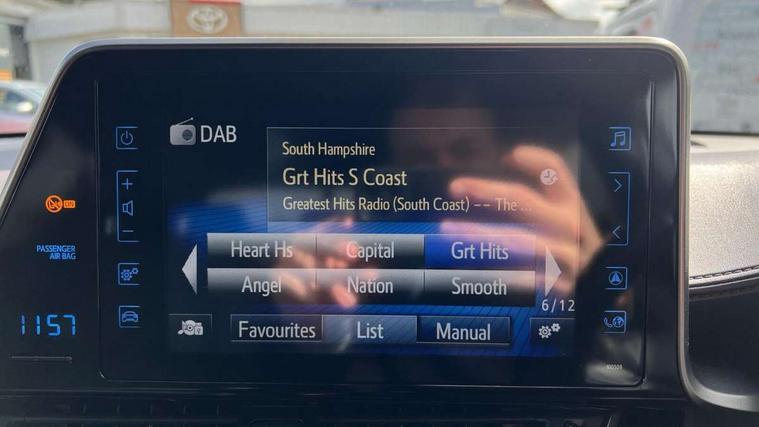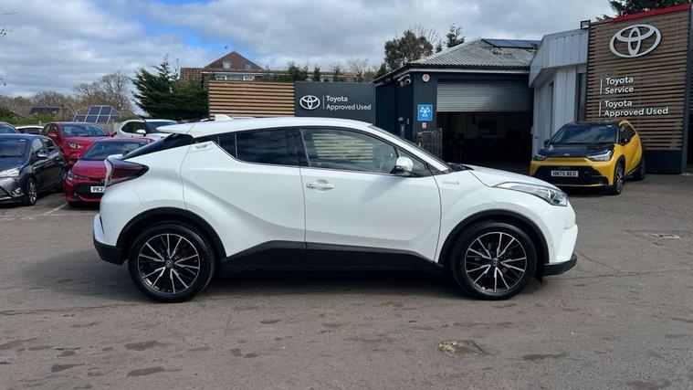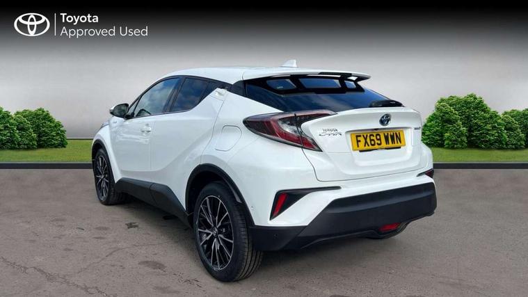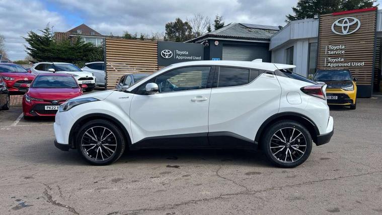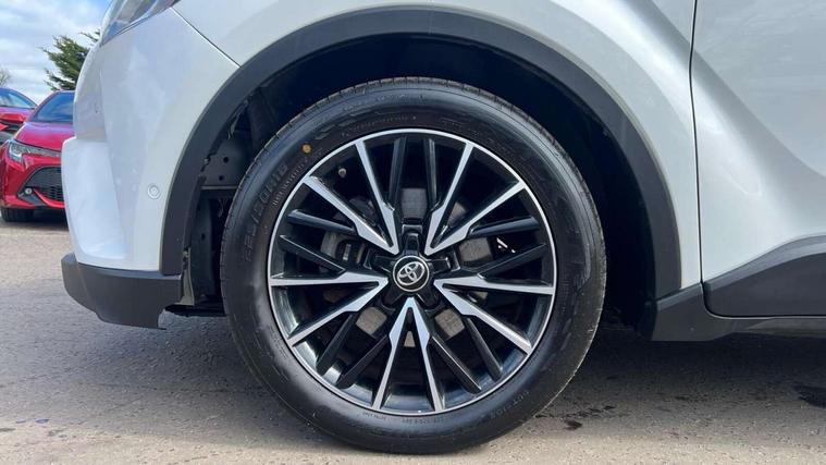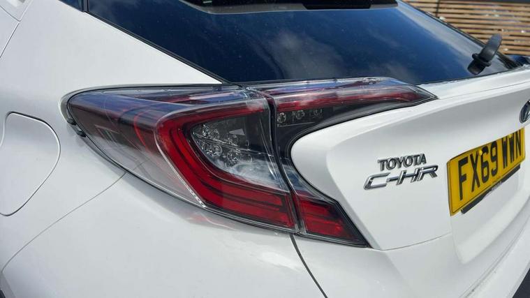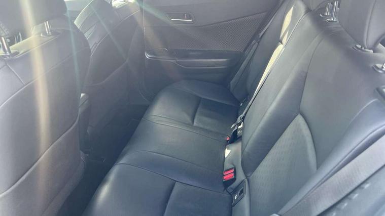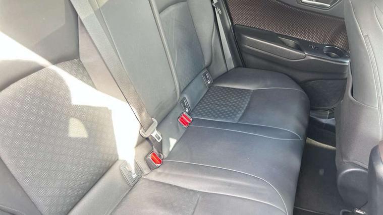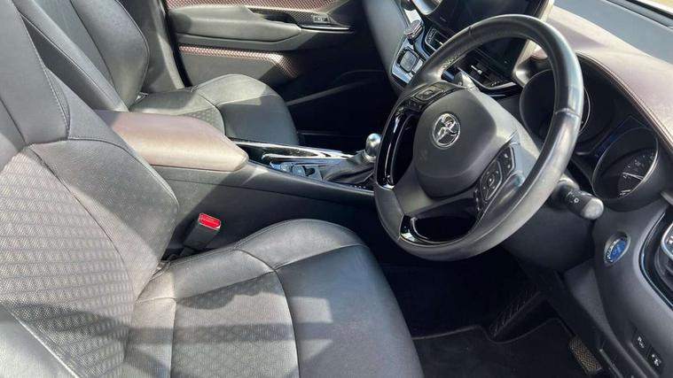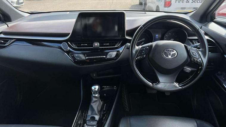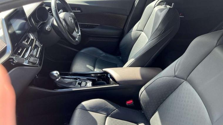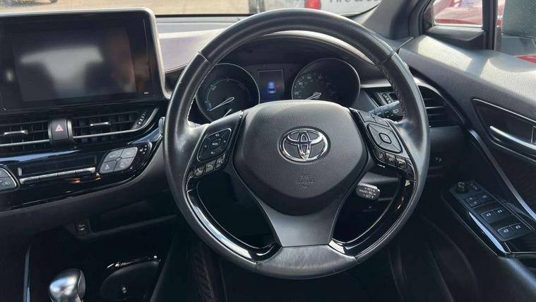 Parking pack - C-HR, Tyre repair kit, Immobiliser, Intrusion alarm, Motion sensor alarm, Remote central locking, Smart entry + Smart start, 6 speakers, DAB Radio (Digital Audio Broadcasting), Steering wheel mounted controls, USB and Aux in connectors + 12V front outlet, Wi-fi connectivity, 3x3 point rear seatbelts, ABS+EBD+Brake assist, Electronic parking brake, ESP + traction control, Front and rear seatbelt reminder, Front passenger airbag on/off switch, Hill start assist control (HAC), Pre collision system with pedestrian detection, Rear child proof door locks, Road sign information display, Supplemental restraint system (SRS) airbags - 7 airbags including driver, front passenger, curtain, side and knee airbags, Toyota safety sense, Tyre pressure monitoring system, Auto high beam, Automatic headlight levelling, Automatic headlights, Automatic retractable door mirrors, Body colour door handles, Body colour door mirrors, Body coloured bumpers, Boot door release with push button, Door mirror puddle lights, Electric folding/heated door mirrors with integrated indicators, Electrochromatic rear view mirror, Follow me home headlights, Front and rear electric windows, Front fog lights, Hard tonneau cover, Heated rear windscreen, Intermittent wipe, LED daytime running lights, LED High mounted stop lamp, LED rear brake lights, LED rear lights, Projector and reflector halogen headlights, Rain sensitive windscreen wipers, Rear privacy glass, Rear spoiler, Rear wiper, Shark fin antenna, Trailer Sway Control, 12V Accessory socket, 3 spoke leather steering wheel with multimedia switches, Ambient lighting, Chrome interior door handles, Clean air filter, Driver + front passenger electric lumbar support, Driver and front passenger personal light, Driver and front passenger Whiplash Injury Lessening seats, Driver and passenger seatback pockets, Driver/passenger sunvisors and illuminated vanity mirrors, Dual zone automatic air conditioning, Folding rear seats, Front and rear door pockets, Front console box and front cupholders, Front cupholders x 2, Front head restraints, Gear shift indicator, Glovebox with internal light, Heated driver and front passenger seats, Humidifying Nanoe air purifier, Illuminated door sills, Illuminated entry system, Isofix seat fixing, Leather effect padded armrest on front console box, Leather gearshift, Leather upholstery, Light blue ambient lighting on front doors, Pollen filter, Rear headrests, Tilt/telescopic steering column, 7" Coloured TFT multi informational display, 8" touch screen, Adaptive cruise control, Adjustable speed limiter, Bluetooth connectivity, Electric power steering, Intelligent parking assist with front & rear parking sensors, Lane change assist and blind spot monitor, Lane departure alert with steering control, Lights on warning, Push button starter, Rear cross traffic alert, Reversing camera, Reversing camera display in audio screen, Road sign assist - RSA, Touch 2 Go navigation system, Trip computer, Voice recognition, Vehicle Stability Control (VSC),