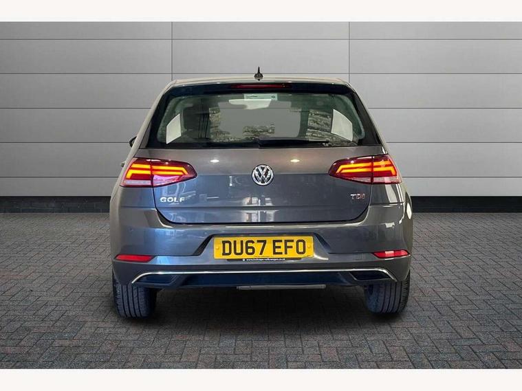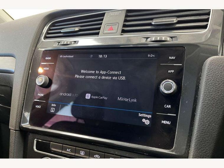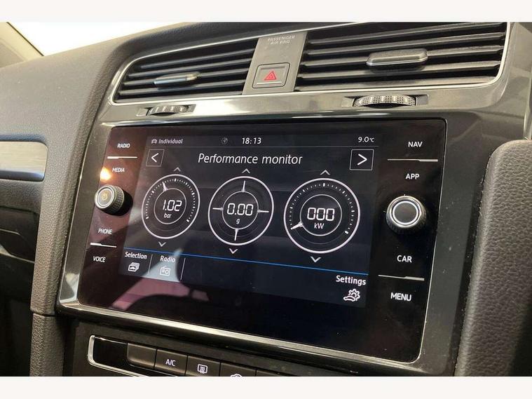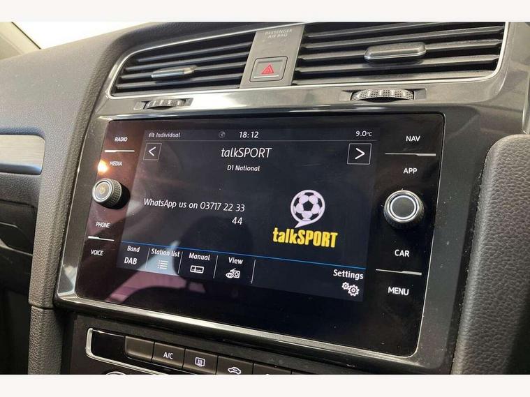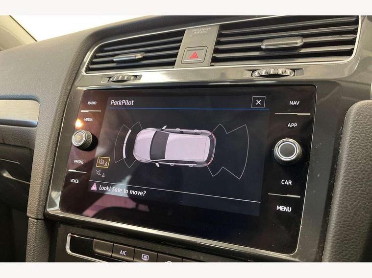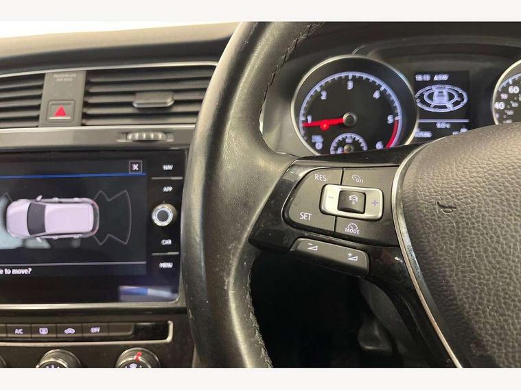 'Lights On' Reminder warning buzzer, 8" touch screen, Adaptive Cruise Control with pedestrian detection and speed limiter, App-Connect, Bluetooth hands free telephone connection, Brake pad wear indicator warning light, Driver alert system, Driver profile selection, Exterior temperature gauge, Front assistant collision mitigation, Instrument cluster in white, Multifunction computer, PAS - speed related, Rev counter, Trip and service interval display, Ultrasonic front and rear optical and audible parking sensors, Warning buzzer and light for front seatbelts unfastened, Diesel particulate filter, XDS electronic differential lock, CD/MP3/WMA, USB and SD card reader, aux-in, Composition media system, DAB Digital radio, Auto dimming rear view mirror, Automatic coming/leaving home lighting function, Automatic headlights, Black front air intake and radiator grille with chrome insert, Black rear diffuser, Body colour bumpers, Body colour door handles, Body colour door mirrors, Electric front windows, Electric rear windows, Electrically adjustable and heated door mirrors, Heated rear windscreen, LED daytime running lights, LED rear lights, Rain sensor, Rear roof spoiler, Rear windscreen washer and wiper with interval delay, 12V socket in luggage compartment, 3 rear headrests, 3 spoke steering wheel, 60/40 split folding rear seat, Bag hook in luggage compartment, Boot lashing points, Cooled glovebox, Courtesy light delay, Cover for storage compartment in centre, Dust/pollen filter, Front and rear reading lights, Front centre armrest with storage box and rear air vents, Front passenger drawer stowage, Front passenger seat height adjust, Front seat back storage pockets, Grab handles, Height adjustable driver's seat, Height/reach adjust steering wheel, Illuminated vanity mirrors, Isofix preparation for 2 rear child seats, Load through provision with rear centre armrest and cupholders x2, Luggage compartment cover, Luggage compartment lighting, Multifunction leather steering wheel with leather gear knob/handbrake grip, Overhead storage box, Pearl grey headlining, Storage box in luggage compartment, Storage compartments in doors, Sun visors, Variable boot floor, height adjustable and removable, Mirror pack - Golf, 3 point height adj front seatbelts + pretensioners, 3 rear 3 point seatbelts, ABS, Automatic post collision braking, Child locks on rear doors, Driver/Front Passenger airbags, Driver/Passenger whiplash optimised head restraints, Drivers knee airbag, Electronic parking brake with auto hold, ESP with EDL + ASR, Front and rear curtain airbags, Front passenger airbag deactivation, Front side airbags, Pre crash system, Tyre pressure monitor, Alarm with interior protection, Electronic engine immobiliser, Remote central locking with 2 remote folding keys, Brushed dark metal decorative inserts in dash and front door panels, Chrome-plated light switch surround, Polar night black centre console, Steel space saver spare wheel,