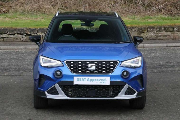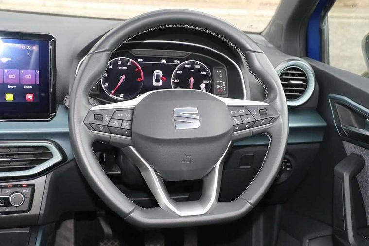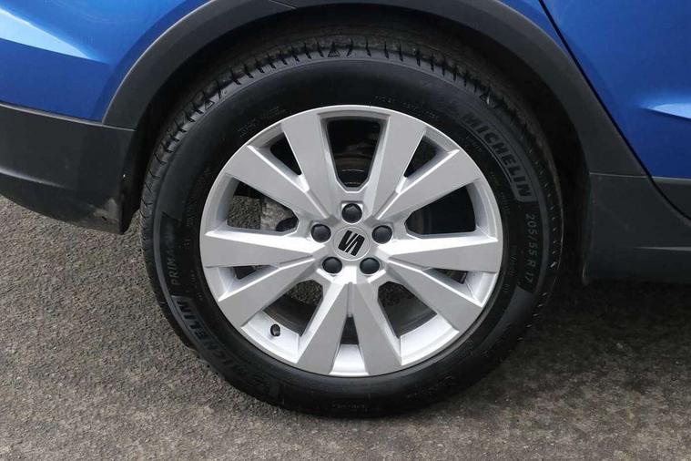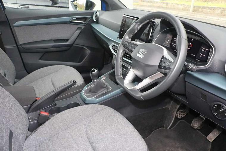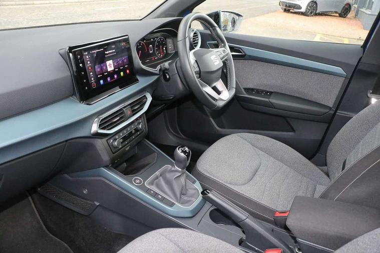 'Lights On' Reminder warning buzzer, 8" Digital cockpit, Digital clock, E-call, Electric speed sensitive power steering, Full Link Smartphone Integration with Mirror Link, Apple Car Play, Google Android Auto with USB Type C cable for Apple and Android compatibility, Lane keeping system, Low fuel warning light, Outside temperature display, Rear parking sensor, RPM counter, Seat connect with safety, service, remote and online, Trip computer, Wireless phone charger, 9.2" colour touchscreen with navigation system, voice control and USB port (type c), Bluetooth interface for hands free and audio streaming, DAB digital radio and AM/FM radio, Steering wheel mounted audio controls, Anti theft roof antenna, Auto dimming interior rear view mirror, Automatic activation of hazard warning lights, Body coloured bumpers, Body coloured door handle inserts, Chrome roof rails and window surrounds, Electric front/rear windows, Electrically adjustable, heated and folding door mirrors, Front fog lights with cornering function and rear fog light, FULL LED automatic headlights with dynamic headlight range control, coming and leaving home, LED daytime running lights, Hidden exhaust pipe, LED rear tail lights and licence plate lights, Protective side mouldings, Rain sensing wipers, Rear side wing doors, Rear spoiler, Rear window wash/wipe, Roof colour door mirrors, Third brake light, Visible VIN plate, Windshield wiper with intermittent control and potentiometer, 2 cupholders, 3 seat bench in 2nd row, 60/40 split folding rear seat, Aircare filter, Black interior roof, Cloth upholstery, Double boot floor, Driver sunvisor with covered mirror + card holder, Dual zone climate control, Flat bottomed leather steering wheel/gear knob/handbrake, Front courtesy light with 2x front and 2x rear reading lights, Front seat back storage pockets, Gear shift indicator, Height adjustable front seats, Height/reach adjustable steering column, Illuminated boot, Instrument lighting with brightness control, Interior ambient lighting, Interior light in footwell, central console and door panel, ISOFIX points in outer rear seats with top tether anchorage points, Leather steering wheel/gear knob/handbrake, Passenger sunvisor with vanity mirror, Single front passenger seat, Storage net on centre console, Two front and three rear height adjustable headrests, Interior chrome pack - Arona, Safety and driving pack (M) - Arona, Storage pack - Arona, 3 point seatbelts on all rear seats, ABS, Active front headrests, Child locks on rear doors, Driver and front passenger airbags with front passenger airbag de activation, front side and curtain airbags, Electronic stability control, Emergency Brake Assist (EBA) and front assist, Front and rear seatbelt reminder, Hill hold control, Multi-Collision braking, Tiredness recognition system, Traction control, Tyre pressure monitoring system, Alarm with back-up horn, Electronic engine immobiliser, KESSY Keyless entry and go, Locking wheel bolts, Remote central locking + deadlocks, Tow away protection, Titan black dashboard, 17" Dynamic alloy wheels,