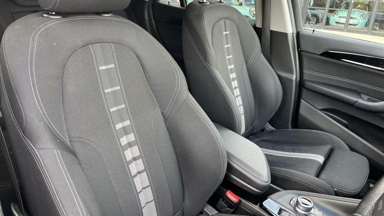 Active Guard incl speed limiting and lane departure functions with auto steering, and front collision warning with brake intervention, Ambient temperature display, Attentiveness assist, Automatic tailgate opening, BMW Online services, BMW Teleservices, Lights on warning, On board computer, Outside temperature gauge, Real time traffic information, Service interval indicator, Speed limiter, Stop/start button, Tyre puncture warning system, Diesel particulate filter, Electronic differential lock, Performance Control, BMW professional radio with CD player, DAB Digital radio, Adjustable headlights, Body colour bumpers, Body colour door handles, Chrome tailpipe finisher, Electrically adjustable and heated door mirrors, Exclusive door sill finishers, Fingertip control / anti-trap function on electric window, Follow me home headlights, Front and rear electric windows, Front fog lights, Heat insulating tinted glass, Heated windscreen washer jets, kidney grille with high gloss black vertical slats, LED daytime running lights, Rain sensor including auto headlights activation, Welcome home function, 12v power point in centre console, 12V power socket in passenger footwell, 3 spoke sport leather steering wheel, 4 grab handles, Boot light, Centre console with cupholders, Driver/passenger sunvisors with ticket holders, Drivers folding storage compartment, Dual zone automatic air conditioning, Front and rear door armrests, Front centre armrest/sliding cover, Front passenger isofix child seat attachment, Front sports seats, Front/rear adjustable head restraints, Illuminated glovebox, Isofix rear child seat preparation, Leather gearknob/gaiter/handbrake grip, LED ambient lighting in door trim, Luggage area underfloor compartment, Multifunction steering wheel, Rake/reach adjustable steering wheel, Sliding/split/reclining 40/20/40 rear seat with 60/40 split rear seat base, Steering wheel gearshift paddles, Extended storage package - X1, 3 rear 3 point seatbelts, ABS/EBD, Audio/visual collision warning system, Automatic Stability Control (ASC), BMW emergency call, Cornering brake control (CBC), Crash Sensor - activates hazard/interior lighting + unlocks doors, Driver/Front Passenger airbags, Driver/front passenger side airbags, DSC - Dynamic Stability Control, Dynamic brake control, Dynamic Traction Control - DTC, Electronic parking brake, Front and rear head airbags, Front passenger airbag deactivation, Front seatbelt force limiters, Hill start assist, Pyrotechnically pre-tensioned front seatbelts, Rear door child safety locks, Seatbelt warning, Tyre pressure monitor, Warning triangle and first aid kit, Auto door lock when driving, Central locking including boot and fuel flap with deadlocks, Engine immobiliser, Locking wheel nuts, Remote control Thatcham category 1 alarm, High gloss black centre console, Low rolling resistance tyres,