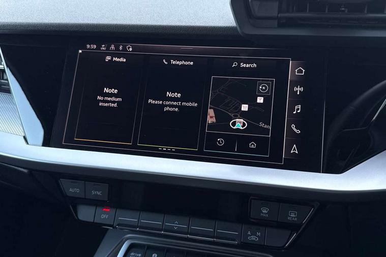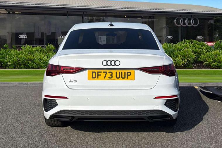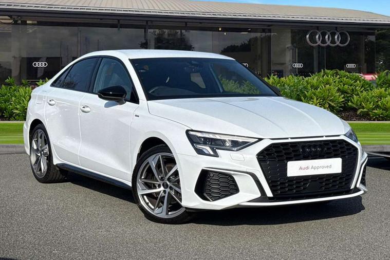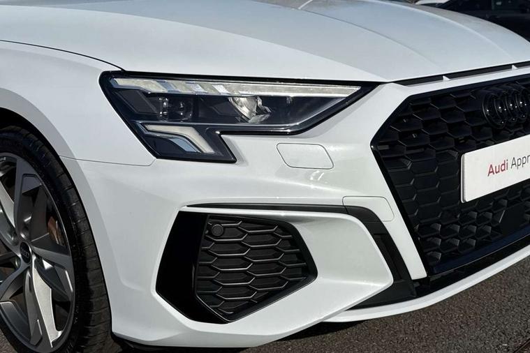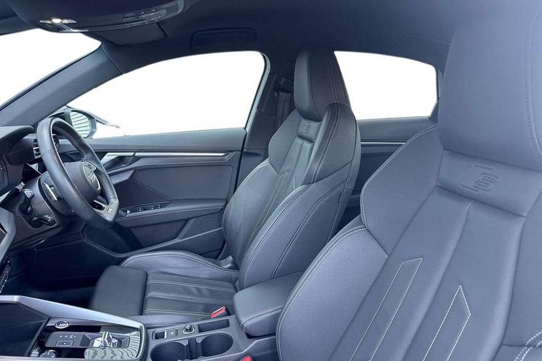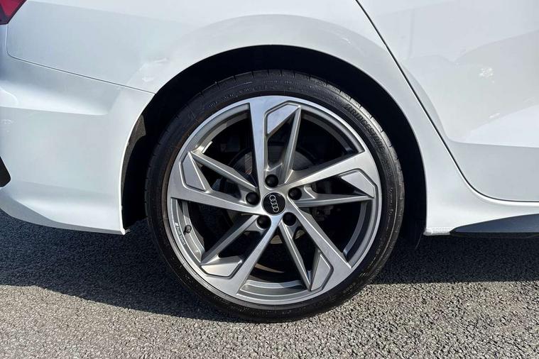 Audi drive select (Auto, Comfort, Dynamic, Efficiency and Individual), Audi smartphone interface, Audi Virtual Cockpit - 10.25" digital and colour instrument cluster, Automatic start/stop system with recuperation, Bluetooth interface, Camera based traffic sign recognition, Collision avoidance assistant, e-Call (emergency call), Electromechanical power speed sensitive steering, Lane departure warning system, MMI Navigation Plus with high resolution 10.1" colour touch screen display, Service indicator, Trip computer, Voice control system with natural language interaction, Sports suspension, 2xUSB-C connection with data and charging functions, 6 passive loudspeakers, CD player, DAB Digital radio, 3rd brake light, Acoustic glass windscreen, Audi beam uses LEDs to project the Audi logo onto the ground as you exit your A3, Auto dimming frameless rear view mirror, Electrically adjustable/heated/folding/dimming door mirrors with kerb view includes integrated LED indications + kerb view function for passenger side, Front electric windows, Illuminated door sills with aluminium inserts at the front with S logo, LED daytime running lights, LED headlights with LED rear lights and dynamic rear indicators, Light and rain sensors, Model and engine designation badges at rear, Privacy glass - dark tinted rear window, rear door and side windows, Rear boot, Rear electric windows, Rear side wing doors, S roof spoiler, 12V socket and storage compartment in front centre console, 3 seat bench in 2nd row, 3 spoke flat bottomed leather multifunction sport steering wheel with gear shift paddles, 4 way electrically adjustable lumbar support for driver and front passenger, 60/40 split folding rear seat bench, Black cloth headlining, Dual zone electronic climate control, Front and rear centre armrest in artificial leather, Front and rear headrests, Front/rear floor mats, Height and reach adjustable steering wheel, Interior lighting - glove compartment light and right hand side, Luggage compartment floor covering, Manual boot compartment lid, Single front passenger seat, Stainless steel pedals and front footrest in black, Twin leather upholstery with front sports seats S embossed logo, Aluminium interior elements pack - A3 Saloon, Black styling pack - A3 Saloon/Black edition, LED interior lighting pack - A3 Saloon, 3x3 point rear seat belts, Driver and front passenger airbag with passenger airbag deactivation, Electronic Stabilisation Control (ESC) including ABS, ASR and EDL, First aid kit with warning triangle and 2 safety vests, Front side airbags with head airbags and interaction airbag, Pre-sense front with pedestrian and cyclist detection, Seatbelt monitoring, Tyre pressure loss indicator, Anti theft alarm, Anti-theft wheel bolts, Electronically operated child locks, Immobiliser, Remote control central locking, Aluminium air vent surrounds, Dark spectrum aluminium inlays, accent surfaces in the dashboard and centre console in platinum grey silk effect paint finish, 19" 5 arm trapezoid design alloy wheels in matt grey with diamond cut finish,