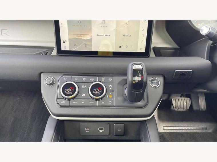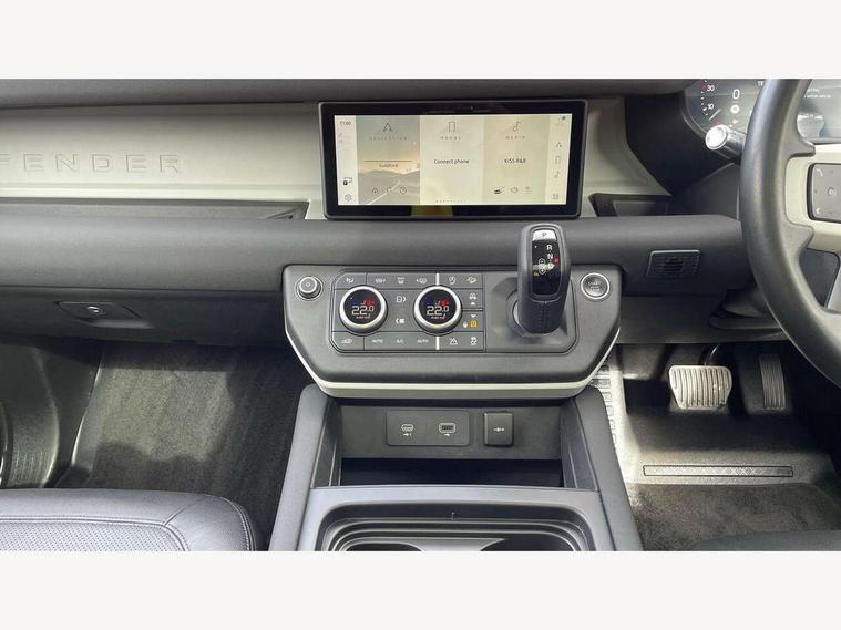 360 degree parking aid, 3D Surround Camera with 360 View, 180 Rear View, Front Traffic Detection, Forward Vehicle Guidance, Tow Hitch Assist and clear sight Ground View, Android Auto, Apple CarPlay, Assisted tailgate with soft close, Blind spot assist, Bluetooth system, Brake pad wear indicator, Clear exit monitor, Click and go integrated base unit, Connected navigation pro, Cruise control + speed limiter, Driver condition monitor, Electric power assisted steering (EPAS), Interactive driver display, Lane keep assist, Push button start, Rear traffic monitor, Traffic sign recognition with adaptive speed limiter, Trip computer, Wade Sensing, Wireless device charging, Adaptive dynamics, DAB Radio (Digital Audio Broadcasting), Meridian 400w sound audio system with 11 speakers and subwoofer, Pivi pro connected, Automatic headlight levelling, Automatic headlights, Body coloured roof, Centre high mounted stop light, ClearSight interior rear view mirror, Electric heated/power fold door mirrors with approach lights and auto dimming driver side, Electric windows with one touch open/close and anti-trap, Follow me home lighting, Front fog lights, Heated rear window with timer, Heated windscreen, Illuminated metal treadplates with brand name script, LED tail lights, Matrix LED headlights with signature DRL, Privacy glass, Puddle lights, Rain sensing windscreen wipers, Rear fog lights, Signature graphic (with interior storage), Sliding panoramic roof, Trailer stability assist, 12 way heated and cooled electric memory front seats with 2 way manual headrests, 12V power socket in loadspace, 40:20:40 folding rear seats with centre armrest, Cabin lighting, Carpet mats, Durable rubber cabin flooring, Durable rubber loadspace flooring, Electric cabin pre conditioning, Electric reach + rake adjustable steering column, Footwell lights, Front centre console refrigerator compartment, Front passenger isofix child seat attachment, Grained Leather upholstery, Heated steering wheel, Leather gearshift, Leather wrapped steering wheel with PU DAB, Light oyster morzine headlining, Loadspace cover, Loadspace Hook, Multifunction steering wheel, Overhead stowage for sunglasses, Rear headrests, Rear ISOFIX, Rear reading lights, Storage glovebox, Sunvisors with illuminated vanity mirrors, Twin front cupholders with cover, Non-smoker package, Online pack with data plan - Defender, XS Edition exterior pack - Defender, 5 x 3 point seatbelts, ABS, Brake hold function, Cornering brake control (CBC), Cross car beam in Light Grey Powder Coat, Customer configurable autolock, Driver and passenger airbags, DSC - Dynamic Stability Control, EBD - Electronic brakeforce distribution, Electric parking brake (EPB), Emergency braking, ESP + traction control, Front airbags with passenger seat occupant detector, HDC - Hill descent control, Hill launch assist, Low traction launch, Power operated child locks, Remote for (e-Call, Optimised assistance call, InControl app, Climate, beep and flash and door), RSC - Roll stability control, Seat belt reminder, TPMS (Tyre pressure monitoring system), Alarm, Immobiliser, Intrusion sensor, Keyless entry and go, Locking wheel nuts,