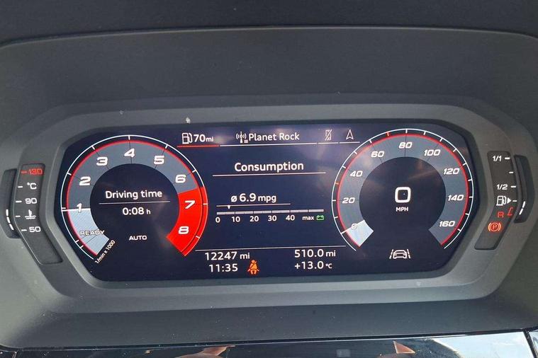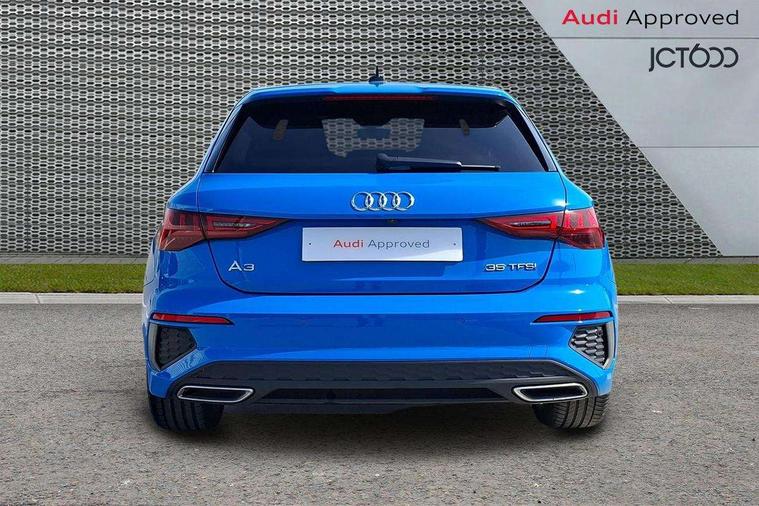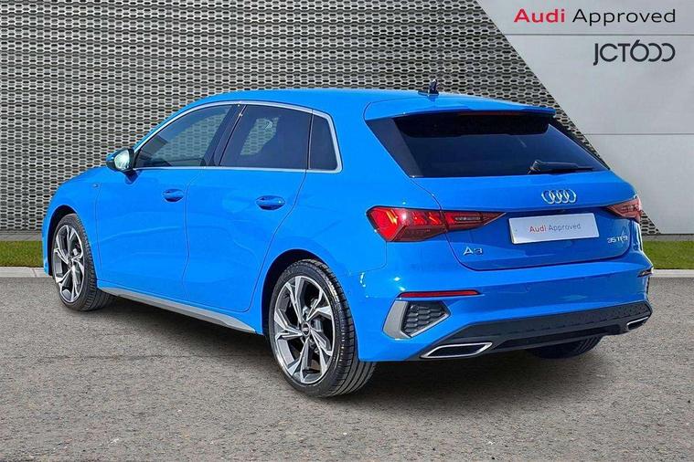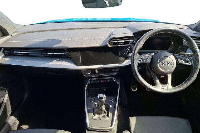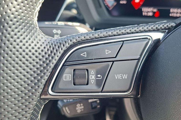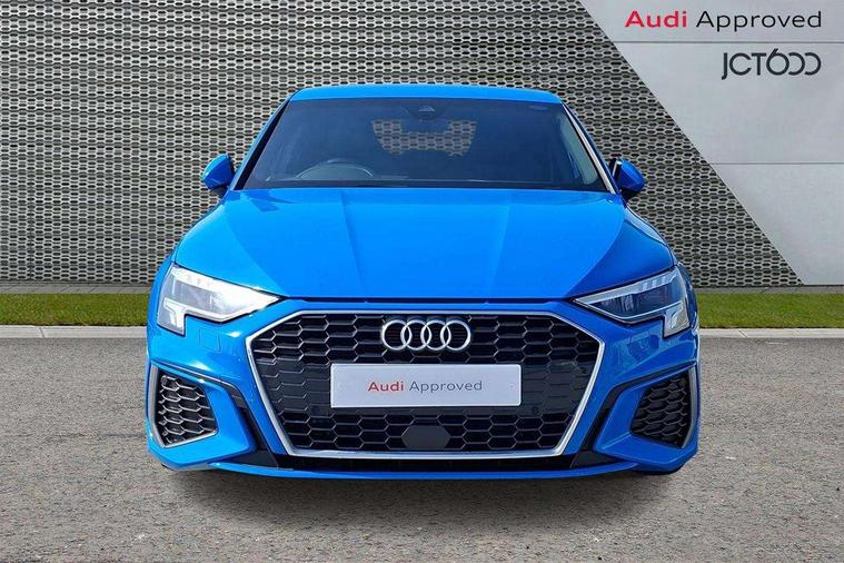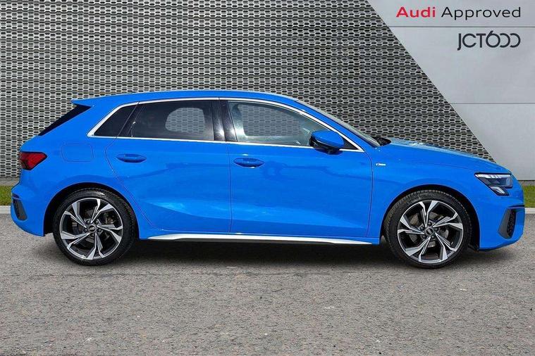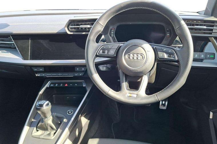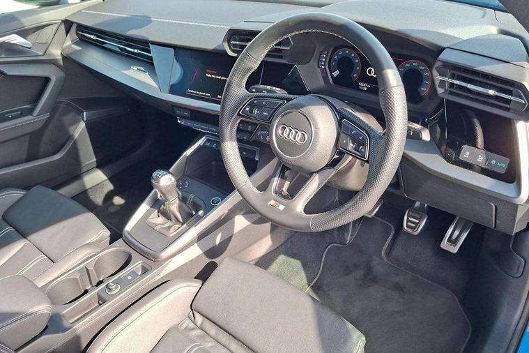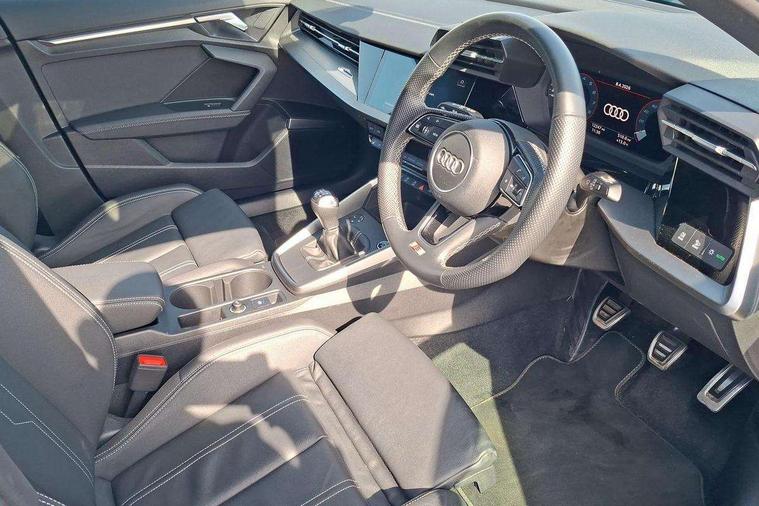 Audi drive select (Auto, Comfort, Dynamic, Efficiency and Individual), Audi smartphone interface, Audi Virtual Cockpit - 10.25" digital and colour instrument cluster, Automatic start/stop system with recuperation, Bluetooth interface, Collision avoidance assistant, Cruise control, e-Call (emergency call), Electromechanical power speed sensitive steering, Lane departure warning system, MMI Navigation Plus with high resolution 10.1" colour touch screen display, Rear parking sensors, Service indicator, Trip computer, Voice control system with natural language interaction, 2xUSB-C connection with data and charging functions, 6 passive loudspeakers, DAB Digital radio, 3rd brake light, Acoustic glass windscreen, Aluminium window trim, Auto dimming frameless rear view mirror, Electrically adjustable/heated/folding/auto dimming door mirrors with integrated LED indications + kerb view function for passenger side, Front electric windows, Illuminated aluminium inserts front door sills with S logo, LED daytime running lights, LED headlights with LED rear lights and dynamic rear indicators, Light and rain sensors, Privacy glass - dark tinted rear window, rear door and side windows, Rear electric windows, Rear side air outlets in grained matt black, Rear side wing doors, Rear wiper, S line bumpers, S roof spoiler, 12V socket and storage compartment in front centre console, 3 seat bench in 2nd row, 40/20/40 split folding rear seat bench with cupholder, Black cloth headlining, Dual zone electronic climate control, Front and rear centre armrest in leather, Front and rear headrests, Front/rear floor mats, Height and reach adjustable steering wheel, Illuminated vanity mirror, Interior lighting - glove compartment light and right hand side, Luggage compartment floor covering, Manual boot compartment lid, Manually adjustable front seats, Seat side bolsters, Single front passenger seat, Stainless steel pedals and front footrest in black, Twin leather upholstery with front sports seats S embossed logo, Aluminium interior elements pack - A3 Sportback, LED interior lighting pack - A3 Sportback, S line styling pack - A3 Sportback, 3x3 point rear seat belts, Audi pre sense front, Driver and front passenger airbag with passenger airbag deactivation, Electronic Stabilisation Control (ESC) including ABS, ASR and EDL, First aid kit with warning triangle and 2 safety vests, Front side airbags with head airbags and interaction airbag, Pre-sense front with pedestrian and cyclist detection, Seatbelt monitoring, Tyre pressure loss indicator, Anti theft alarm, Anti-theft wheel bolts, Electronically operated child lock, Immobiliser, Remote control central locking, Accent surfaces in the dashboard and centre console in platinum grey silk effect paint finish, Dark spectrum aluminium inlays,