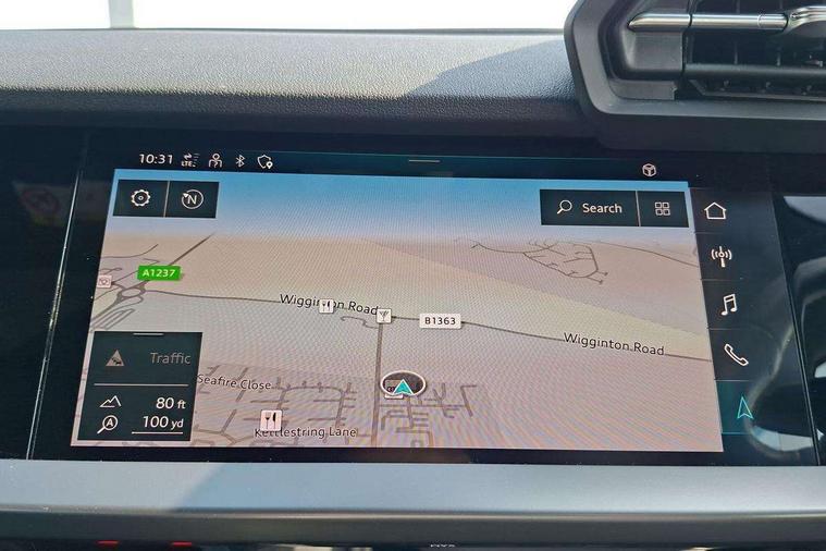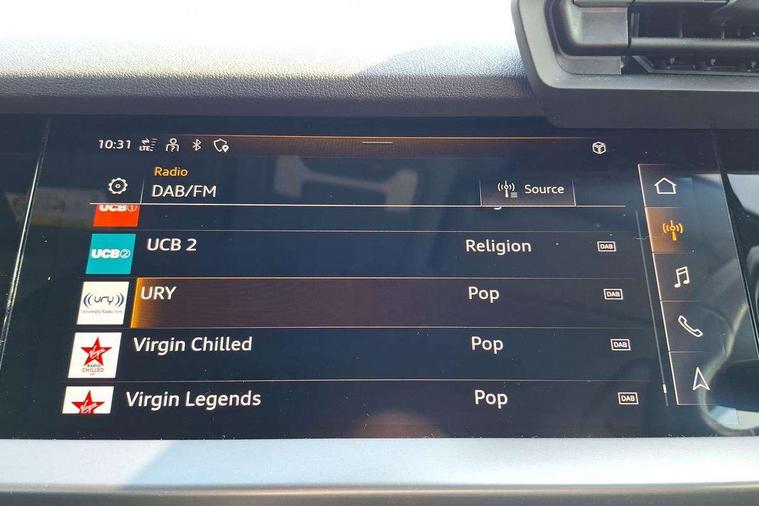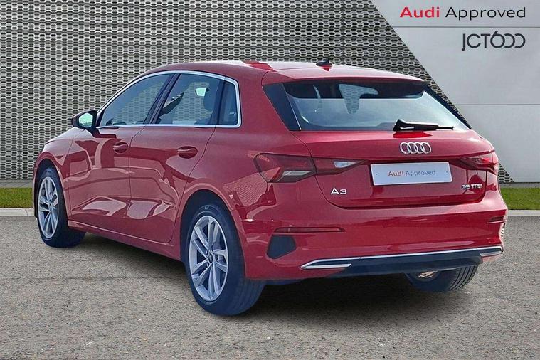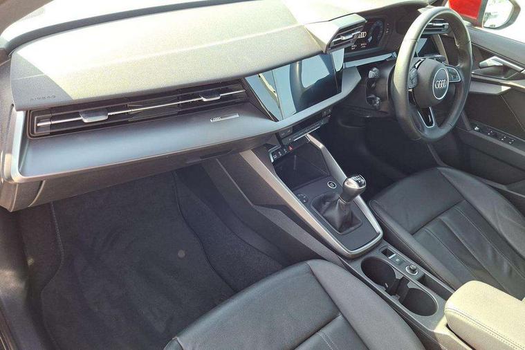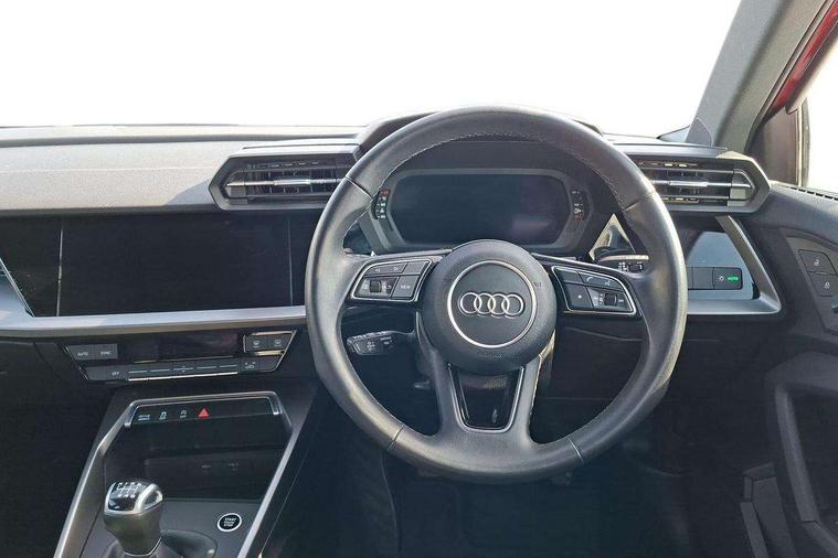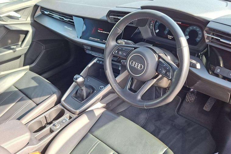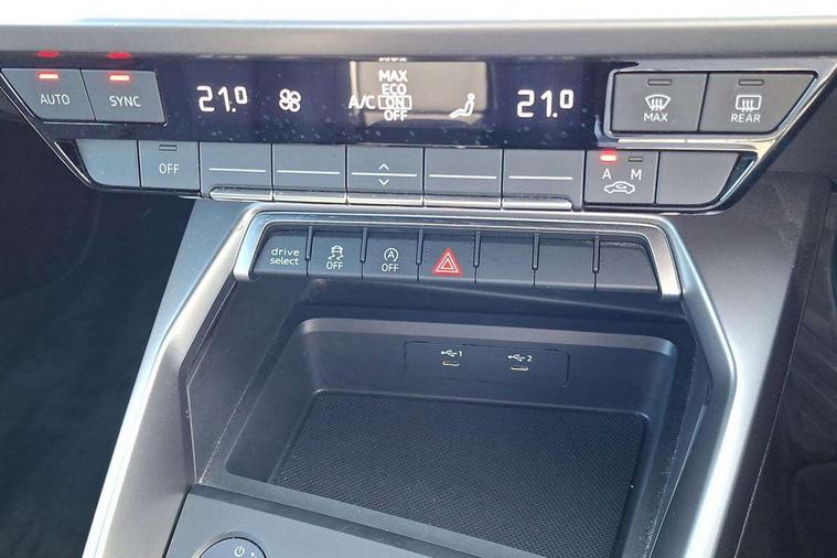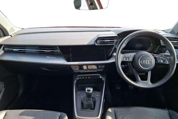 Audi drive select (Auto, Comfort, Dynamic, Efficiency and Individual), Audi smartphone interface, Audi Virtual Cockpit - 10.25" digital and colour instrument cluster, Automatic start/stop system with recuperation, Bluetooth interface, Collision avoidance assistant, Cruise control, e-Call (emergency call), Electromechanical power speed sensitive steering, Lane departure warning system, MMI Navigation Plus with high resolution 10.1" colour touch screen display, Rear parking sensors, Service indicator, Trip computer, Voice control system with natural language interaction, Standard suspension, 2xUSB-C connection with data and charging functions, 6 passive loudspeakers, DAB Digital radio, 3rd brake light, Acoustic glass windscreen, Aluminium window trim, Auto dimming frameless rear view mirror, Body colour exterior mirrors, Body colour roof spoiler, Electrically adjustable/heated/folding/auto dimming door mirrors with integrated LED indications + kerb view function for passenger side, Front electric windows, LED daytime running lights, LED headlights and halogen rear lights, Light and rain sensors, Rear electric windows, Rear side wing doors, Rear window, rear door windows and rear side windows in clear glass, Rear wiper, 12V socket and storage compartment in front centre console, 3 seat bench in 2nd row, 40/20/40 split folding rear seat bench with cupholder, Dual zone electronic climate control, Front and rear centre armrest, Front and rear headrests, Front door sill trims with aluminium inlay, Front/rear floor mats, Height and reach adjustable steering wheel, Interior lighting - Front and rear roof module including reading lights, glove compartment light and right hand side, Luggage compartment floor covering, Manual boot compartment lid, Manually adjustable front seats, Seat side bolsters, Single front passenger seat, Steel grey cloth headlining, Twin leather upholstery, Aluminium interior elements pack - A3 Sportback, Sport styling pack - A3 Sportback, 3x3 point rear seat belts, Audi pre sense front, Driver and front passenger airbag with passenger airbag deactivation, Electronic Stabilisation Control (ESC) including ABS, ASR and EDL, First aid kit with warning triangle and 2 safety vests, Front side airbags with head airbags and interaction airbag, Pre-sense front with pedestrian and cyclist detection, Seatbelt monitoring, Tyre pressure loss indicator, Anti theft alarm, Anti-theft wheel bolts, Electronically operated child lock, Immobiliser, Remote control central locking, Inlays with silk effect paint in platinum grey,