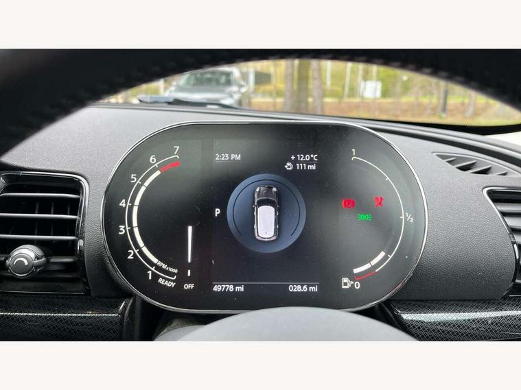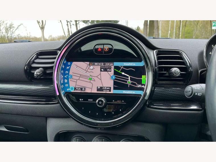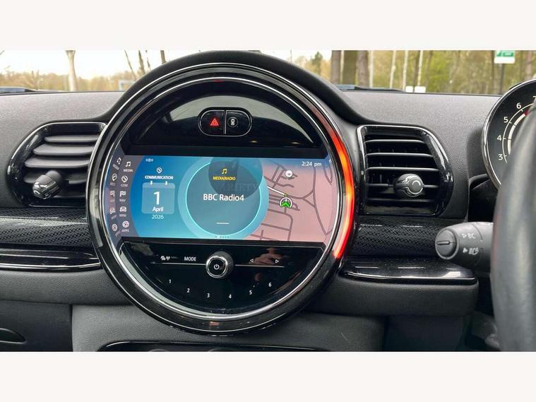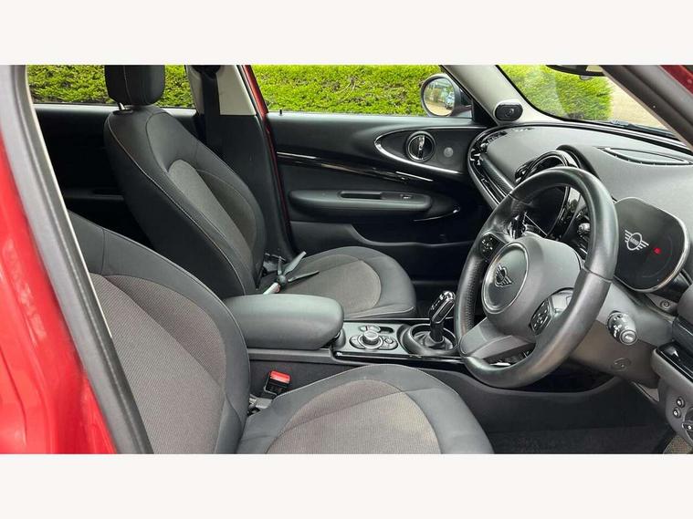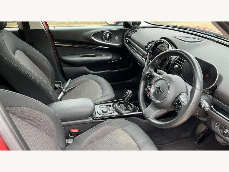 Active Guard incl speed limiting and lane departure functions with auto steering, and front collision warning with brake intervention, Automatic start/stop function with brake energy recuperation, Car sharing preparation, Compatible mobile phone bluetooth with audio streaming, Electro-mechanical speed dependant steering assistance, Instrument cluster, Mini E-call, MINI TeleServices, On board computer, Rear parking distance control, 7 Speed steptronic transmission with double clutch including electronic gear shifter, Double Vanos system, Fully variable valve control, High precision injection, Performance Control, FM tuner and DAB digital radio, Body colour fuel filler cap, Door sill strips, Dynamic brake lights, Electric windows, Exhaust tailpipe, Heated rear window, Heated windscreen washer jets, LED headlights with closed ring as daytime driving lights, LED rear light with union jack design, Left exhaust tailpipe with chrome finisher, Model logo on rear doors, Radiator grille, Rain sensor with auto headlights, Rear fog lights, Rear side wing doors, Rear window wiper, Rear wing door, Side scuttle panel with integrated indicator, Split rear doors, Sun/heat protection glass, Third brake light, Variable front intermittent wipers, White indicator lenses, 12V Accessory socket in centre console, 3 seat bench in 2nd row, 3 spoke sport leather steering wheel, shaped thumb rests+ limiter function and audio controls, 360L luggage compartment capacity, 4 lashing eyes in luggage compartment, 60/40 split folding rear seat, Chrome interior highlights, Cupholders, English handbook, Floor mats, Front and rear head restraints, Glove compartment, Headliner with grab handles and clothes hooks, Height and length steering column adjustment, Interior lighting with 12 basic colours selectable via toggle switch in roof, Isofix rear child seat preparation, Leather gearshift lever and handbrake gaiters, LED reading lights, vanity mirror lights, front foot well light and spotlight on front seats, Manual air conditioning, Manual passenger seat height adjustment, Mechanical seat adjustment, driver seat height adjust, forward/back and front seats backrest, Multifunction steering wheel, Single front passenger seat, Storage compartments in doors, Sunvisors with vanity mirrors, Toolkit, Excitement pack - Clubman, Navigation pack - Clubman, 2 tone horn, 3 point seatbelts on all seats, 6 Airbags - front, side, head and seat belt tensioners, Anti-lock braking system (ABS), Child locks on rear doors, DSC - Dynamic Stability Control, Electronic handbrake, Front and rear disc brakes, Tyre pressure monitoring system, Alarm system with tilt sensor, monitoring doors, bonnet interior and tailgate, Auto drive away locking, Deadlocking function, Electronic vehicle immobiliser, Locking wheel bolts, Remote central locking, Start/stop toggle with keyless go, Tyre repair kit,