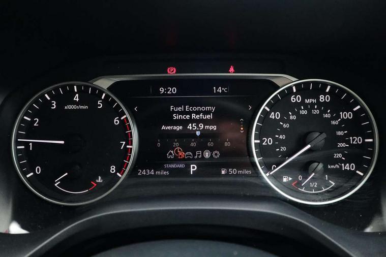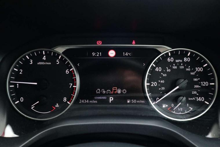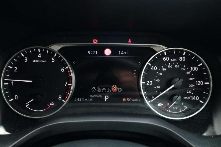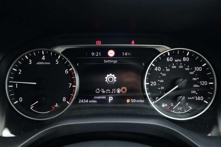 7" High definition full colour TFT screen combimeter, Android auto/Apple CarPlay (Wired), Blind spot warning, Drive modes (sport, normal, eco), Electric speed sensitive power steering, Emergency and breakdown call, Idle stop/start system, Intelligent Cruise control (ICC), Intelligent driver alert system, Intelligent forward collision warning, Intelligent lane intervention, Lane departure prevention, Lane departure warning system, Maximum speed limiter, Nissan connect 8" touchscreen infotainment system, Push button starter, Rear cross traffic alert, Rear parking sensors, Rear view camera, Traffic sign recognition with legal speed adjustment, Trip computer, 6 speakers, AM/FM audio system with DAB, Bluetooth audio streaming, Front USB connections (Type-A and Type-C), Auto dimming rear view mirror, Auto rear wiper when reversing, Automatic hazard signal with emergency stop signal, Body colour mirror caps, Body coloured door handles, Bodyside mouldings, Chrome side window finisher, Door handle with button, Electric auto folding door mirrors, Electrically adjustable and heated door mirrors with LED turn indicator, Follow me home headlights, High beam assist, Intelligent auto headlights, LED daytime running lights, LED Headlights, LED rear lights, One touch front and rear electric windows with remote opening and closing, Partially body coloured bumpers, Rear reversing light (bulb lighting), Rear roof spoiler, Rear side wing doors, Shark fin antenna, Splash free rain sensing wipers, Three blink turn signal, 12v power socket in dashboard and luggage, 2x Rear coat hooks, 3 bench rear seats in 2nd row, 3 rear headrests, 4 folding assist grip, 6-way manually adjustable driver's seat, 60/40 split folding rear seat bench, Centre console storage tray, Chrome interior door handles, Cloth monoform upholstery, Driver and front passenger sunvisors with illuminated vanity mirrors, Driver seat back pocket, Dual zone automatic climate control with pollen filter, Electrically adjustable lumbar support for driver, Front and rear door storage, Front centre console and armrest, Front cupholders x 2, Front door with bottle holders, Glovebox with light, Hard trunk cover, Height adjustable driver's seat, Height adjustable front headrests, Height adjustable passenger seat, Leather steering wheel, Luggage space lighting, Manually adjustable passenger (slide recline + lifter), Multifunction steering wheel, Passenger seat back pocket, Rear armrest with 2 cupholders, Rear door bottle holders, Single front passenger seat, Steering wheel gearshift paddles, Steering wheel switches, Sunglasses holder, Tilt/telescopic adjustable steering wheel, Two rear isofix child seat anchorage points with top tether, 3x3 point rear seatbelt pretensioners + load limiters, ABS with EBD and brake assist, Active brake limited slip, Auto hold function, Child locks on rear doors, Curtain and front side, far side airbags, Driver and passenger airbags, Driver, passenger and 2nd row rear seat belt reminder, Electronic parking brake, Front seatbelt pretensioners + load limiters, Height adjustable front seatbelts, Hill start assist, Intelligent blind spot intervention, Intelligent front emergency braking with pedestrian, cyclist recognition and junction assist, Intelligent rear automatic braking, Tyre pressure monitoring system, Vehicle dynamic control, Capless fuel filler, Engine immobiliser, Intelligent Key, Remote central door locking with deadlocking, Thatcham Cat.1 alarm, Interior instrumental panel A finisher, 17" Alloy wheels, Tyre puncture repair kit,