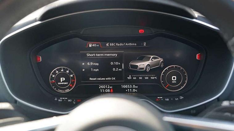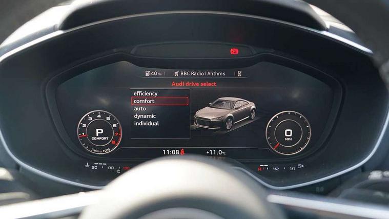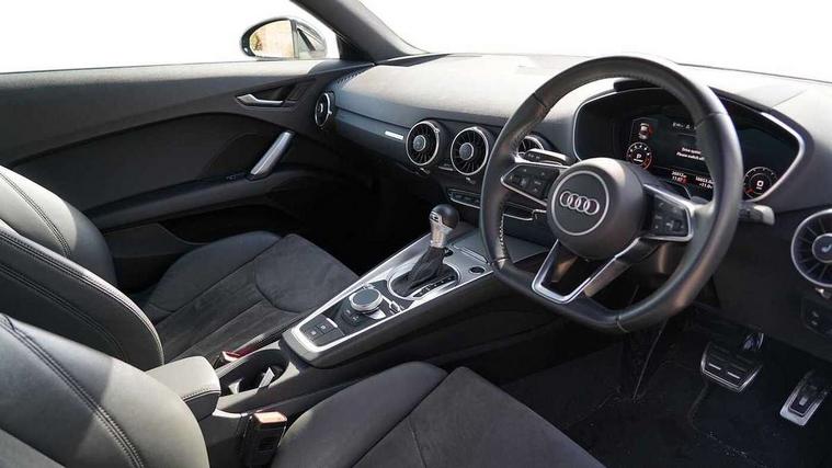 Audi drive select with 4 Pre configured modes, Audi smartphone interface, Audi virtual cockpit - 12.3" high-resolution LCD display with fully customisable instrument cluster, Cruise control + speed limiter, Emergency call service, MMI touch panel, Mobile phone preparation with bluetooth interface, Progressive power assisted steering, Service interval indicator, Start/Stop system with energy recuperation, TP memo, Sports suspension, AM/FM radio, Bluetooth audio streaming, DAB Digital radio, MMI Radio with CD player and SD/XC card slot, Auto dimming rear view mirror, Body colour bumpers, Body colour door mirrors, Electric folding door mirrors, Electric front windows, Electrically adjustable and heated door mirrors with integrated LED side indicators, Front fog lights, Green tinted heat insulating glass, LED 3rd brake light, Light and rain sensors, Rear boot, Retractable rear boot spoiler, Sunband for windscreen, Xenon headlights with LED daytime running lights with automatic headline range control + LED rear lights, brake lights and rear indicators, 12V socket, 2 rear seats, 3 spoke flat bottomed high multi-function leather sport steering wheel with gearshift paddles, Alcantara/Leather upholstery includes seat centre panels, door trim inserts in black Alcantara with side bolsters, head restraints in black leather, Aluminium door sill trims, Front centre armrest, Front passenger seat, Front sports seats, Heated front seats, Height/reach adjust steering wheel, Integrated head restraints, ISOFIX child seat mounting for front passenger seat with airbag deactivation, Manual adjustment of seat height, fore/aft position, seat angle, seat depth and backrest angle, Rear head restraints, Rear top tether child seat ISOFIX attachment, Split folding rear seat, Non smoking pack - TT/TT RS, 3 point front seat belts, ABS, ASR traction control, Curtain airbags, Driver and front passenger airbag with front passenger airbag deactivation, EDL traction control, Electromechanical parking brake, ESP, First aid kit, Front side airbags, Head airbags, Hill hold assist, Seatbelt warning, Tyre pressure loss indicator, Warning triangle, Anti theft alarm, Anti theft wheel bolts, Immobiliser, Keyless Go, Remote central locking, Aluminium design inlays, Tool kit, Tyre repair kit,