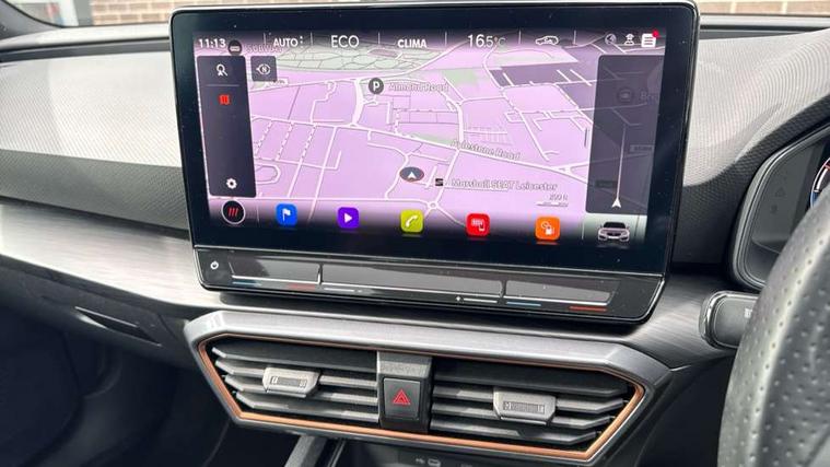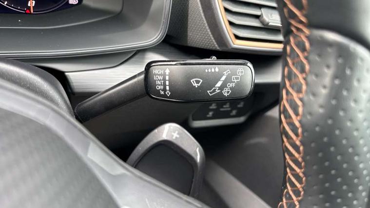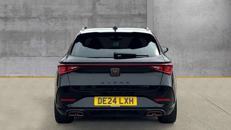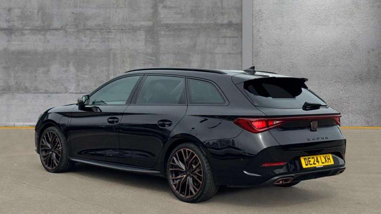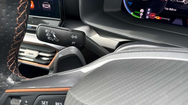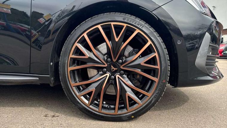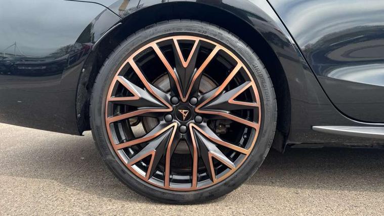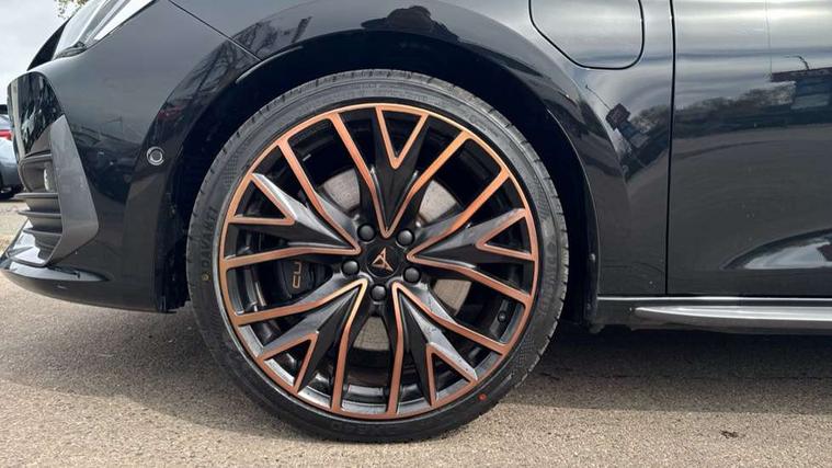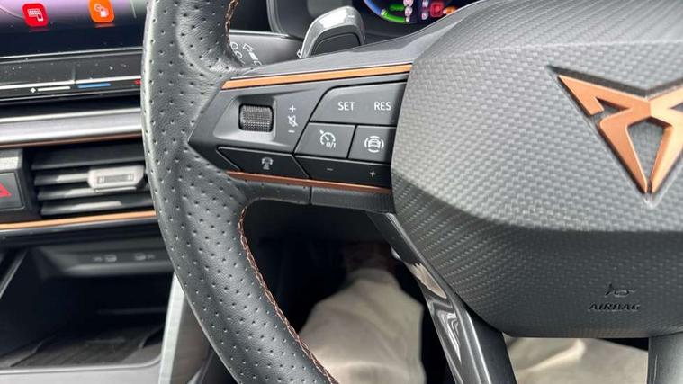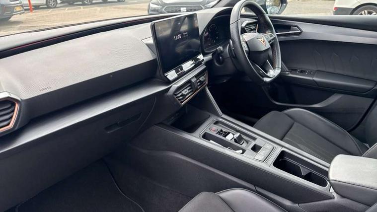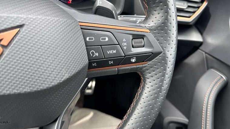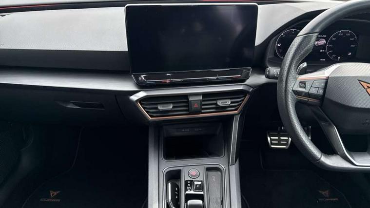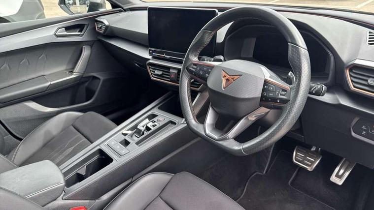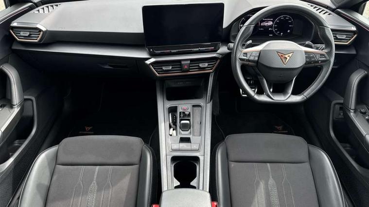 CUPRA drive profile selection with 4 modes (Comfort/Cupra/Sport/Individual), throttle response and gearshift mode, Digital cockpit, E-call, Front assist with forward collision warning braking reaction to vehicles, pedestrians and cyclists, Full link smartphone integration with Mirror Link, wireless Apple CarPlay and wired Google Android Auto, Lane assist, Lockable tailgate, Park assist (inc front/rear parking sensors), Rear view camera, RPM, trip computer, outside temp gauge, instrument light brightness, low fuel warning light, lights on reminder, gearshift indicator, Service interval indicator, Start/stop system with regenerative braking, Wireless phone charger, 10 amp mode 2 charging cable, 16 amp mode 3 charging cable, 3.6 kw On-board charger, Standard suspension, XDS electronic differential lock and dynamic traction support, Auxiliary input socket, Auto dimming rear view mirror, Body colour door handles, Body coloured bumpers, Cupra sports bumpers, Dark tinted rear windows, Electric front/rear windows, Electrically adjustable, heated and folding door mirrors, Gloss black roof rails, LED front fog lamps with cornering function, LED headlights with dynamic turn signals, tail lights, rear fog lights with rear coast to coast lighting, Panoramic sunroof, Rain sensing wipers, Rear diffuser with twin exhaust pipe on each side with simulated exhausts, Rear side wing doors, Rear wash/wipe, Separate daytime running light with automatic headlight control and coming home feature, Third brake light, 12v power supply in centre console, 12v socket in loadspace, 3 seat bench in 2nd row, 5 headrests, 60/40 split rear bench seat with armrest, Ambient lighting (glovebox, footwell, ambient lighting multicoloured), Black headlining, CUPRA Leather flat bottomed, heated, perforated steering and gearshift paddles, Cupra sports pedals, Driver/passenger manual seat height adjustment, Dust/pollen filter, Four x USB Type C ports (2 in front and 2 in rear), Front and rear reading lights X 4, Front centre armrest, Front seats manual lumbar adjustment, Height/reach adjust steering wheel, Illuminated interior front door sills, Interior wraparound lighting, ISOFIX points in outer rear seats with top tether anchorage points, Luggage tie-down hooks, PVC/Cloth upholstery with copper stitching + Cupra embossed logo on headrest, Single front passenger seat, Sliding boot cover, Sports bucket seats, Storage pockets on rear of front seats, Sunvisors with illuminated mirror, Three zone climate control, Design pack - Cupra Leon, Dynamic and comfort pack - Leon Cupra, Media system plus with navigation pack - Leon Cupra, 3 point seatbelts on all rear seats, ABS, Brake control system - ESC and brake booster, Child proof door locks, Cupra black brake calipers, Driver and front passenger airbags with front passenger airbag de-activation, front side and curtain airbags, Electronic parking brake, Extended safety system - seat belt tensioner, window closure and hazard lights, Hill hold control, Rear disc brakes, Seat belt reminder for front and rear seats, Tiredness recognition system, Tyre pressure monitoring system, Anti theft alarm system with interior monitoring in cab, backup horn and towing protection, KESSY Advanced - Keyless start, keyless entry, Locking wheel bolts, Chrome and copper interior detailing, 19" Performance satin black and copper alloy wheels with 91Y tyres, Breakdown kit, Tool kit,