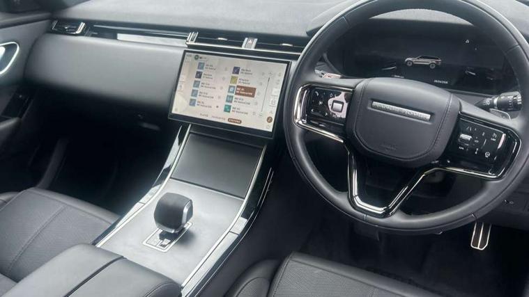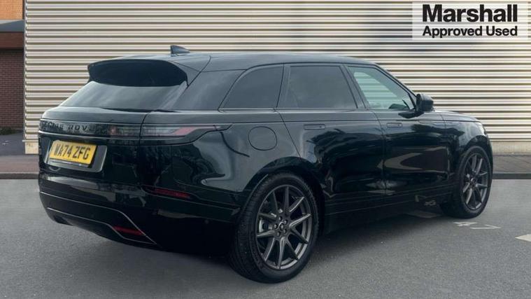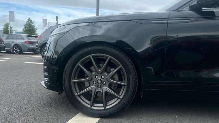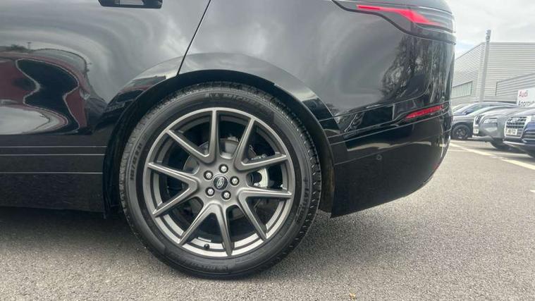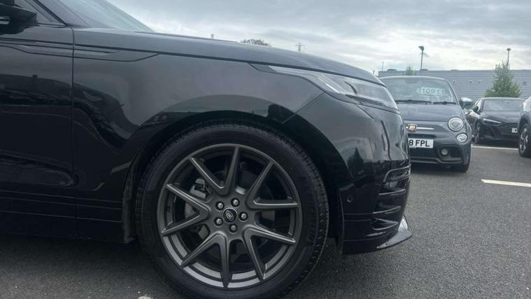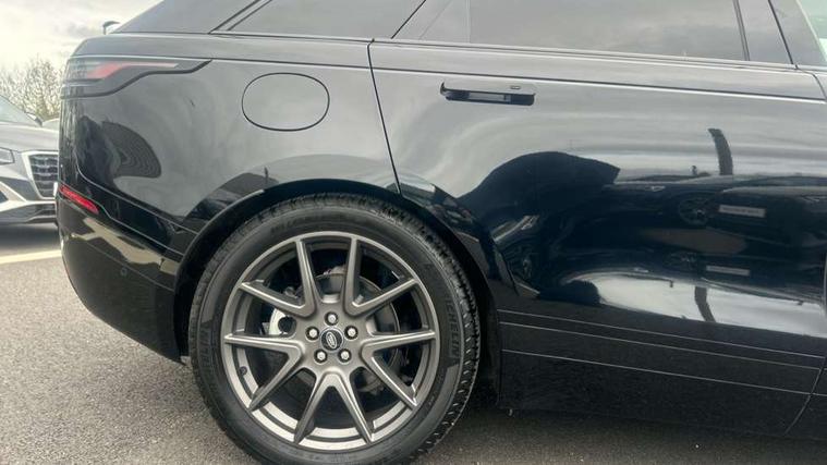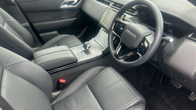 Adaptive cruise control with steering assist, Android Auto, Apple CarPlay, Blind spot assist, Bluetooth connectivity, Brake pad wear indicator warning light, Driver condition monitor, eCall emergency call system, Front and rear parking aid, InControl remote, Land Rover InControl apps, Lane keep assist, Pivi pro with connected navigation, Rear collision monitor, Rear traffic monitor, Service indicator, Speed proportional electronic power assisted steering (EPAS), Traffic sign recognition with adaptive speed limiter, Trip computer, Voice control system, Wireless device charging, 8 speed automatic transmission, Adaptive dynamics, All terrain progress control, Electronic air suspension, Open differential with torque vectoring by braking, Single speed transfer box, DAB radio, Steering wheel mounted controls, 3rd brake light, Acoustic laminated windscreen, Auto dimming interior rear view mirror, Automatic headlamp levelling, Automatic headlights, Body coloured bumpers, Boot protection plate, Electric windows with one touch open/close and anti trap, Flush deployable exterior door handles, Follow me home headlights, Heated rear window with timer, Heated washer jets, Heated windscreen, Metal front tread plates, Metal load space scuff plates, Pixel LED headlights with signature DRL, Power fold, auto-dimming, heated door mirrors with memory and approach lights, Rain sensor windscreen wipers, Rear animated directional indicators, Rear fog lights, Rear side wing doors, Rear wash/wipe, Tailgate/boot lid spoiler, Trailer stability assist, Velar badge, 3 seat bench in 2nd row, Ambient lighting, Bright metal pedals, Carpet mats, Driver/passenger sunvisors with illuminated vanity mirrors, Ebony morzine headlining, Electrically adjustable steering column, Extended leather upgrade, Heated steering wheel, Isofix system on outer rear seats, Loadspace cover, Overhead lighting console, Overhead stowage for sunglasses, Passive front headrests, Rear air vents, Rear centre headrest, Single front passenger seat, Twin front cupholders, Twin sliding front centre armrest, Online pack with data plan - Velar, Power socket pack 2 - Velar, 355mm Front and 325mm Rear brakes, 3x3 point rear seatbelts, Anti-lock braking system (ABS), Cornering brake control, Curtain airbags, Customer configurable autolock, Door side intrusion beams, Driver airbag, DSC - Dynamic Stability Control, Electronic brake force distribution, Electronic parking brake, Electronic traction control, Emergency braking, Front and rear seatbelt reminder, Hill descent control, Hill launch assist, Low traction launch, Passenger airbag, Power operated child locks, Rear airbags, Roll stability control, Side airbags, Tyre pressure monitoring system (TPMS), Global lock and unlock switch on driver door, Immobiliser, Intrusion sensor, Keyless entry, Lock only switch on front passenger door, Locking wheel nuts, Perimetric alarm, Remote central locking, All season tyres,