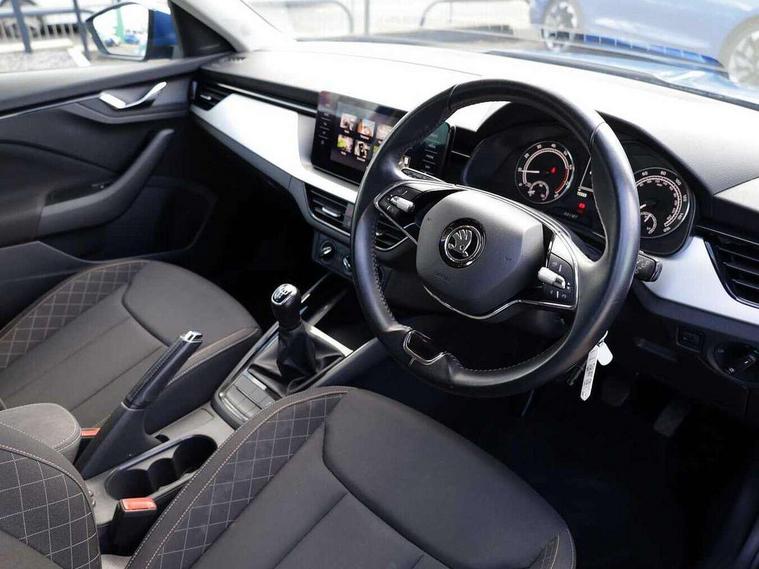 Amundsen satellite navigation with 9.2" glass colour touchscreen display, web radio, voice control and traffic sign recognition, Bluetooth system, E-call, Front assist system, Gesture control, PAS, Service indicator, Speed limiter, Wireless SmartLink for apple car play, android auto and mirrorlink, 8 speakers, Auxiliary input socket, DAB Digital radio, Body colour bumpers, Body colour door mirrors and handles, Chrome grille surround, Dimming rear view mirror with black surround, Electrically adjustable and heated door mirrors, Front and rear electric windows, Headlight range control, Heated rear window, LED rear lights - low functionality, LED third brake light, Light sensors, Privacy glass, Rain sensor, Rear fog lights, Rear side wing doors, Rear wiper, 12V Accessory socket in centre console, 3 seat bench in 2nd row, Chrome inner door handles, Cloth upholstery, Front head restraints, Glove compartment with illumination, Height adjustable driver and front passenger seats - manual, Ice scraper, Isofix child seat fittings on outer rear seats, ISOFIX on front passenger seat, Manual lumbar support for front seats, Rake/reach adjustable steering wheel, Reading lights, Single front passenger seat, Sun visors with illumination on front passenger, Textile floor mats, Third rear headrest, Top tether for front passenger seat, Umbrella in driver's door, 3x3 point rear seatbelts, Airbags - driver and front passenger, ESP, Front passenger airbag deactivation switch, Front side airbags with curtain airbags, Hill hold control, Manual parking brake, Manual rear child locks, One tone horn, Rear disc brakes, Seatbelt reminder for driver an co-driver, Traction control, Tyre pressure monitor, Anti-theft alarm system with interior monitoring, backup horn, towing protection and remote central locking with SAFE system, Anti-theft wheel bolts, Electronic engine immobilizer, Silver haptic decorative insert on the dashboard with hot stamping in glossy black,
