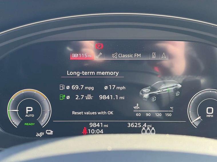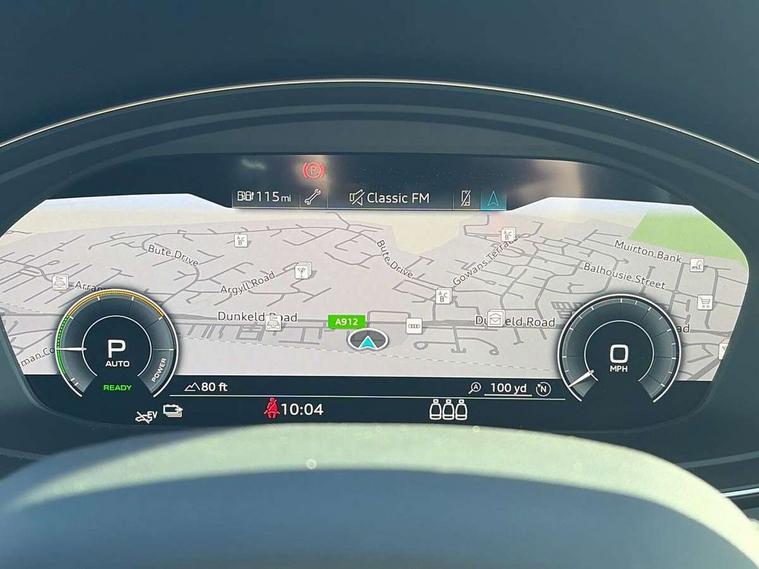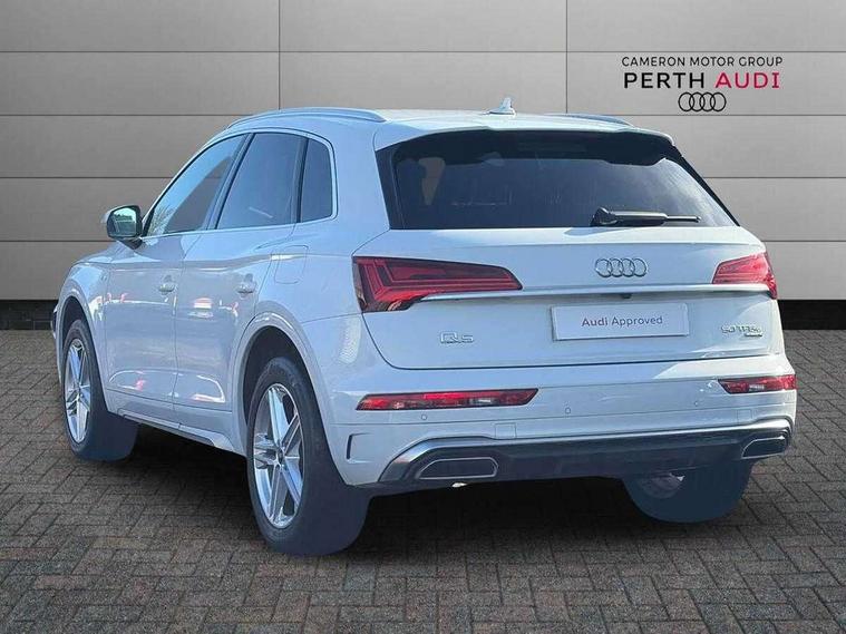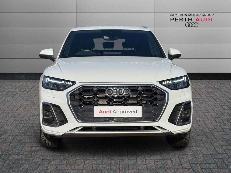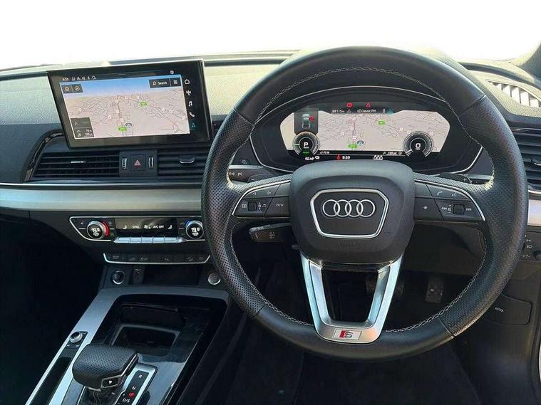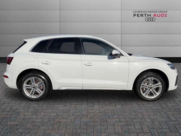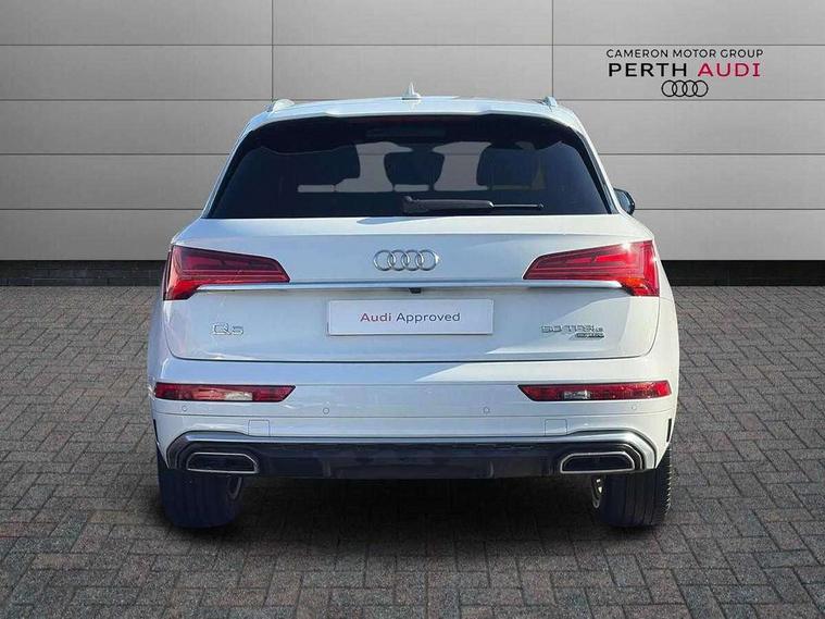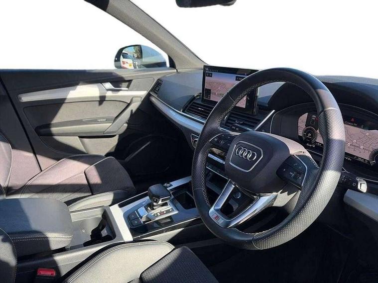 Audi connect safety and service (e-call), Audi connect with Amazon Alexa Integration, Audi drive select, Audi virtual cockpit plus with 12.3" screen and three different layout designs, Audi wireless smartphone interface, Automatic start-stop system with coasting functionality and efficiency programme, Bluetooth interface, Electro - mechanical power assisted steering, MMI navigation plus with 10.1" touch screen, Power tailgate, Reversing camera, Service interval indicator, Voice control system with Audi hotword activation "Hey Audi", 3 pin 10 amp domestic charging cable, Dynamic suspension, Quattro on demand, Type 2 mode 3 22kW 32 amp charging cable, Type 2 socket for AC charging, 2 x USB charging port with aux input socket, DAB Digital radio, Acoustic windscreen, Aluminium roof rails, Audi matrix LED headlights with dynamic front and rear indicators, Auto dimming rear view mirror, Automatic headlights and windscreen wipers, Body colour bumpers, Body colour door mirrors, Body colour rear diffuser with matt aluminium silver surrounds, Body colour underbody protection, Chrome plated exhaust trims, Door sills in Selenite silver, Electric adjustable/heated/folding door mirrors, Front air inlet surrounds in aluminium, Front and rear electric windows, Front radiator grille in honeycomb design, Headlight washers, Lower bumpers painted in contrast Manhattan grey, Rear chrome trim strip below lights, Rear privacy glass and rear side windows, Rear spoiler, Rear wiper, Roof bars, S Line badges on the front wings, S Line front and rear bumpers, S Line side skirts, 3 rear headrests, 40:20:40 split folding rear seat with rear centre armrest, Black cloth headlining, Comfort front centre armrest, Contrast stitching on seats, steering wheel and gear lever gaiter, Deluxe 3 zone electronic climate control, Front/rear floor mats, Gear lever in black leather, Heated front seats, Height adjustable front head restraints, Height/reach adjustable steering column, Illuminated door sill trims with S logo, ISOFIX child seat mounting and top tether, Manual seat adjustment with 4-way electric lumbar support, Rear seat bench plus, Sunvisors with vanity mirrors, Trunk roller cover, High gloss pack - Q5, LED interior light pack - Q5, 3 point seatbelts on all seats, 6 airbags - Driver, front passenger, curtain and side airbags, Electrically operated child locks on rear doors, Electromechanical parking brake, Electronic stabilisation control including ABS, ASR and EDL, Front passenger airbag deactivation, Hill descent control, Hill hold assist, Multi collision brake assist, Pop-up bonnet for pedestrian protection, Pre sense city, Seat belt force limiter, Seatbelt monitoring, Tyre pressure warning, Warning triangle and first aid kit, Anti theft alarm, Anti-theft wheel bolts, Keyless Go access/ignition system, Matt brushed aluminium inlays, Tool kit, Tyre repair kit,