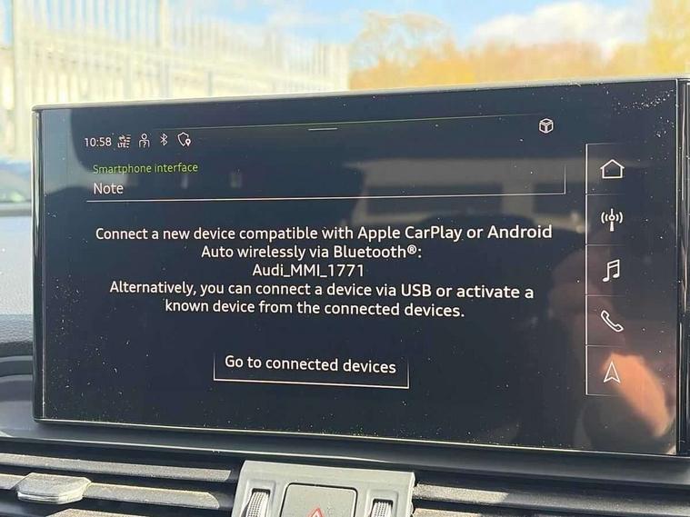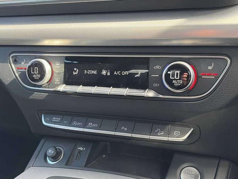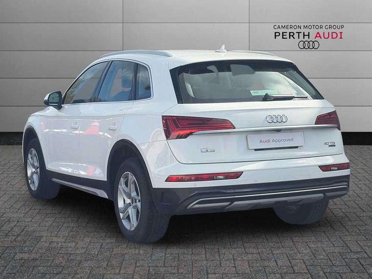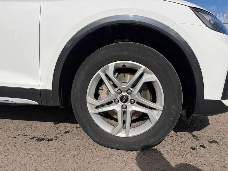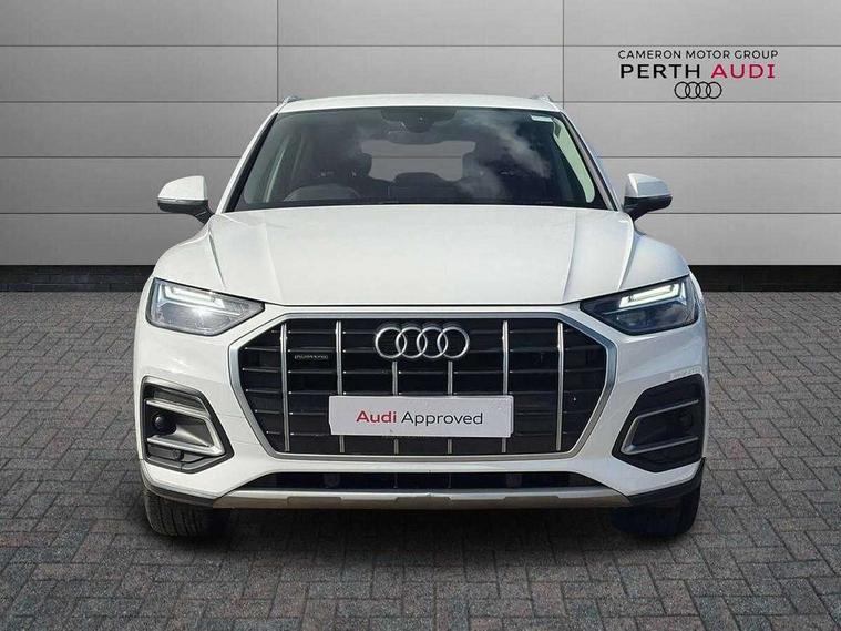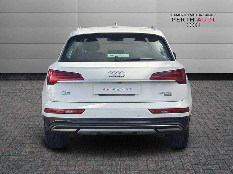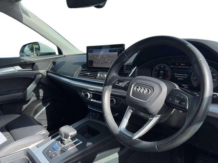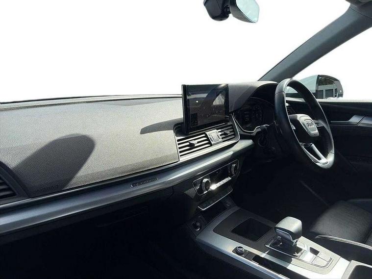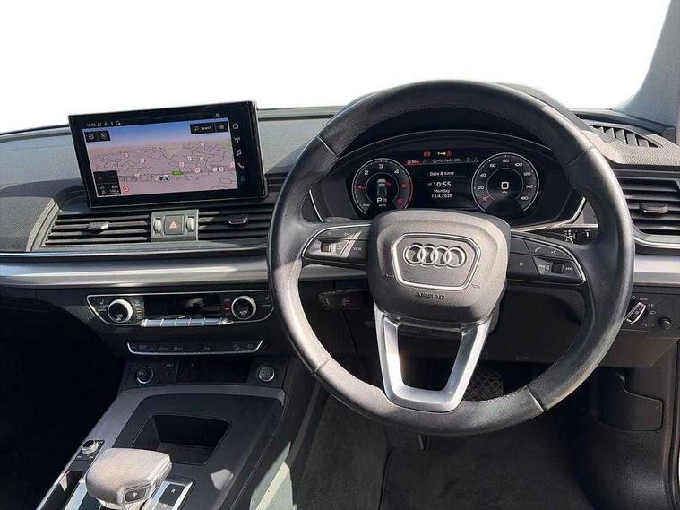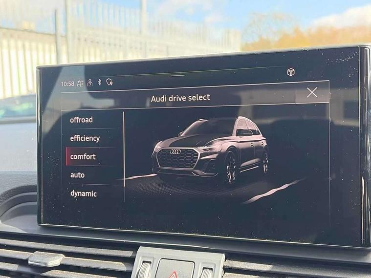 Audi connect safety and service (e-call), Audi connect with Amazon Alexa Integration, Audi drive select, Audi virtual cockpit plus with 12.3" screen and three different layout designs, Audi wireless smartphone interface, Automatic start-stop system with coasting functionality and efficiency programme, Bluetooth interface, Cruise control + speed limiter, Electro - mechanical power assisted steering, MMI navigation plus with 10.1" touch screen, Power tailgate, Reversing camera, Service interval indicator, Voice control system with Audi hotword activation "Hey Audi", Diesel particulate filter, Dynamic suspension, Quattro on demand, 2 x USB charging port with aux input socket, DAB Digital radio, Acoustic windscreen, Air inlets in matt titanium black with blades in matt aluminium silver, Aluminium roof rails, Auto dimming door mirrors, Auto dimming rear view mirror, Automatic headlight adjustment, Automatic headlights and windscreen wipers, Body colour bumpers, Body colour door mirrors, Chrome plated exhaust trims, Daytime running lights, Door sills in Selenite silver, Electric adjustable/heated/folding door mirrors, Front and rear electric windows, High level LED brake light, LED headlights and LED tail lights, Lower bumpers painted in contrast Manhattan grey, Matt selenite silver underbody protection, Matt twilight grey radiator grille with chrome vertical struts, Rear chrome trim strip below lights, Rear diffuser strip in selenite silver, Rear side wing doors, Rear spoiler, Rear wiper, Roof bars, 3 rear headrests, 3 spoke multifunction leather steering wheel with shift paddles, 40:20:40 split folding 3 rear bench seat in 2nd row with rear centre armrest, Comfort front centre armrest, Deluxe 3 zone electronic climate control, Door sills trims with aluminium inlays, Front/rear floor mats, Heated front seats, Height adjustable front head restraints, Height/reach adjustable steering column, ISOFIX child seat mounting and top tether, Luggage compartment cover, Manual seat adjustment with 4-way electric lumbar support, Removable luggage compartment floor, Silver cloth headlining, Single front passenger seat, Sunvisors with vanity mirrors, Twin leather upholstery + front sports seats, High gloss pack - Q5, LED interior light pack - Q5, 3 point seatbelts on all seats, 6 airbags - Driver, front passenger, curtain and side airbags, Electrically operated child locks on rear doors, Electromechanical parking brake, Electronic stabilisation control including ABS, ASR and EDL, Front passenger airbag deactivation, Hill descent control, Hill hold assist, Multi collision brake assist, Pop-up bonnet for pedestrian protection, Pre sense city, Seat belt force limiter, Seatbelt monitoring, Tyre pressure warning, Warning triangle and first aid kit, Anti theft alarm, Anti-theft wheel bolts, Keyless Go access/ignition system, Remote central locking, Aluminium rhombus inlay,
