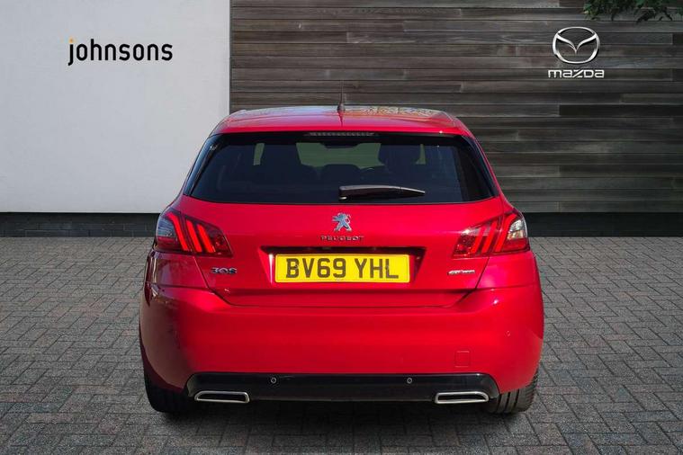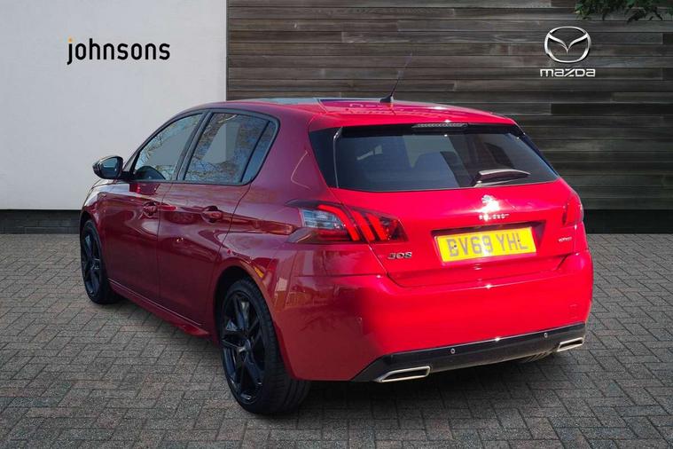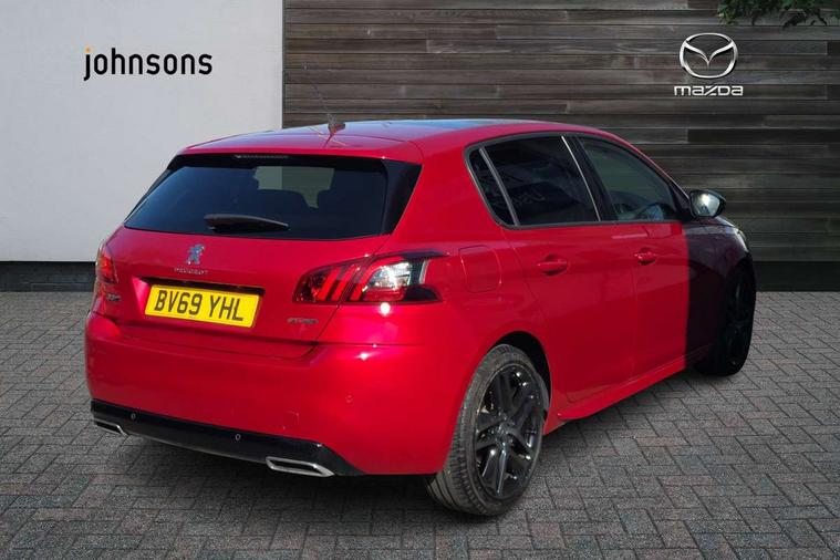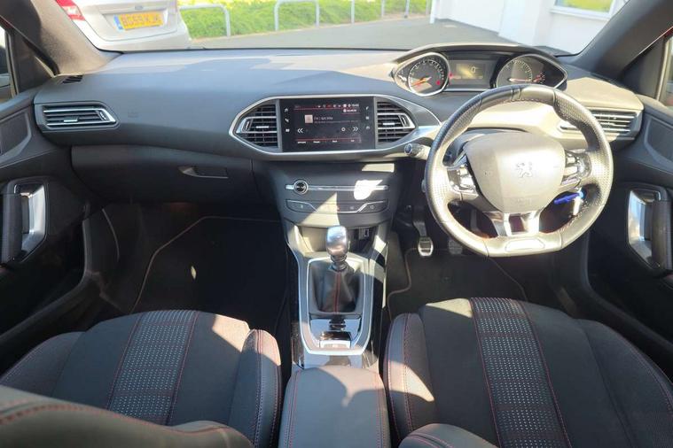 3D connected navigation, 9.7" capacitive touchscreen in centre console, Bluetooth telephone facility, Exterior temperature indicator with ice warning, Front and rear parking sensors, Mirror screen with mirror link, apple carplay and android auto, Multi function trip computer, Peugeot i-Cockpit with 10" head-up digital instrument panel, Peugeot i-cockpit with compact multi-function steering wheel, PEUGEOT SOS and assistance, Service interval indicator, Visio Park 1 with 180 degree Colour reversing camera, 6 speakers radio with mp3 compatible, DAB Digital radio, Steering column mounted multifunction controls, USB socket, Voice recognition for radio, navigation and telephony features, 2 X Rear number plate lights, Aluminium door sill finishers, Automatic hazard light activation upon heavy brake application, Automatic triggered rear windscreen wiper in reverse gear, Body colour door handles, Body coloured bumpers, Dark tinted rear side and tailgate windows, Electric front/rear windows with one touch/auto up/down, Electric operated/heated door mirrors, Front windscreen wiper with multi speed setting, Full LED headlights with LED fog lights, sequential LED indicators, sports front bumper and Self-levelling headlights, GT Line emblems in front wings and tailgate, Headlights left on audible warning, Heated rear windscreen, LED daytime running lights built into the headlamp unit, Nera black door mirrors, Panoramic fixed cielo glass roof with electric interior blind, Power folding door mirrors with courtesy approach lighting, Rear LED Peugeot signature 'Claw Effect' lights, Roof mounted antenna, Side skirts in sport design, Twin exhaust tailpipe, 1/3 to 2/3 split folding rear seats, 12V socket, 2x Rear coat hooks, 4 Grab handles retractable and damped, Aluminium style pedals and door sills, Central front armrest with height and longitudinal adjustment, Cupholders - 2 in rear centre armrest, Door armrests and facia panels trimmed in mistral leather effect trim with red stitch, Driver and front passenger seat height adjustment, Driver and front passenger seat manual adjustment in longitudinal and back rest angle, Dual zone automatic climate control, Fixing rings 4 in load compartment, Front armrest and gear lever gaiter with red contrast stitching, Front centre console cup holders, Front interior light with 2 reading spotlights and rear interior light with timer, Front seat back map pockets, Gear shift indicator, Illuminated vanity mirrors, Mistral floor mats with red contrast stitching, Mistral full grain leather steering wheel with red stitch, Roof lining - Tramontane black, Satin chrome gear lever, Satin chrome interior door handles, Seatbelt not fastened audible and visual alert for front seats, Seatbelt unfastened on the move audible and visual alert for front and rear seats, Seatbelt unfastened warning display, Visibility pack - 308, 2x Isofix child seat fitting on outer rear seats, 3x Rear three-point retractable seatbelts with force limiters in the outer rear seats, ABS + EBD + EBA, Adaptive driver and front passenger airbags with passenger airbag deactivation function, Child locks on rear doors, Driver/front passenger side airbags, Electronic parking brake + Hill assist, ESP, Front and rear curtain airbags, Front optimised safety headrests and 3 x rear retractable headrests with height adjustable, Front three point retractable seatbelts with force limiters, Front/rear disc brakes, Tyre pressure sensor, Automatic door locking, Deadlocking system, Electronic code immobiliser, Locking wheel bolts, Remote control central locking with two plip keys, Thatcham cat 1 ultrasonic alarm, Satin chrome dash trim,