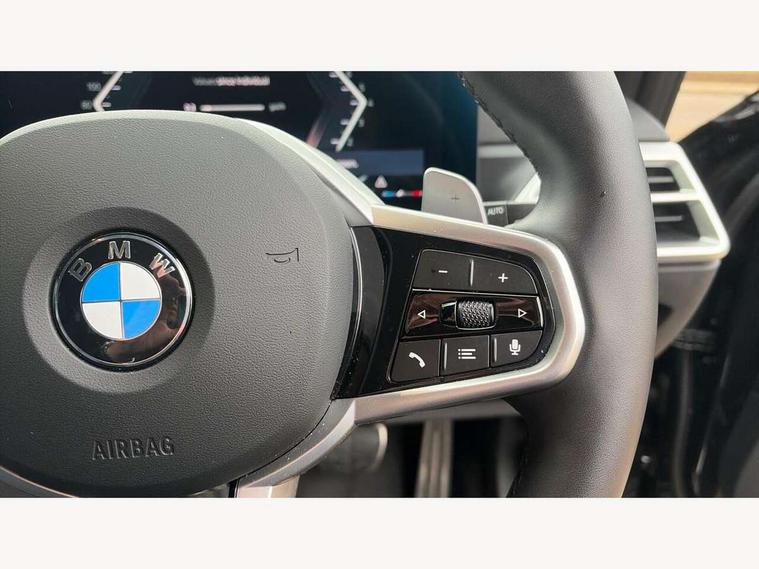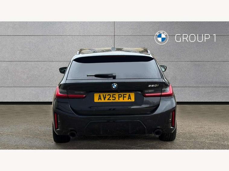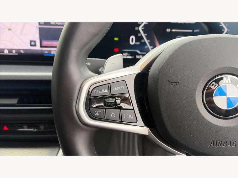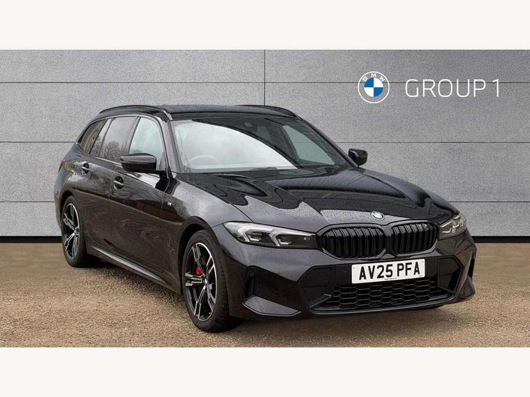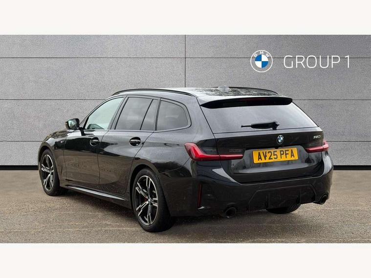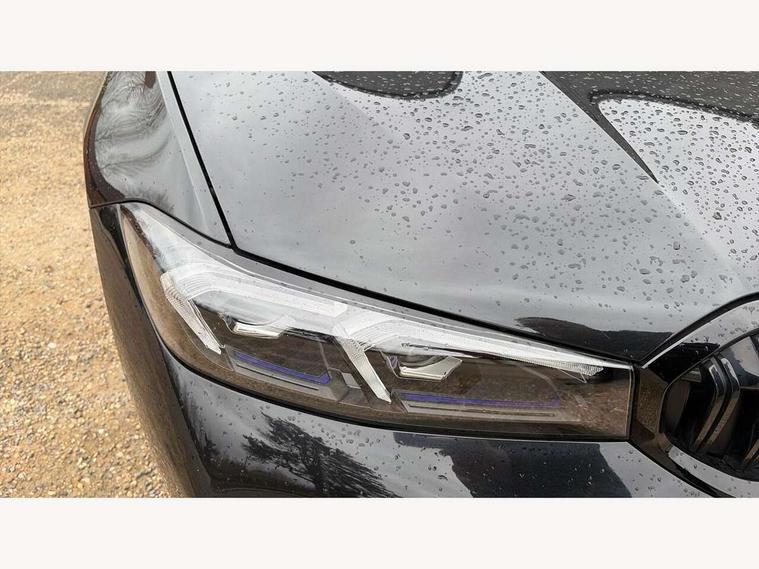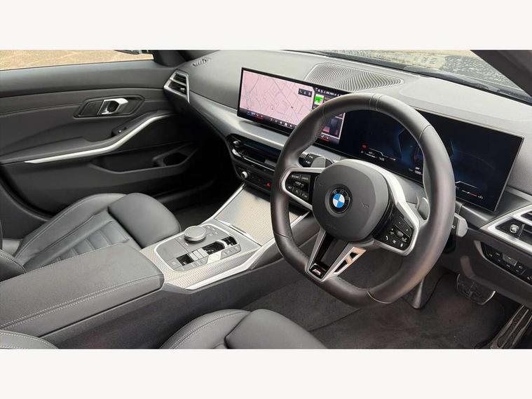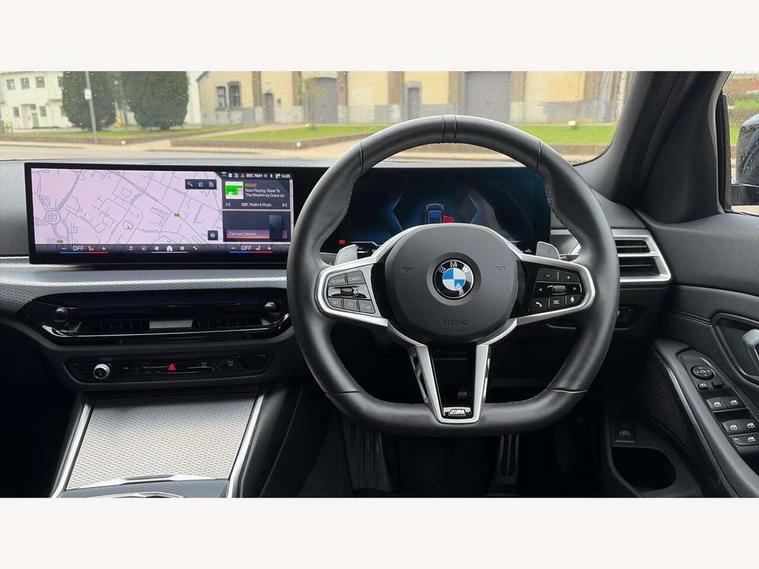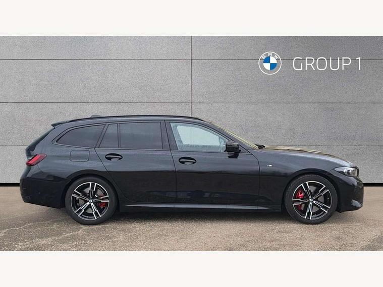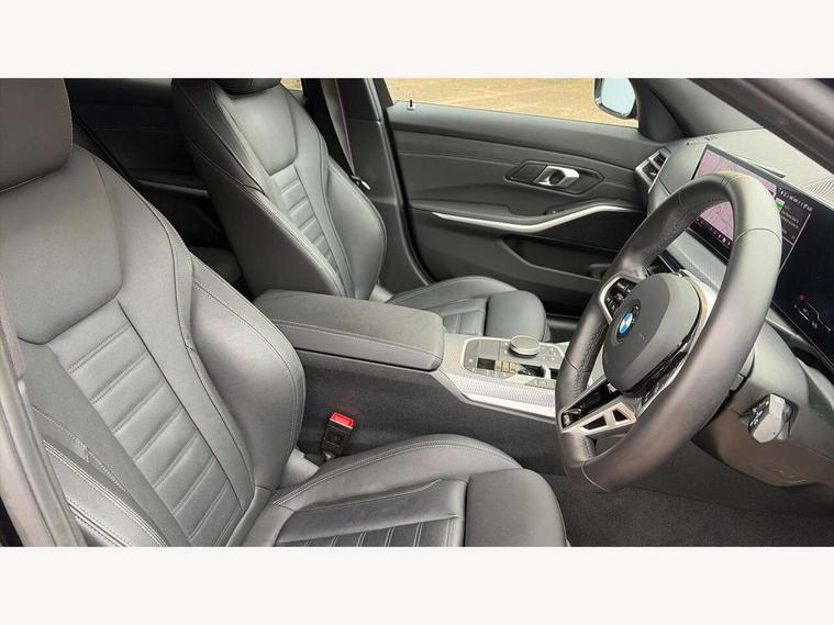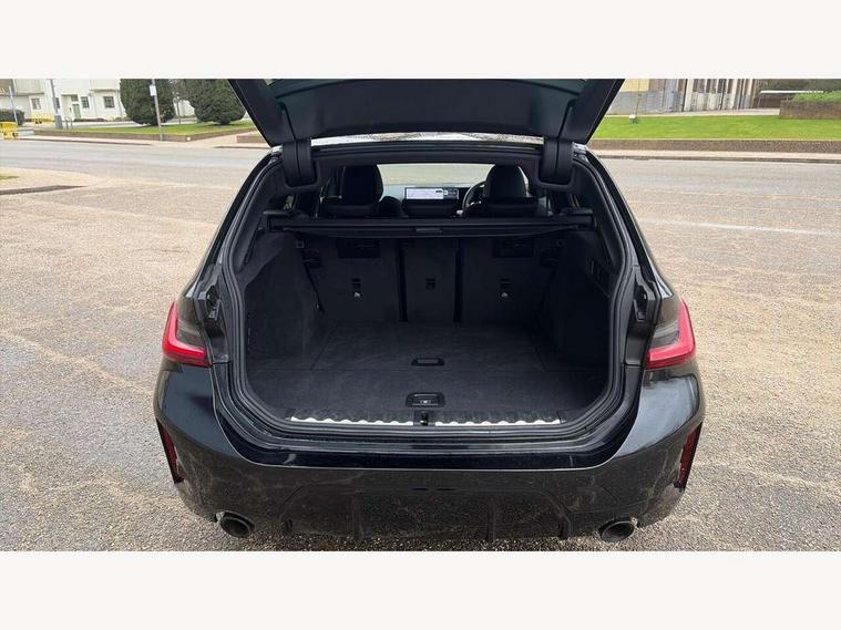 Active guard plus, Attentiveness assist, Automatic Start/stop button, Bluetooth Wi-Fi interface, BMW iDrive, BMW Teleservices, ConnectedDrive Services - last state call, Electric bootlid, Live cockpit plus with Navigation + 12.3" instrument display + 14.9" display, Intelligent voice assist, 2 USB, 4G LTE connect, Oil sensor for level and grade, Personal e-SIM, Shifting point display, Variable sport steering, Double joint spring strut front axle, Electronic differential lock control (EDLC), Fuel tank breather system, Steptronic Sport automatic transmission with steering wheel mounted gearshift paddles launch control and xtreme drive lever control, DAB tuner, 3rd brake light, Auto dimming rear view mirror, Automatic headlight beam throw control with load dependent regulating reaction, dynamic compensation of braking dive and acceleration squat, Bi-LED Low and high beam headlights, BMW emblem, engine compartment lid and tailgate, Body colour roof fin, Door sill strips, Electric windows - front and rear, with open/close fingertip control, anti-trap facility and comfort closing, Fading support, Follow me home headlight function, Front and rear bumper system with replaceable deformation elements, Front apron plastic in body colour, Fuel filler flap - right rear in body colour, Heat protection glazing on front windows and windscreen, Heated washer jets, High gloss chrome kidney frame with high gloss black kidney struts, High gloss shadow line roof rails, LED daytime running lights, LED rear lights, LED turn indicator, Licence plate panel integrated into front bumper and tailgate, M high gloss shadow line exterior trim, Matt black B-pillar finsher, Matt black window recess cover, One piece front bumper cover including towing eye cover in body colour, Rain sensor with automatic headlight activation, Rear side wing doors, Rear wiper, Reversing lights, Side frame decorative moulding black matt, Trailer stabilisation logic, Visible exhaust tailpipe finisher, Welcome lights in interior and door handle area, 12V power socket in front storage compartment, 2 front cupholder in centre console with clamping elements and matt black inlay, 3 seat bench in 2nd row, 3 spoke M Sport multifunction flat bottom leather steering wheel, 3 zone automatic air conditioning, 40:20:40 split folding rear seat with loading system, Anthracite headlining, Armrest integrated in front and rear door trim + front centre console armrest, BMW ID, Cruise control operation in steering wheel, Driving experience mode switch, Folding rear centre armrest with 2 cupholders, Front and rear headrests, Front and rear velour floor mats, Front reading light, Heated front seats, Height adjustable mechanically and infinitely variable steering column, Illuminated armrest storage compartment, Illuminated glove compartment, Illuminated luggage compartment, Lashing eyelets in luggage compartment, Single front passenger seat, Sunvisors with illuminated vanity mirrors and ticket pocket, Toolkit located in luggage compartment, Connected pack professional - 3 Series Saloon/Touring, Interior and exterior mirror pack - 3 Series Touring/Saloon, M sport exterior styling pack - 3 Series Saloon/Touring, Parking assistant pack - 3 Series, 3x3 point rear seatbelts, BMW emergency call, Child locks on rear doors, Crash sensor activating of airbags, Unlocking doors, hazard warning lights, interior light, safety battery terminal, Drive-off assistant, Driver and front passenger with seat occupancy detection for driver's and passenger side, Driver and passenger side airbags, body protection at side and airbags deploy from seat backrests, Dry braking, Dynamic brake control, Dynamic stability control + (DSC+) - Anti-lock Braking System (ABS) with brake assist and cornering brake control + Automatic Stability Control (ASC), Dynamic Traction Control - DTC, Electric parking brake including automatic hold function and automatic release of the parking brake when driving off, Front airbag deactivation, Front airbags for driver and front passenger, Head airbags in 1st and 2nd row, head protection at side, curtain airbags open from headliner above 1st and 2nd row, Plastic fuel tank, Side impact protection, Tyre pressure sensors, Ventilated front and rear disc brakes, Warning triangle and first aid kit, Alarm system, Centre lock switch, Closing system with central locking, Electronic vehicle immobiliser, Locking wheel bolts,