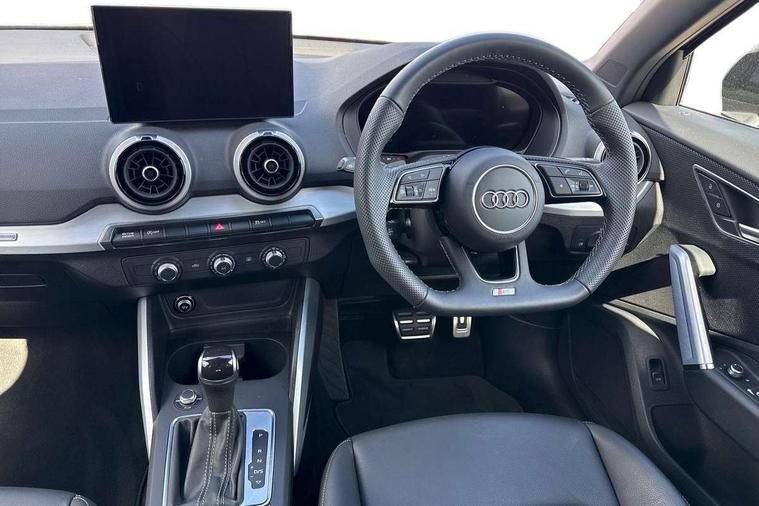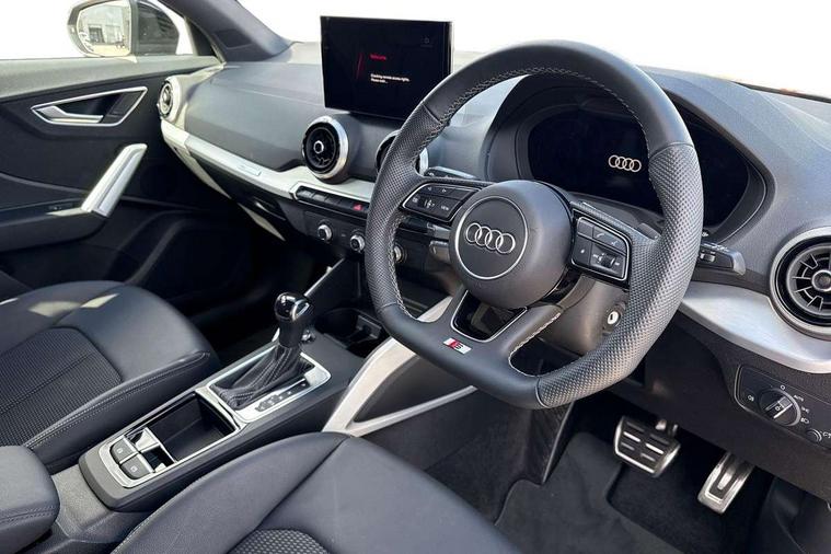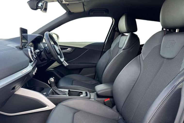 3D map display, Audi connect navigation and infotainment includes innovative services, Audi connect remote and control connects your vehicle to your smartphone, Audi drive select: S tronic - power steering assistance + engine + gearshift (modes: comfort, auto, dynamic, efficiency, individual), Audi smartphone interface - Apple carplay/Android Auto, USB connect, 2xSDXC card readers, voice control for navi, telephone, music and 3rd party apps, Audi virtual cockpit, Automatic start/stop system with recuperation, Bluetooth interface includes bluetooth audio streaming, Camera based traffic sign recognition, Cruise control, Distraction and Fatigue warning, E-call, Jukebox hard drive memory for music (10GB), Lane departure warning, MMI navigation plus with 8.8" touchscreen, Natural voice recognition, Power operated tailgate, Progressive steering, Rear parking sensors, Sport suspension, 6 passive loudspeakers, DAB Digital radio, USB type C port, Audi beam, Auto dimming rear view mirror, Black window trims, Bumper in full body colour paint finish, Electrically adjustable, folding, auto dimming and heated door mirrors with integrated LED side indicators, Front windscreen with grey tinted sunband, LED daytime running lights, LED headlights with dipped beam, high beam, position lights, indicators, LED rear lights, LED third brake light, Privacy glass - dark tinted rear and rear side windows from B-pillar backwards, Rear side wing doors, Rear wiper, Variable front intermittent wipers, Wheel arch trims in manhattan grey, 12V socket in front, 3 seat bench in 2nd row, 3 spoke flat bottomed multi-function leather sport steering wheel with gear shift paddles, 4-way electric lumbar support for front seats including manual seat height adjustment for both front seats, 60/40 split folding rear seat bench, Black carpets, Black cloth headlining, Front and rear head restraints, Front centre armrest, Front sport seats, Front/rear floor mats, Height/reach adjust steering wheel, Illuminated door sill trims with S logo, ISOFIX child seat mounting in front passenger and rear outer seats, Manual air conditioning, Single front passenger seat, Stainless steel pedals, Black styling pack - Q2, 3x3 point rear seatbelts, 6 airbags - Front, curtain and front side airbags, Electromechanical parking brake, Electronic stabilisation control including ABS, ASR and EDL, Front passenger airbag deactivation, Hill hold assist, Pre-sense front with pedestrian recognition, Seatbelt monitoring, Tyre pressure warning light with visual and acoustic warning, Warning triangle and first aid kit, Anti theft wheel bolts, Electronically operated child locks, Remote central door locking, Thatcham category 1 alarm, Aluminium interior element, Black dashboard, Gloss black centre console, Matt brushed aluminium trim inlays, Tool kit,
