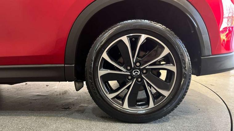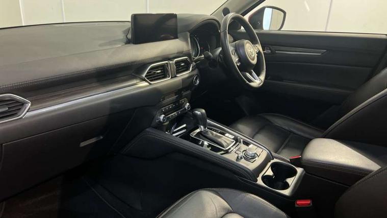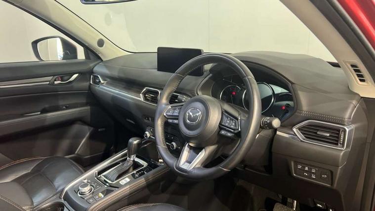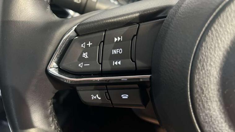 10.25" display with Mazda Connect infotainment, 7" colour TFT display, Advanced blind spot monitoring, Bluetooth connectivity with voice control, Collision prevention assist, Connected services, Cruising Traffic Support, Drive mode selector, Electric power steering, Emergency stop signalling system, Engine start/stop button, Forward collision warning, Front and rear parking sensors, Integrated navigation system, Intelligent speed assist, Lane departure warning system, Lane keep assist, Power liftgate, Qi wireless phone charging, Radar cruise control with Stop and Go, Rear cross traffic alert, Reversing camera, Service indicator, Traffic sign recognition (TSR), Trip computer, Windscreen projected colour active driving display (HUD) with memory, Wireless apple car play/android Auto, Cylinder Deactivation, i-stop, AM/FM radio, Bluetooth audio streaming, Bose premium sound system with 10 speakers, DAB Digital radio, Multimedia Commander including separate volume dial, Steering wheel mounted audio controls, Adaptive front lighting system, Auto dimming rear view mirror, Automatic headlights, Black inlay dashboard panel, Body colour door mirrors, Body colour roof spoiler, Body coloured front and rear black lower bumper mouldings, Coming/leaving home lighting function, Door mirror integrated indicators, Dual chrome tailpipes, Dusk sensitive headlamps, Electric front/rear windows with one touch auto up/down, Front grille in gloss black finish, Front grille in gloss black finish with chrome signature wing, Gloss black B and C pillars garnish, High beam assist, Intermittent rear wash/wipe, LED auto levelling, LED daytime running lights, LED front fog lights, LED Headlights, LED third brake light, Power folding and heated door mirrors, Power tilt/slide sunroof, Privacy glass (rear side windows only), Rain sensing front wipers, Rear side wing doors, Satin black side mouldings, Scuff plates, Shark fin antenna, Signature LED rear combination lights, Variable intermittent front wash/wipe, Vinyl with wood grain metal inlay door trim panel, Windscreen wiper de-icer, 12v electrical power outlet, 3 seat bench in 2nd row, 3 stage heated front seats, 40:20:40 Karakuri fold-flat seat system, 6 way electric adjustable passenger seat, 8 way electric driver seat with lumbar support + memory, Cargo room flat floor board with waterproof undertray, Driver seat power slide, recline and height adjustment, Driver, Front passenger and two rear grab handles with coat hooks, Driver/passenger front seatback pockets, Driver/passenger sunvisors + illuminated vanity mirrors (drivers with ticket holder), Dual zone climate control, Folding centre armrest with 2 cup holders, Front and rear door pockets, Front centre storage with two cupholders, Front passenger seat power slide, recline and height adjustment, Heated steering wheel, Humidity sensor, Illuminated glovebox, Interior dome light with integral spotlight, ISOFIX child seat anchorage points attached on outer rear seats, Karakuri tonneau cover, Leather upholstery, Leather wrapped steering wheel and gear knob, Light roof lining, Luggage compartment LED lighting, Luggage compartment power outlet, Paddle shifts, Rear air vents, Rear headrests, Rear seat recline, Roof mounted sunglasses holder, Single front passenger seat, Three height adjustable head restraints, Tilt/height adjustable steering wheel, USB Connectivity (2x front Type-C, 2x rear Type-B), White interior LED illumination lighting, 3 point front seatbelts with pre-tensioners, 3 rear 3 point seatbelts, ABS, Advanced Smart City Brake Support - SCBS, Child locks on rear doors, Driver and front passenger side airbags, DSTC-Dynamic Stability and Traction Control, Dual front airbags, Electronic brake force distribution, Electronic parking brake with auto hold, ESP, Front and rear curtain airbags, Front passenger airbag deactivation, G-Vectoring control, Hill hold assist, Seatbelt reminder front and rear, Single stage passenger airbags, Smart brake support with forward obstruction warning, Tyre pressure monitoring system, Automatic door locking when moving off, Deadlock, Immobiliser, Power door locks, Remote central locking, Smart keyless entry, Thatcham Cat.1 alarm, 19" diamond cut black alloy wheels, Tyre repair kit,